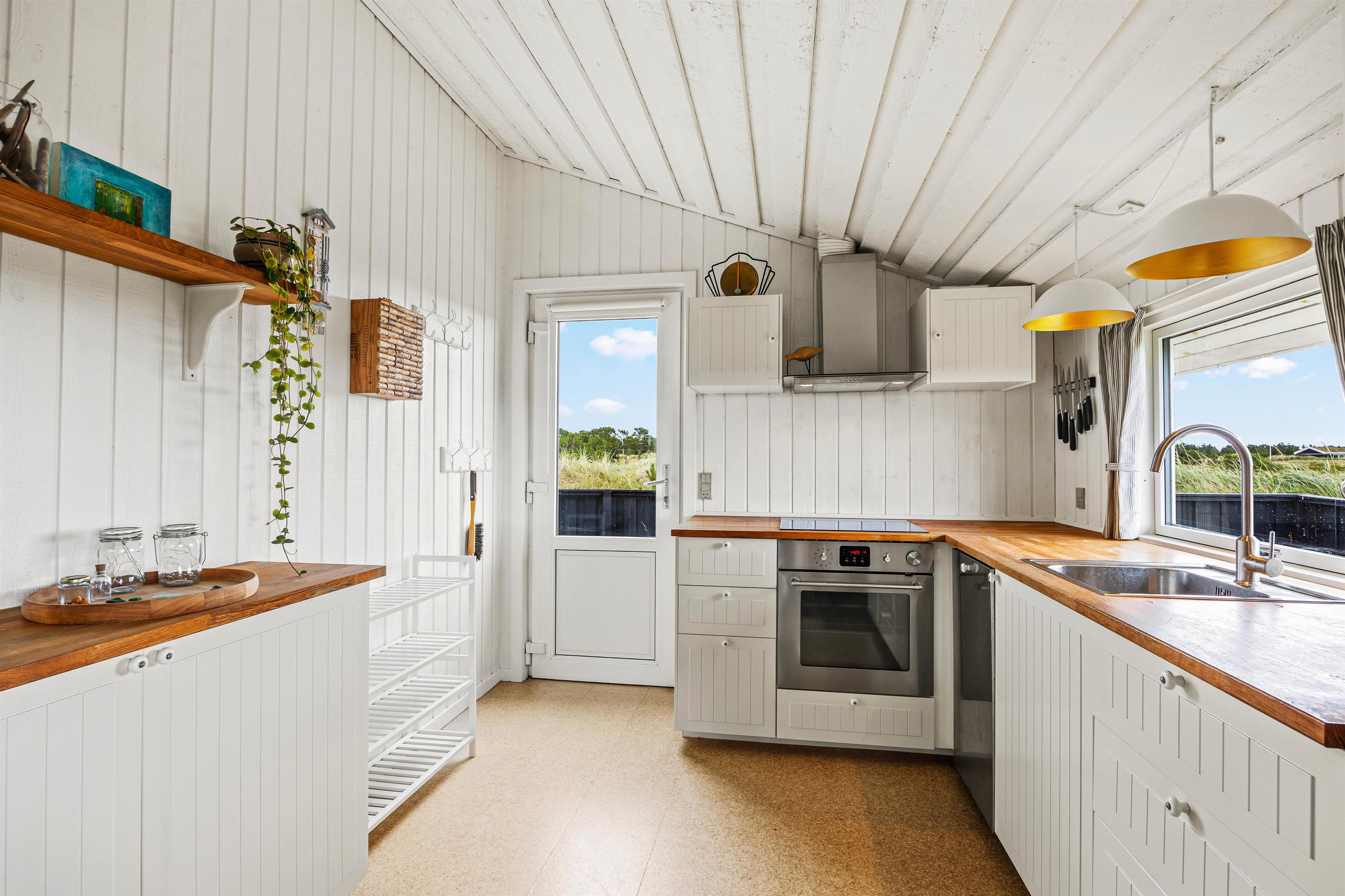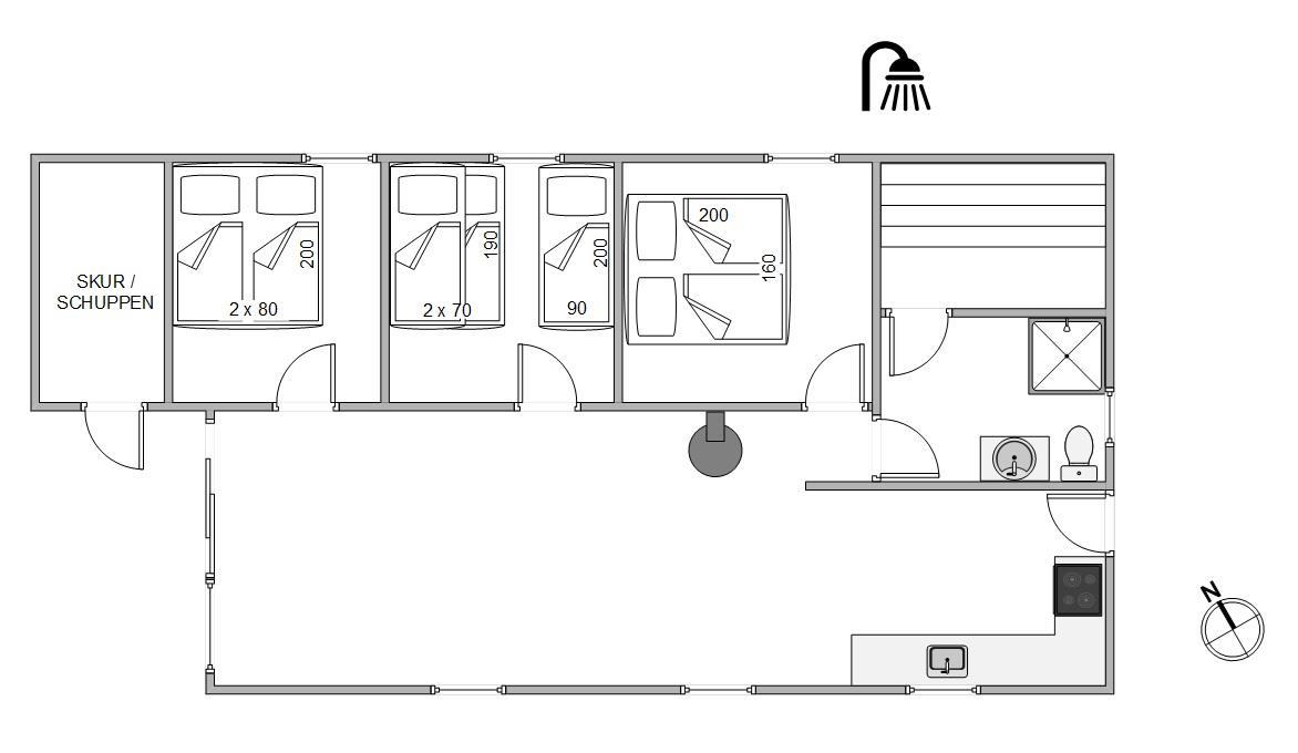 In der offenen Küche könnt ihr euch gegenseitig leckere Mahlzeiten zubereiten und trotzdem den Aktivitäten am langen Tisch und im Wohnzimmer folgen. Die Induktionskochfelder auf dem Herd ermöglichen ein schnelles Kochen, und der Kühlschrank ist mit einem kleinen integrierten Gefrierfach ausgestattet, um zusätzliche, kleinere Vorräte zu lagern. Wenn ihr weitere Vorräte benötigt, sind die Geschäfte in Blåvand nur etwa 2,5 Kilometer entfernt.