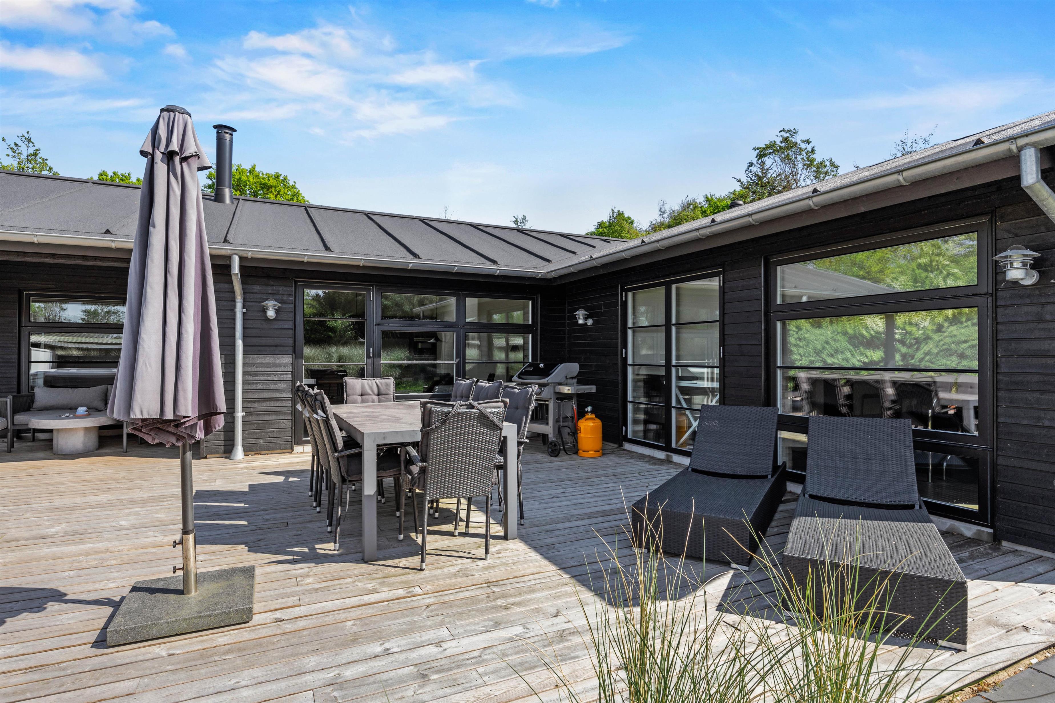 Step directly from the living and wellness areas onto your holiday home's magnificent wooden terrace. Make the most of sunny hours here, surrounded by beautiful nature. Stretch out on comfortable loungers or settle into the premium outdoor furniture to enjoy the fresh North Sea air. Round off your day by firing up the gas barbecue - what could be better than ending your holiday evening with a delicious steak and glass of wine?
