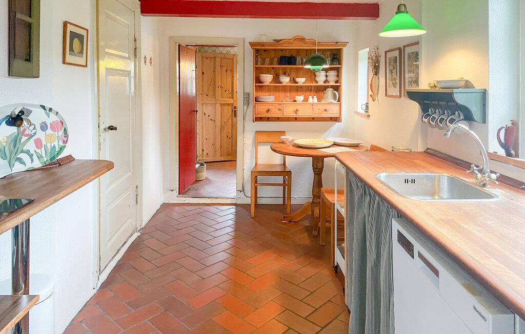 Huset er enkelt og funksjonelt innredet med lyse vegger, tregulv og funksjonelle møbler. Sett deg godt til rette i sofaen, og bruk stuen til felles spillkvelder eller rolige leseøkter. Åpne vinduene og slipp den friske luften inn mens du tilbereder måltidene eller planlegger dagen.