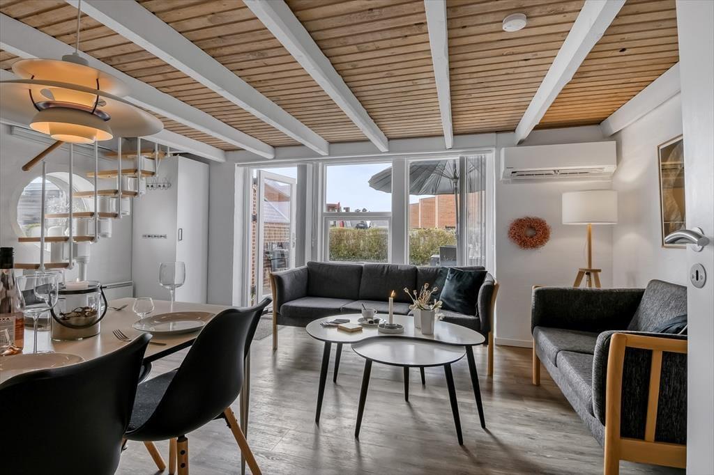 Nicht nur im Inneren weiß die Wohnung zu überzeugen – auch draußen warten herrliche Erlebnisse auf dich. Auf der Terrasse kannst du es dir mit einem Buch und einem kühlen Getränk bequem machen, während du die Möwen vom Hafen her rufen hörst und die leichte Brise aus Westen spürst, die dich daran erinnert, wie nah du sowohl dem Fjord als auch der Nordsee bist. Die Lage in der Kirkehøjvej ist ideal, wenn du zu Fuß einkaufen, ein Eis am Hafen genießen oder abends essen gehen möchtest – ganz ohne das Auto zu bewegen. Und wenn du die Ruhe und Entspannung unter freiem Himmel liebst, findest du sicher eine Bank am Fjord oder legst dich mit einer Decke ins Gras, um die Aussicht in aller Stille zu genießen. Wenn Sie ein Elektroauto haben, gibt es eine öffentliche Ladestation nur 75 Meter vom Haus entfernt.