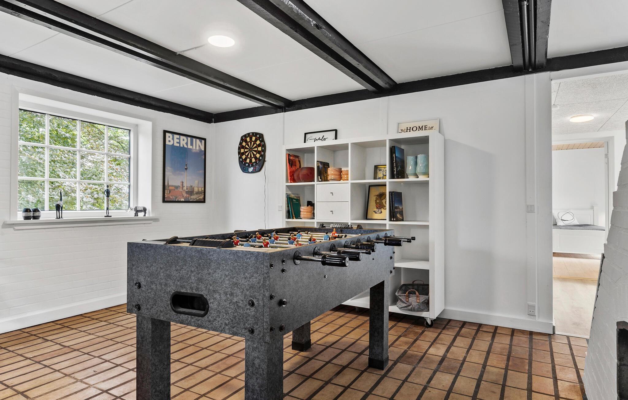 Gled deg til ferien med storfamilien eller venner i dette komfortable og store feriehuset, som ønsker deg velkommen med sin lyse atmosfære, sjarmerende takbjelker og attraktive møbler. Her er det noe for enhver smak, for eksempel kan du slå deg ned på solstolene i stuen og varme deg ved vedovnen. Du kan også spille bordfotball eller nyte utsikten over hagen fra 1. etasje.