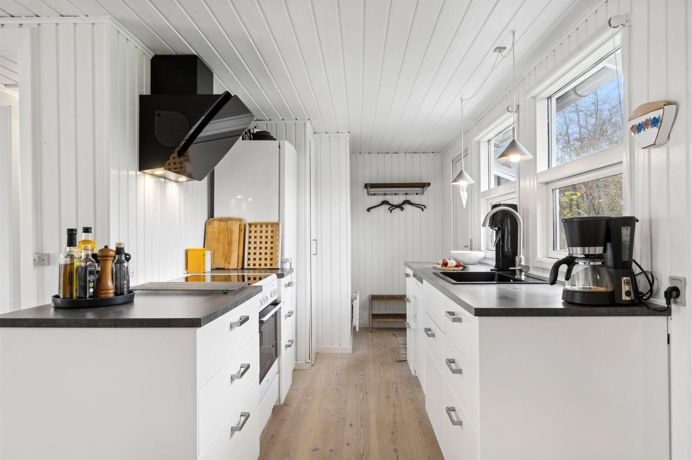 Kjøkkenet er utstyrt med 1 kjøleskap. Det er 4 keramiske kokeplater, varmluftsovn og oppvaskmaskin.