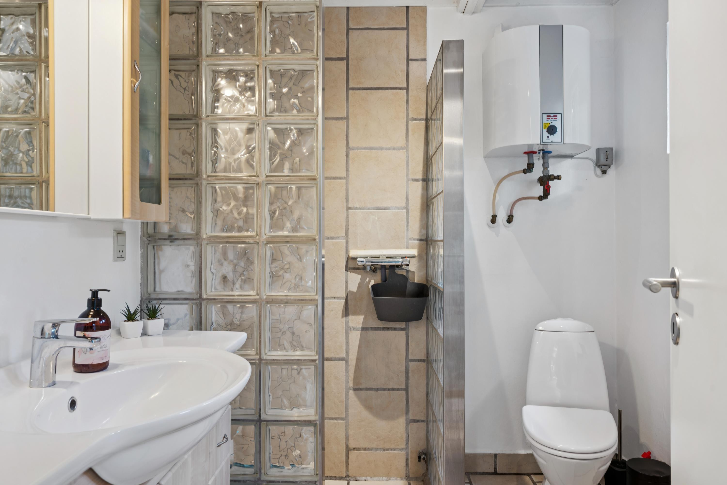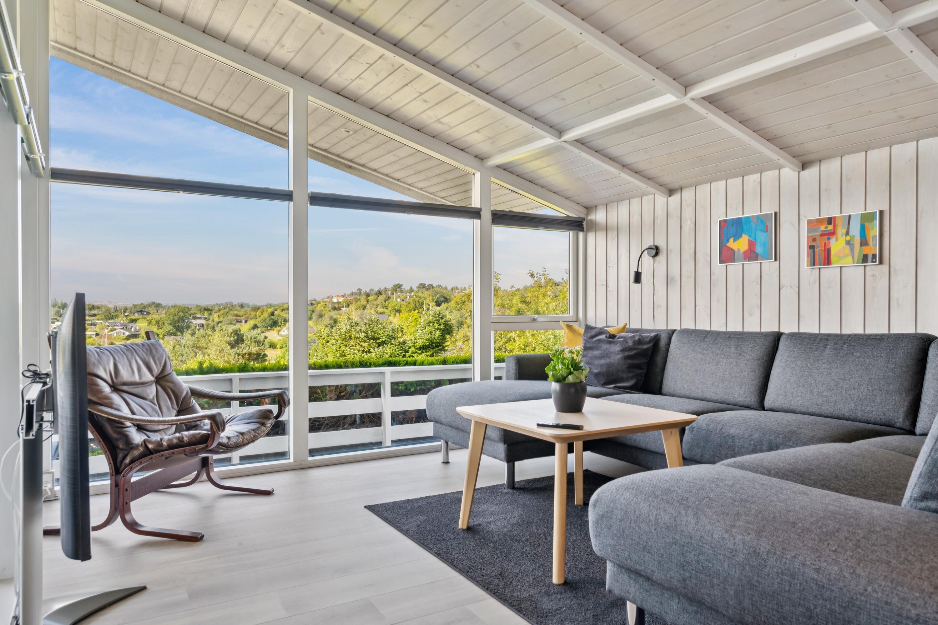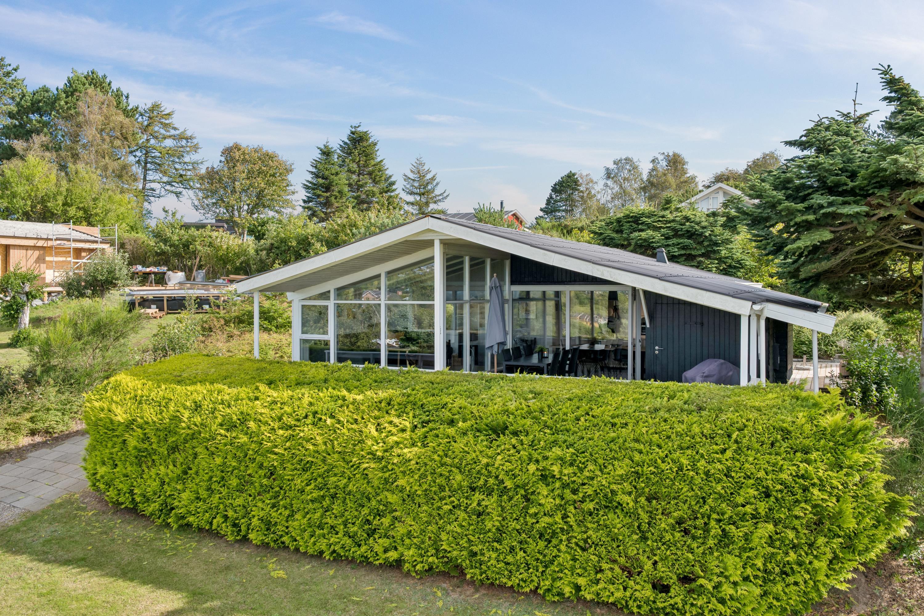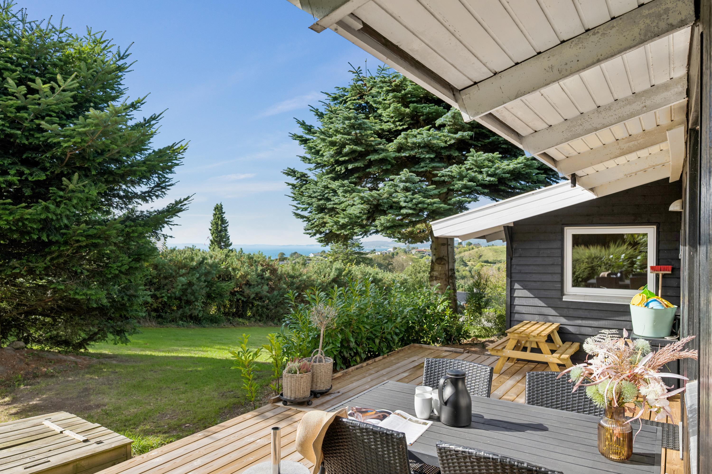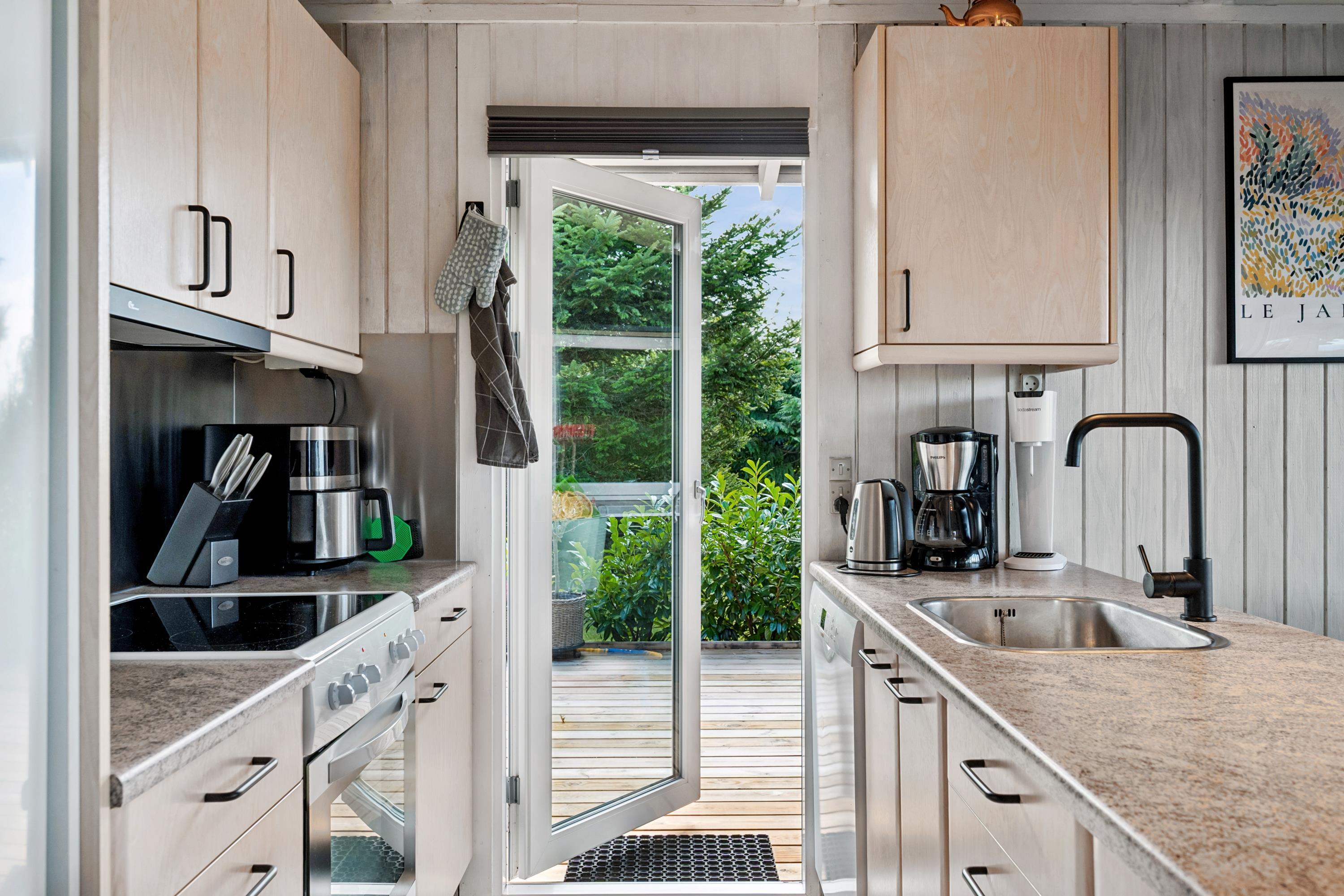 Welcome to this cozy and well-maintained holiday home. The tastefully furnished living room offers a stunning view of the water. The well-equipped kitchen includes a dishwasher and has direct access to a lovely terrace with garden furniture. Next to the kitchen, you will find a charming dining room with a wood-burning stove and a heat pump – from here, there is also access to a covered terrace with garden furniture. The bathroom is neat and modern with a shower and a washing machine.