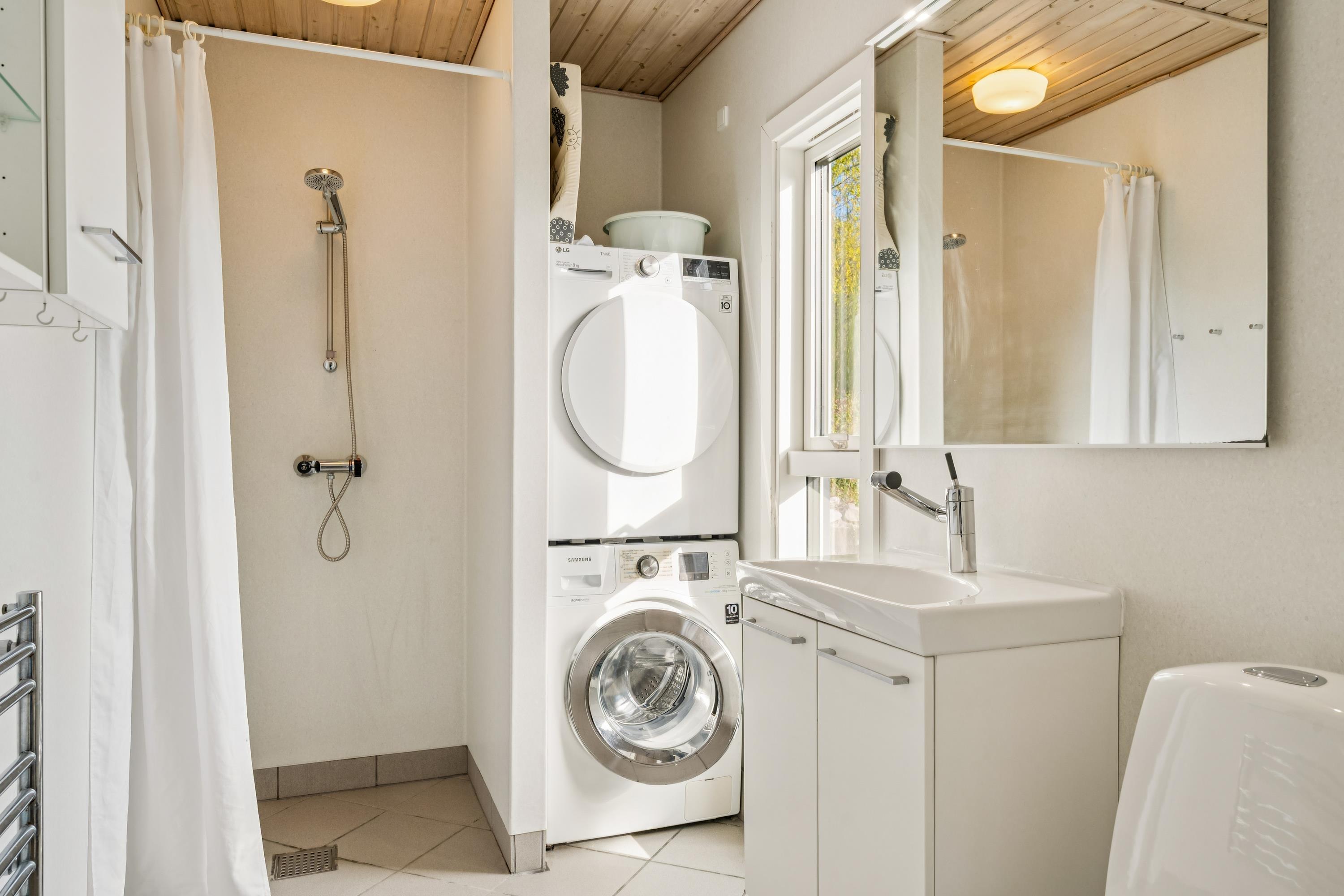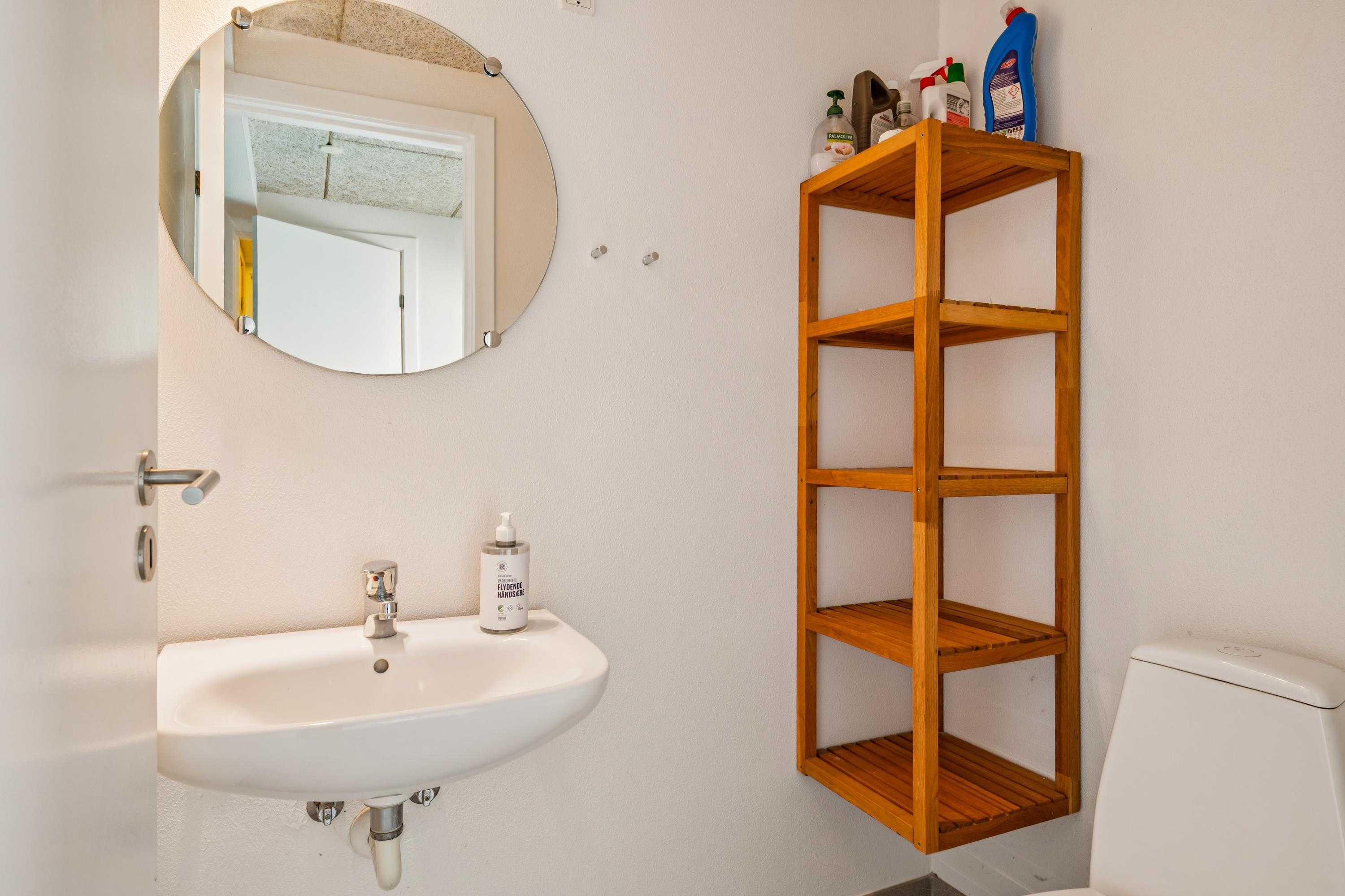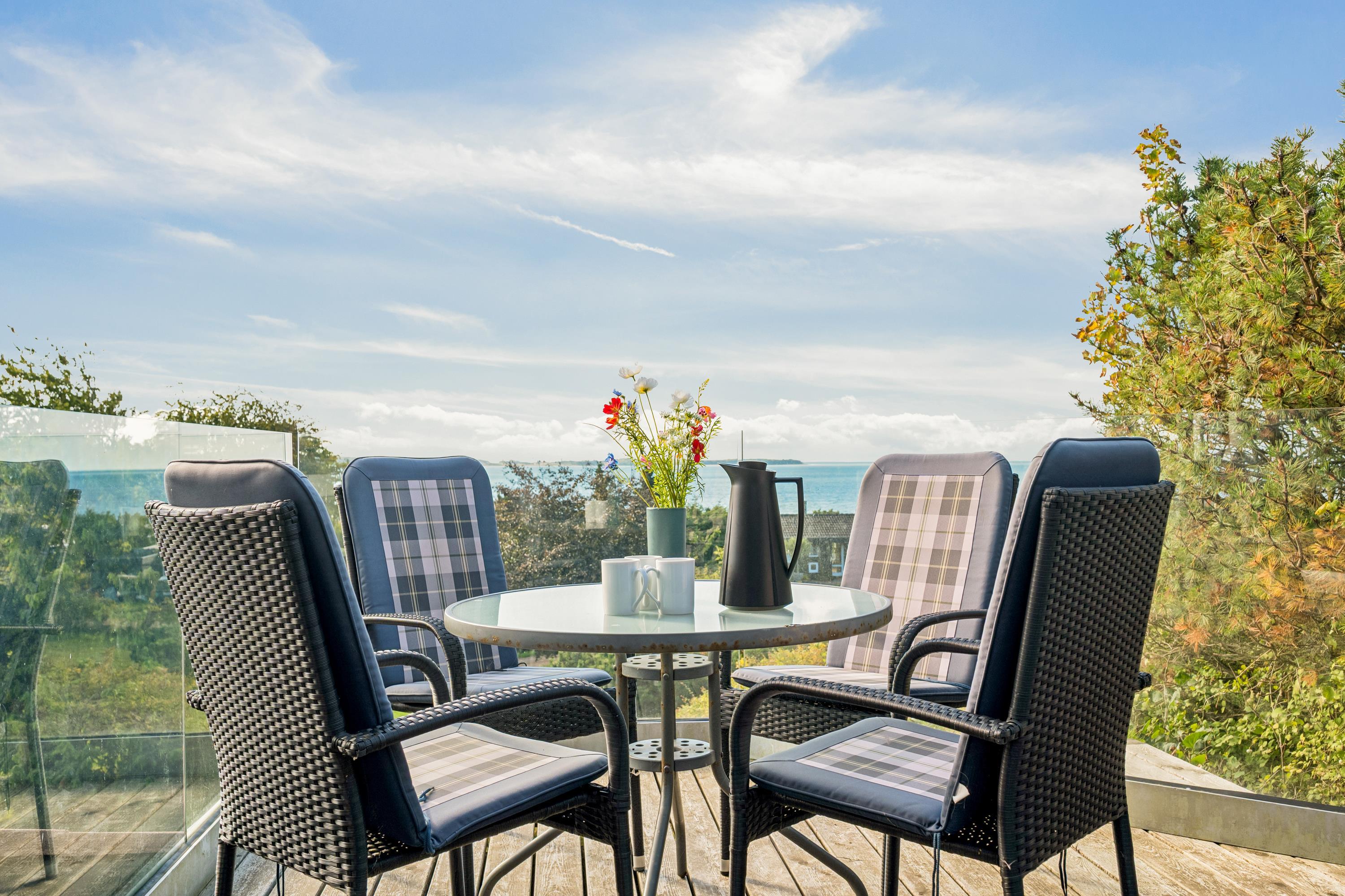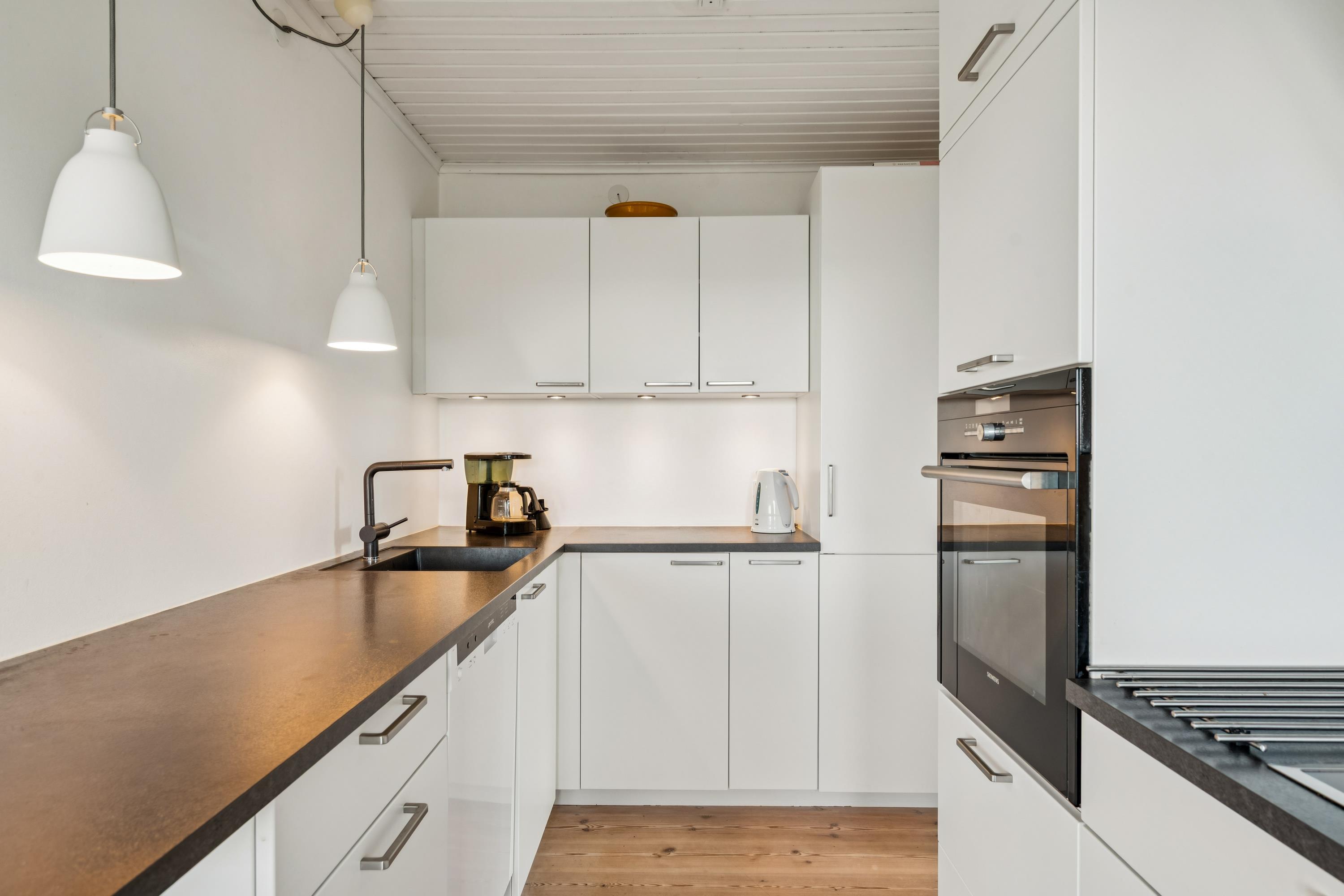 Situated in an elevated position with a stunning view over Ebeltoft Bay, this older yet charming holiday home with a swimming pool offers everything for a relaxing stay. The house is spread over two floors. On the upper floor, you’ll find a spacious living room with a wood-burning stove and heat pump. From the living room, there is access to a balcony leading out to a lovely terrace with garden furniture. Adjacent to the living room is a well-equipped kitchen, including a dishwasher. There are three bedrooms – two with single beds and one with a double bed. Nice bathroom with shower, underfloor heating, washing machine, and tumble dryer.