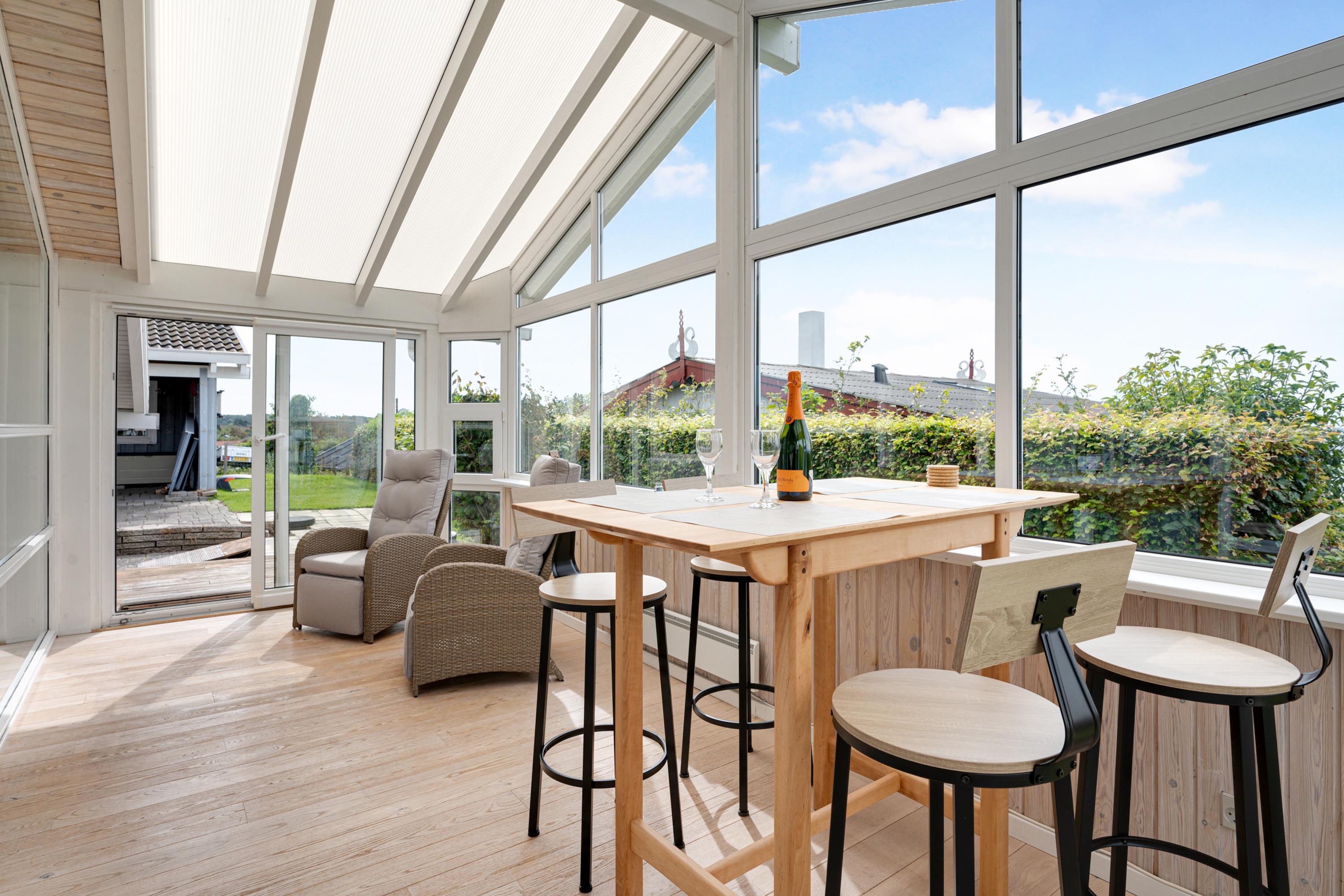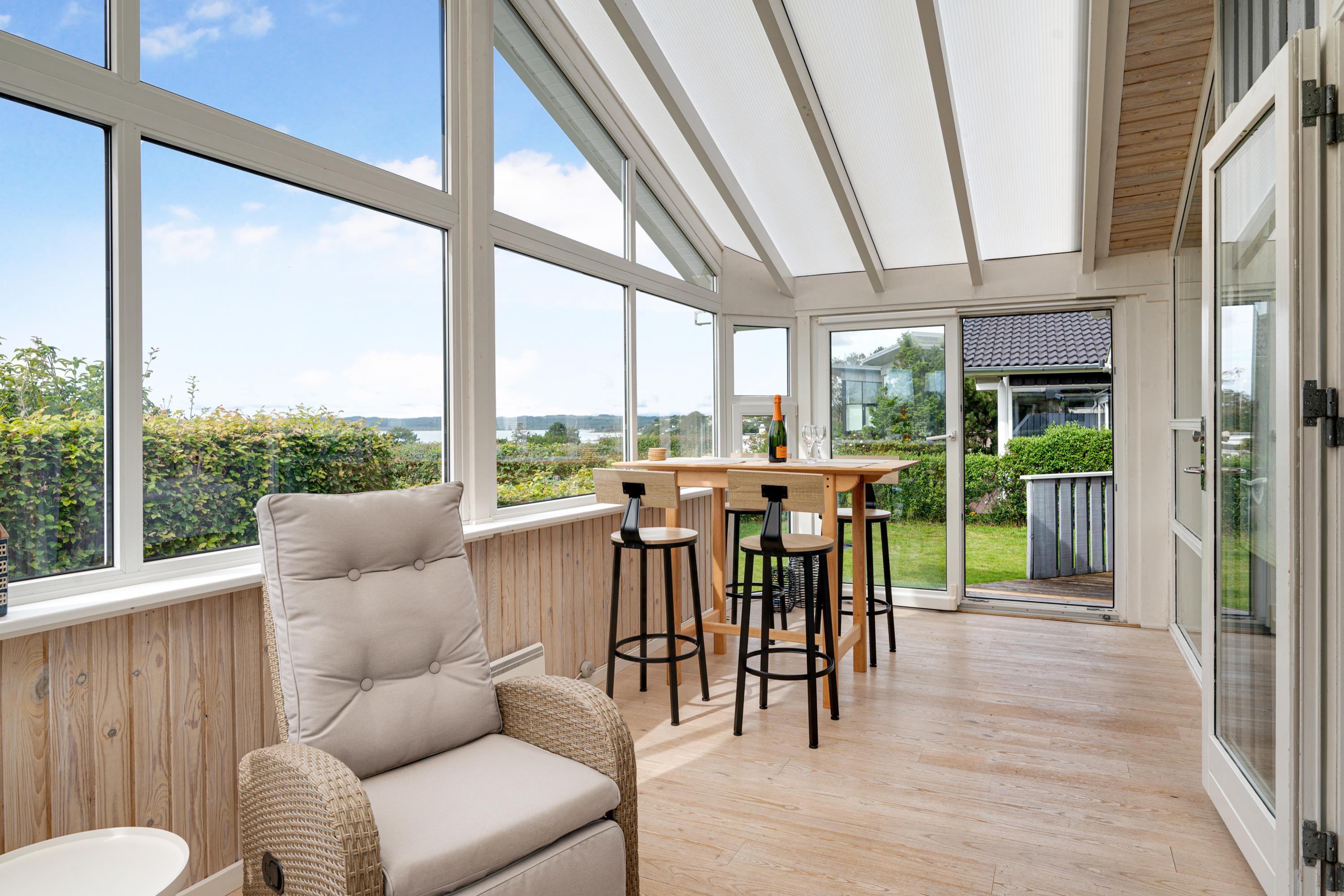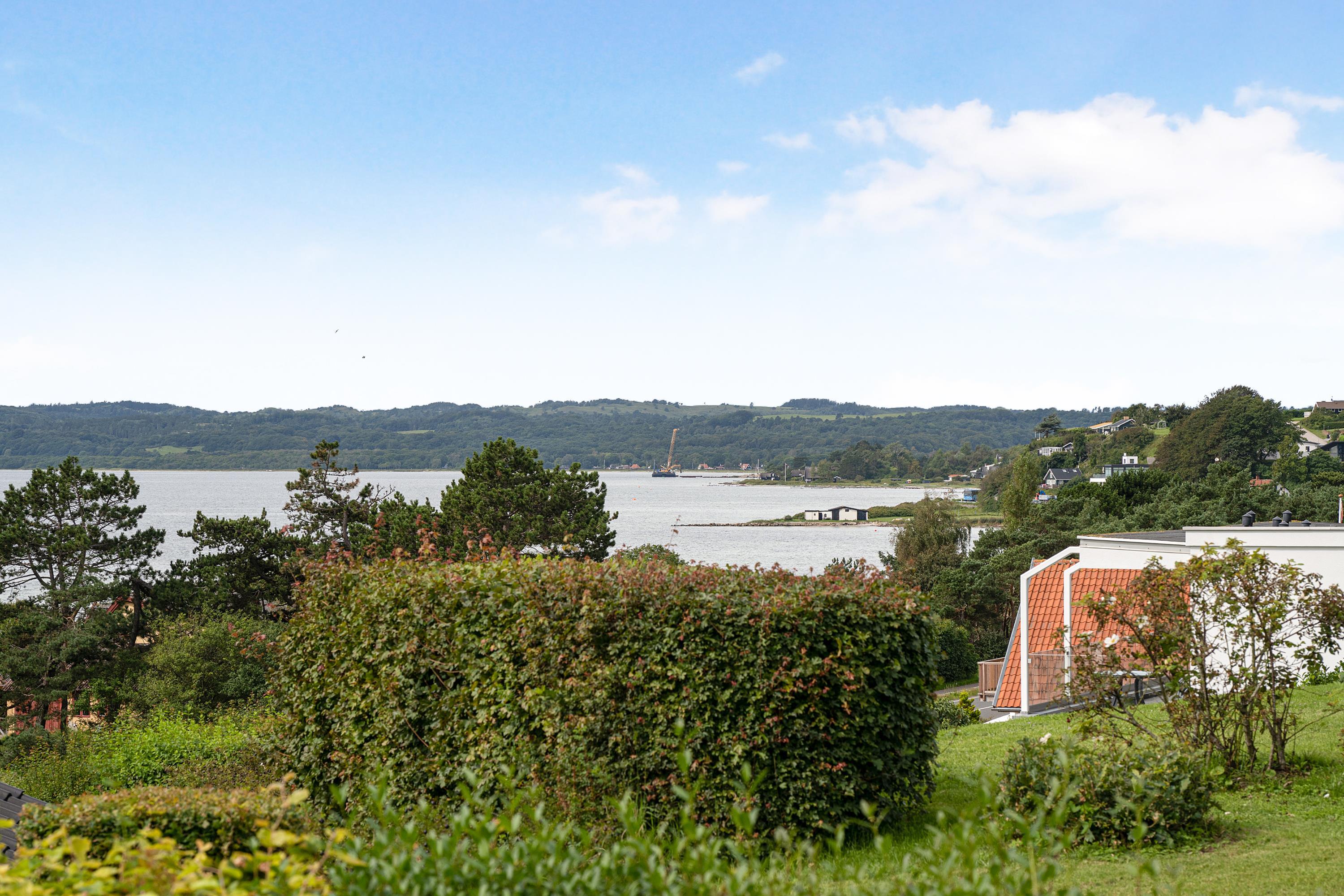 From the living room, you can step out into an integrated conservatory, offering the most beautiful view over Ebeltoft Bay and Mols Bjerge. There's also a covered terrace with outdoor furniture, where you can sit on a warm summer evening and enjoy the sunset over Mols Bjerge. The house is situated on a lovely plot with a lawn and plenty of space for parking.