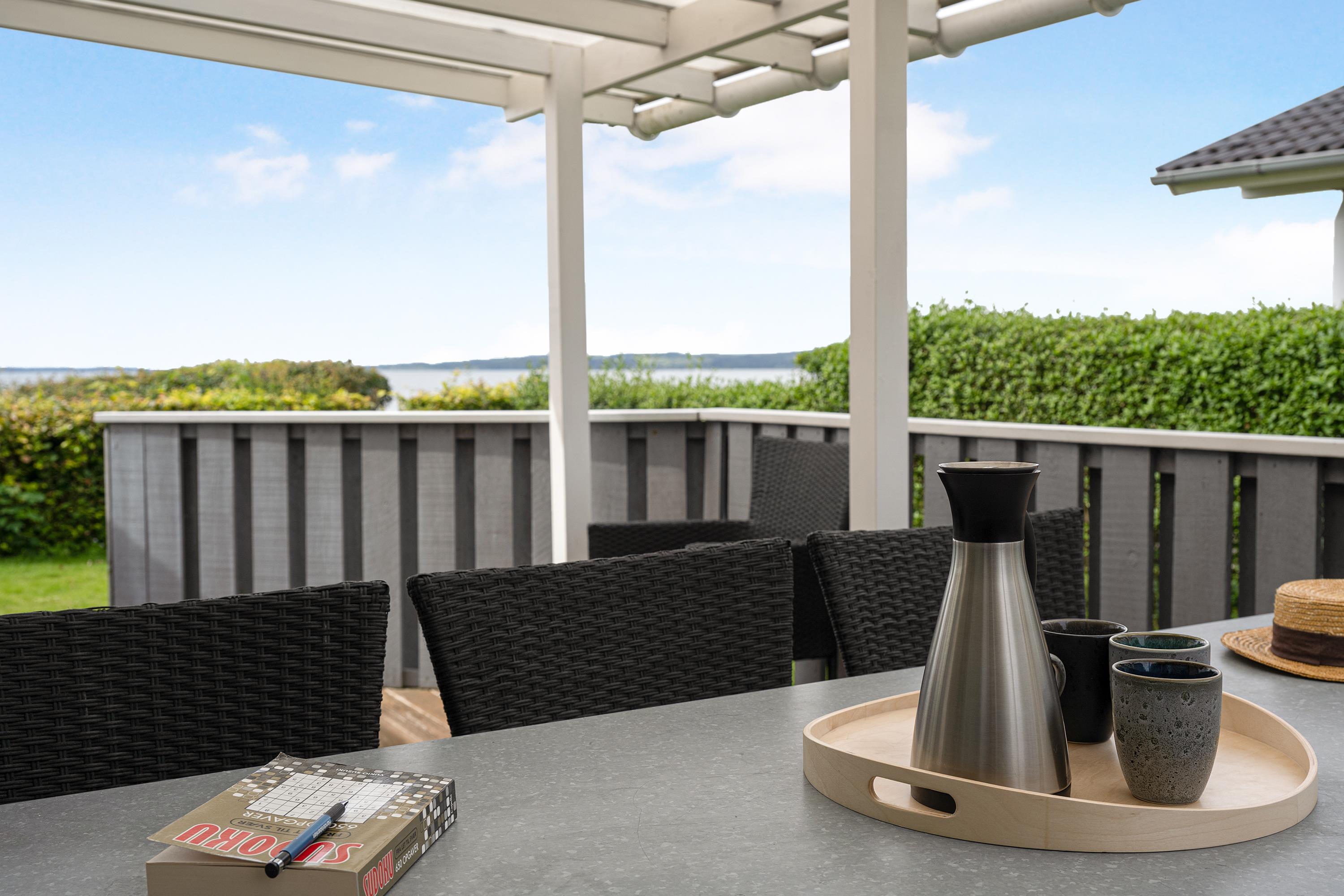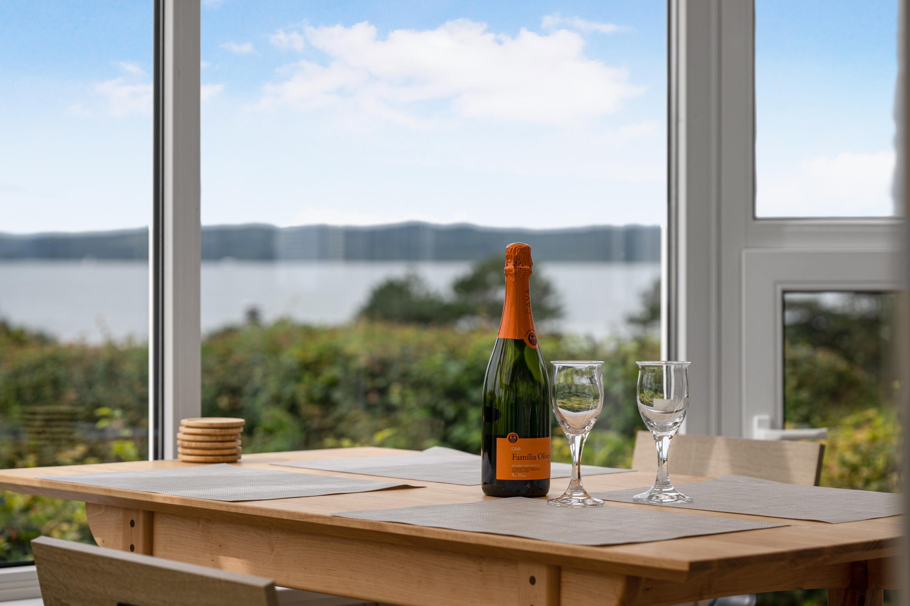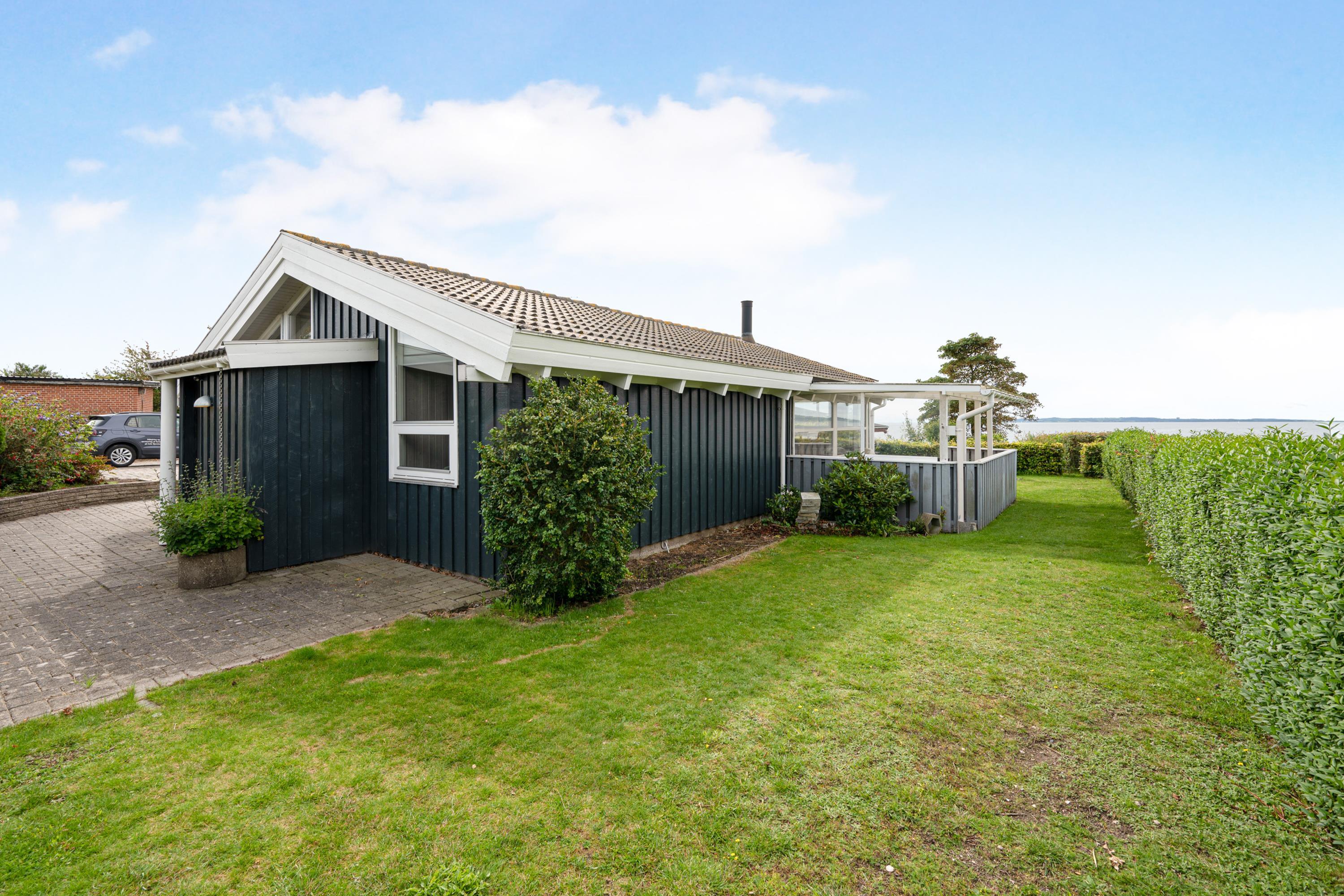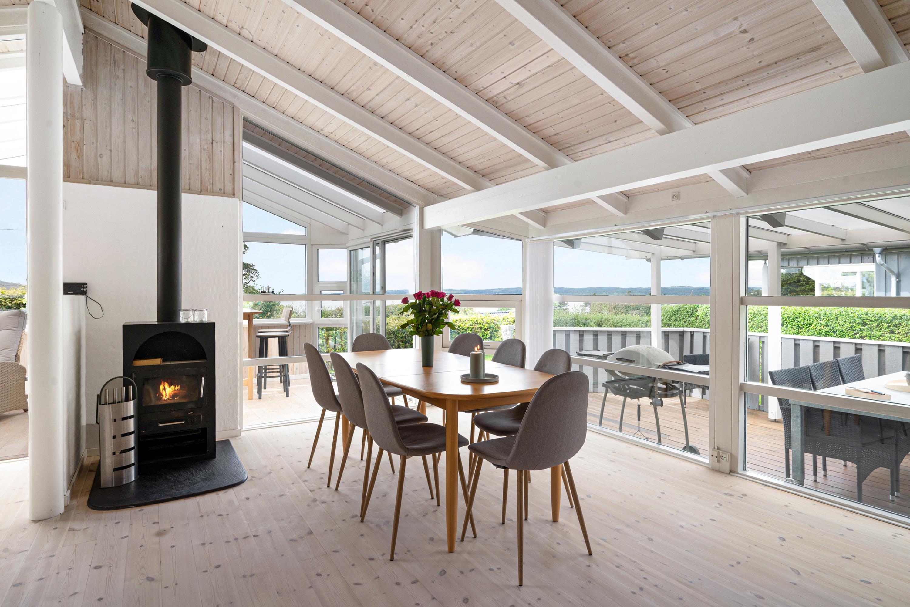 From the living room, you can step out into an integrated conservatory, offering the most beautiful view over Ebeltoft Bay and Mols Bjerge. There's also a covered terrace with outdoor furniture, where you can sit on a warm summer evening and enjoy the sunset over Mols Bjerge. The house is situated on a lovely plot with a lawn and plenty of space for parking.