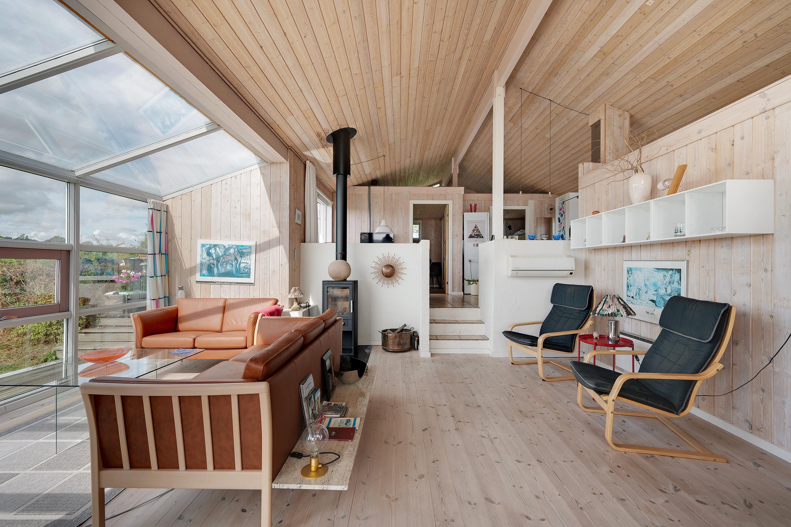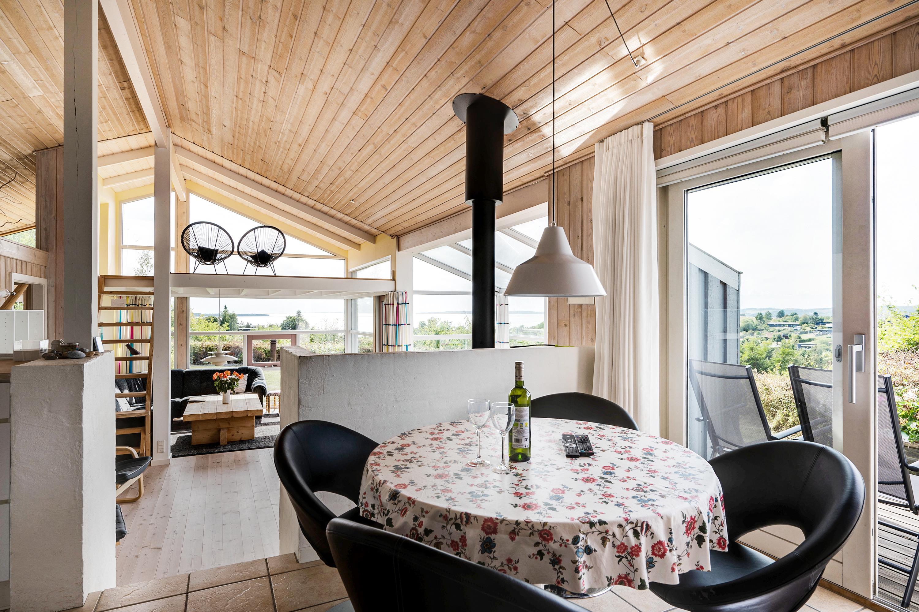 Close to Ebeltoft, you’ll find this beautiful and well-maintained holiday home, offering the most stunning views over Ebeltoft Bay. The house features a lovely and well-equipped kitchen with a separate dining area and access to a terrace. The sunken, cozy living room is furnished with comfortable furniture, including a wood-burning stove and a heat pump.