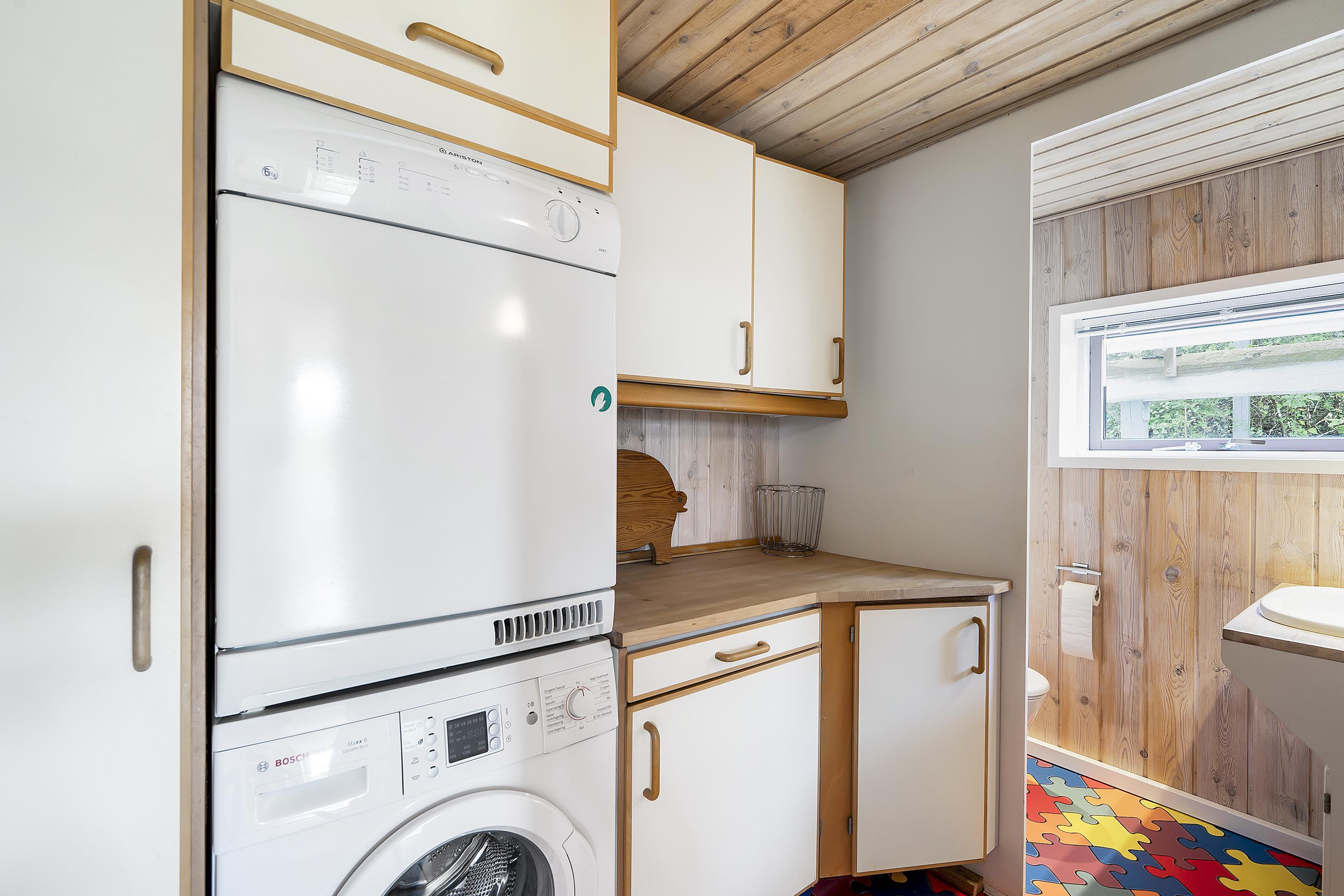 The sleeping arrangements consist of three good-sized bedrooms: two with double beds and one with bunk beds. The bathroom is equipped with underfloor heating, a washing machine, a dryer, and a guest toilet. The house also offers internet access.