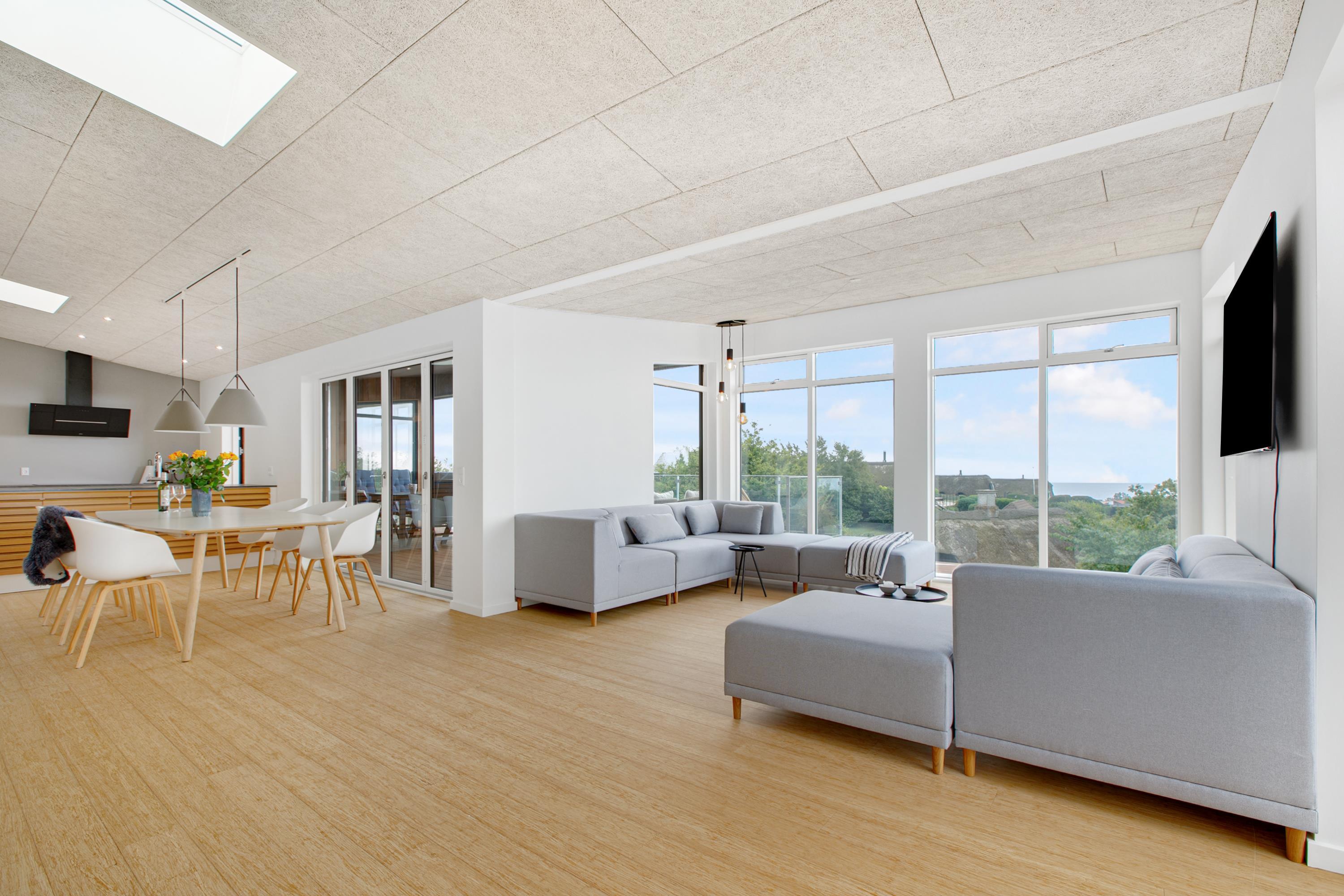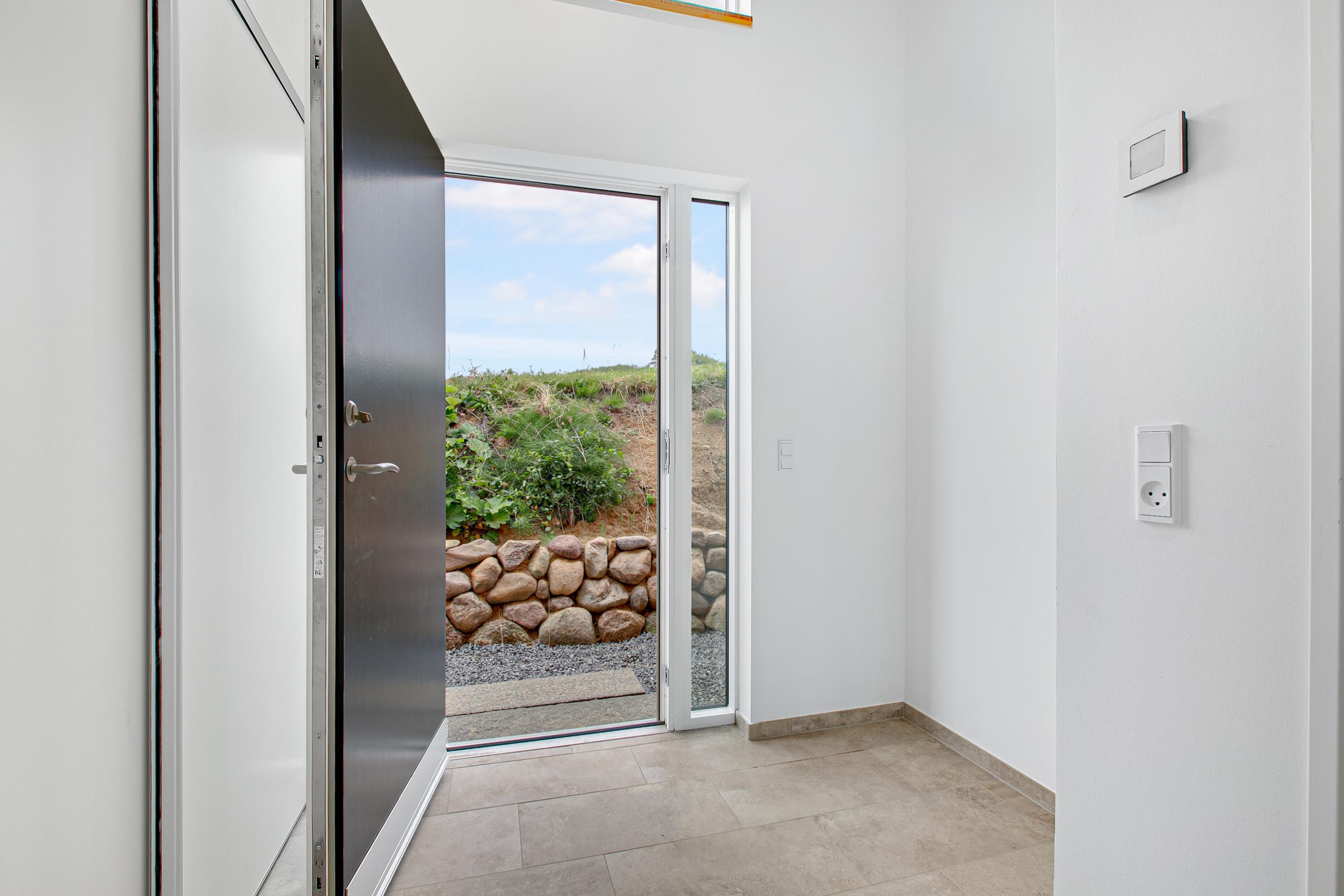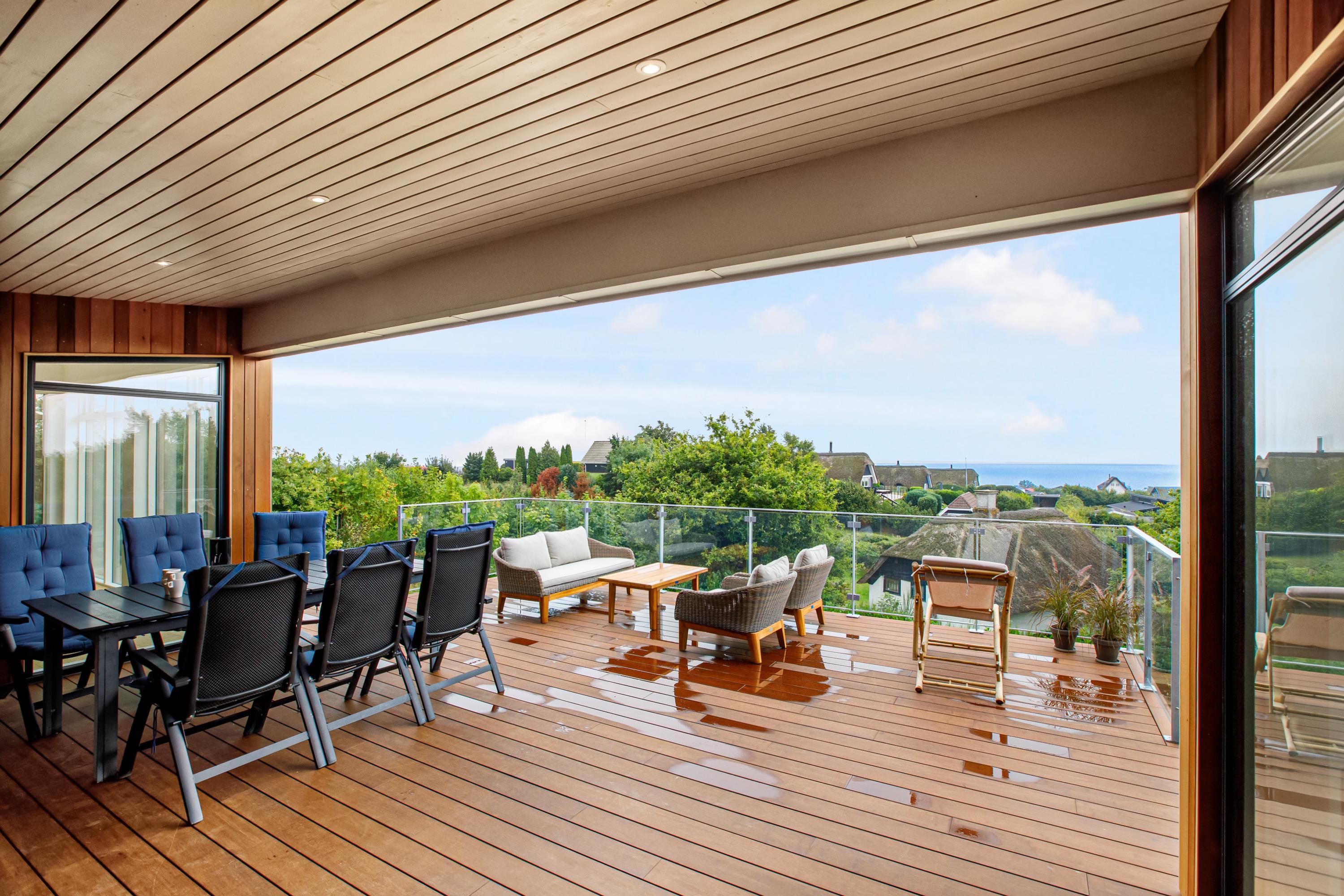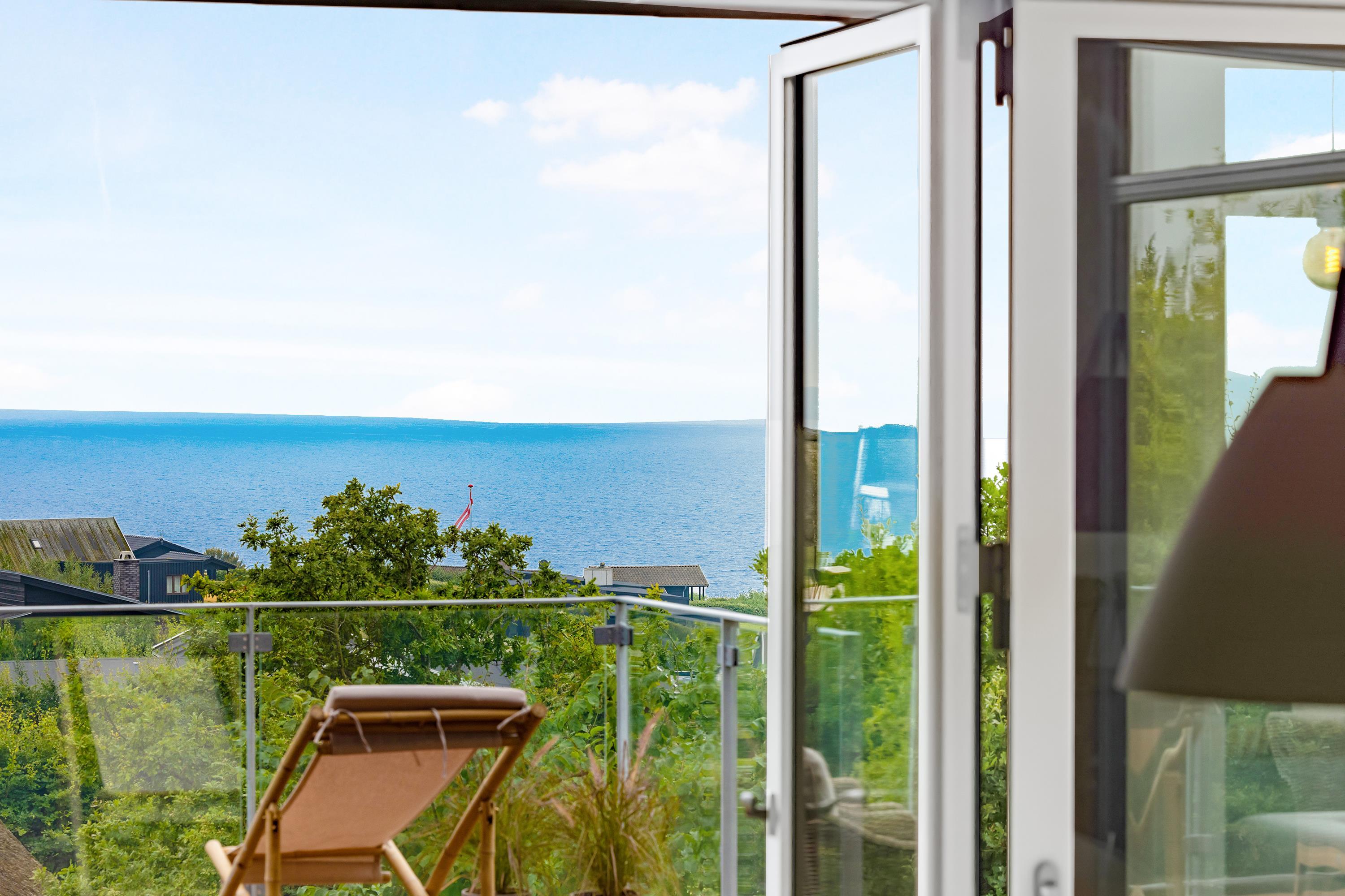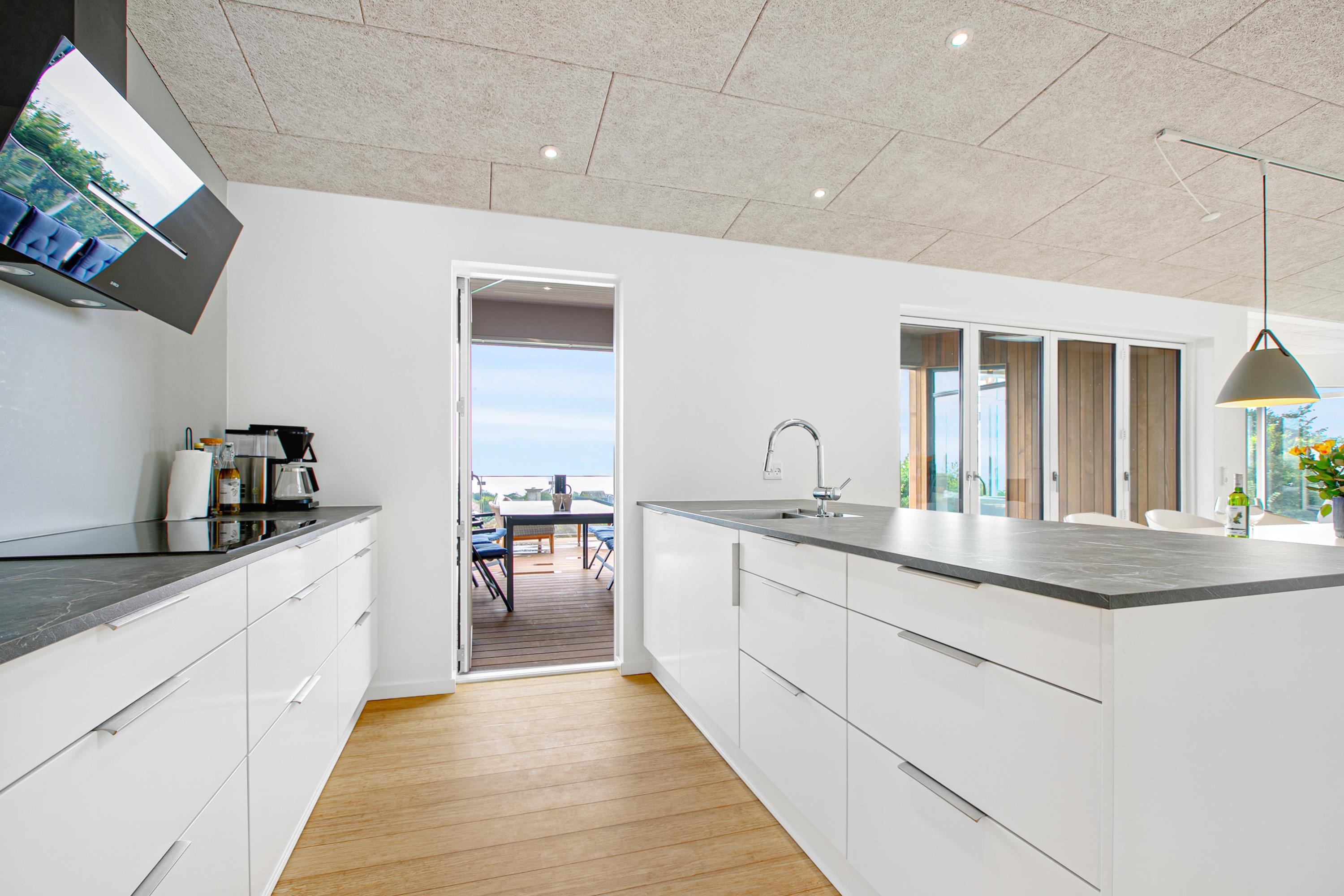 With the most beautiful view over Ebeltoft Bay and all the way to Samsø, you'll find this stunning newly built house. The house is architect-designed and constructed with high-quality materials, focusing on sustainability. It is made of cedar wood, with solar panels on the roof and solid bamboo floors throughout.