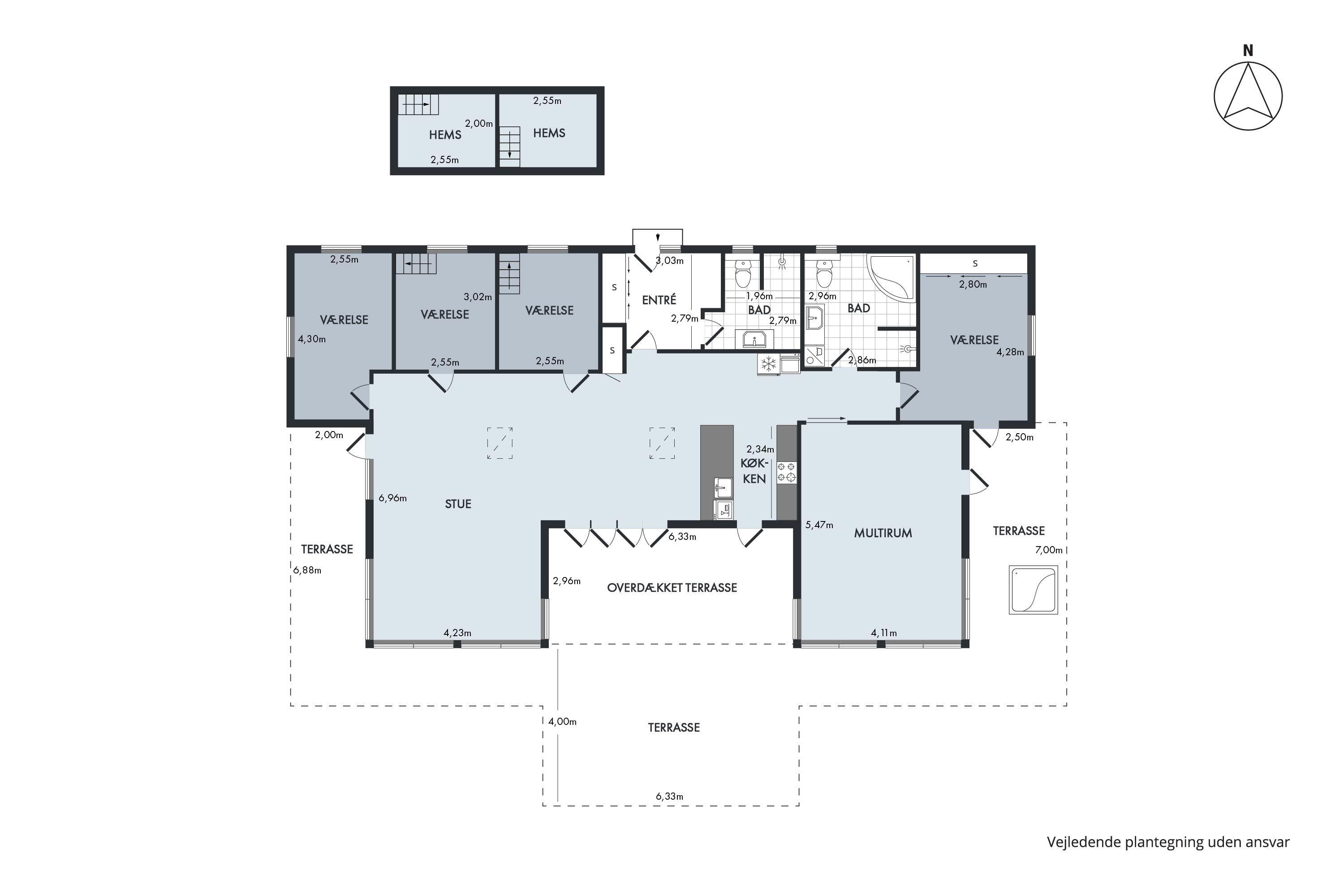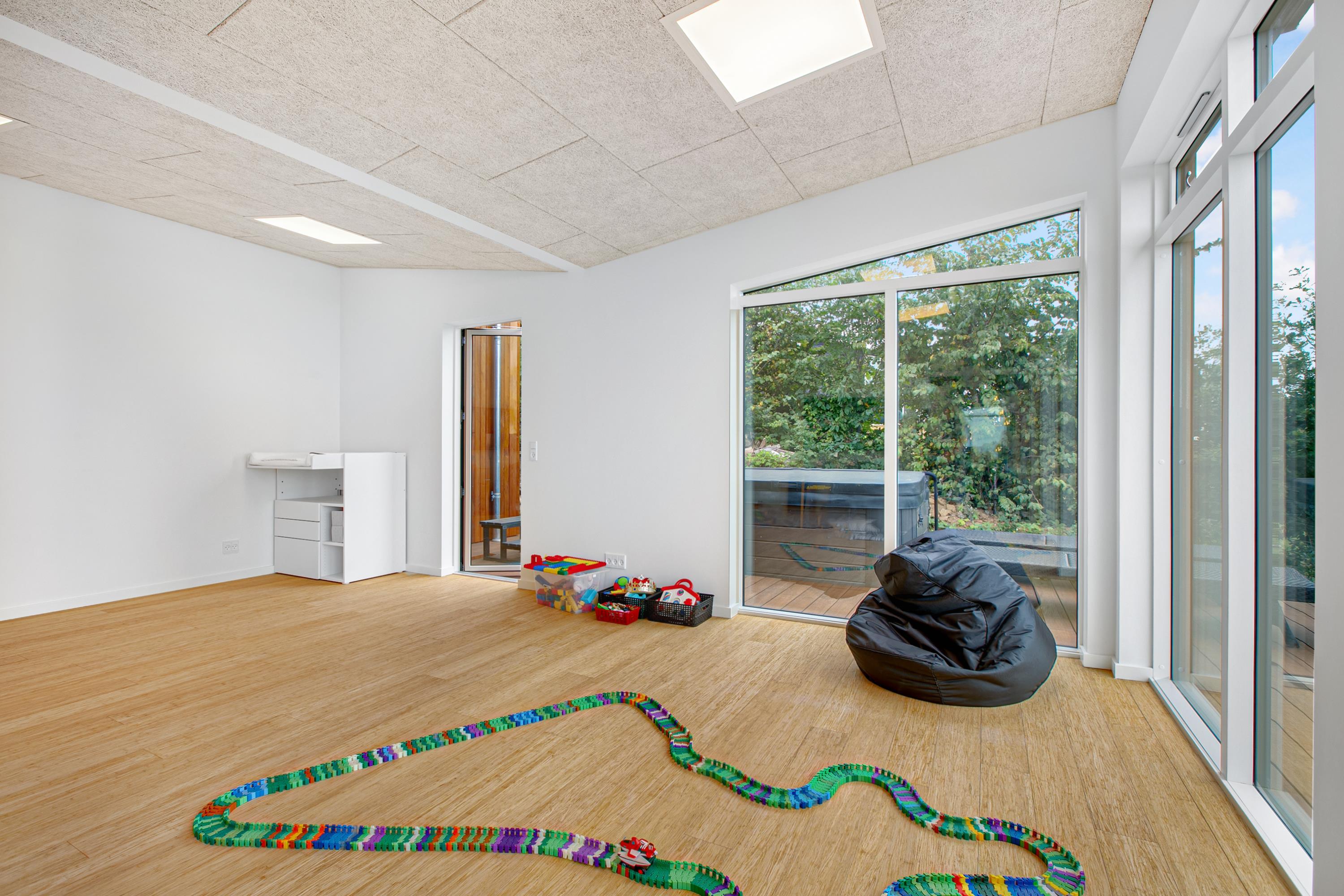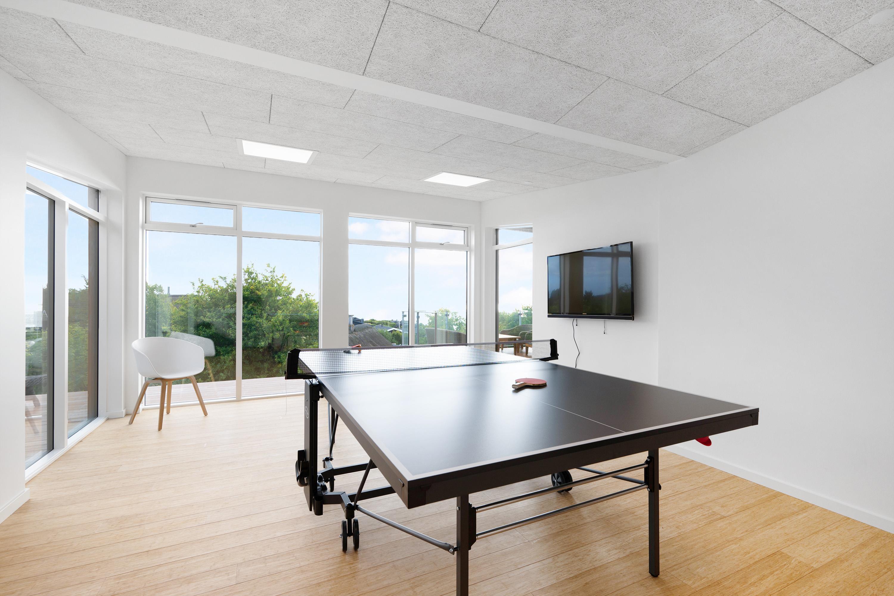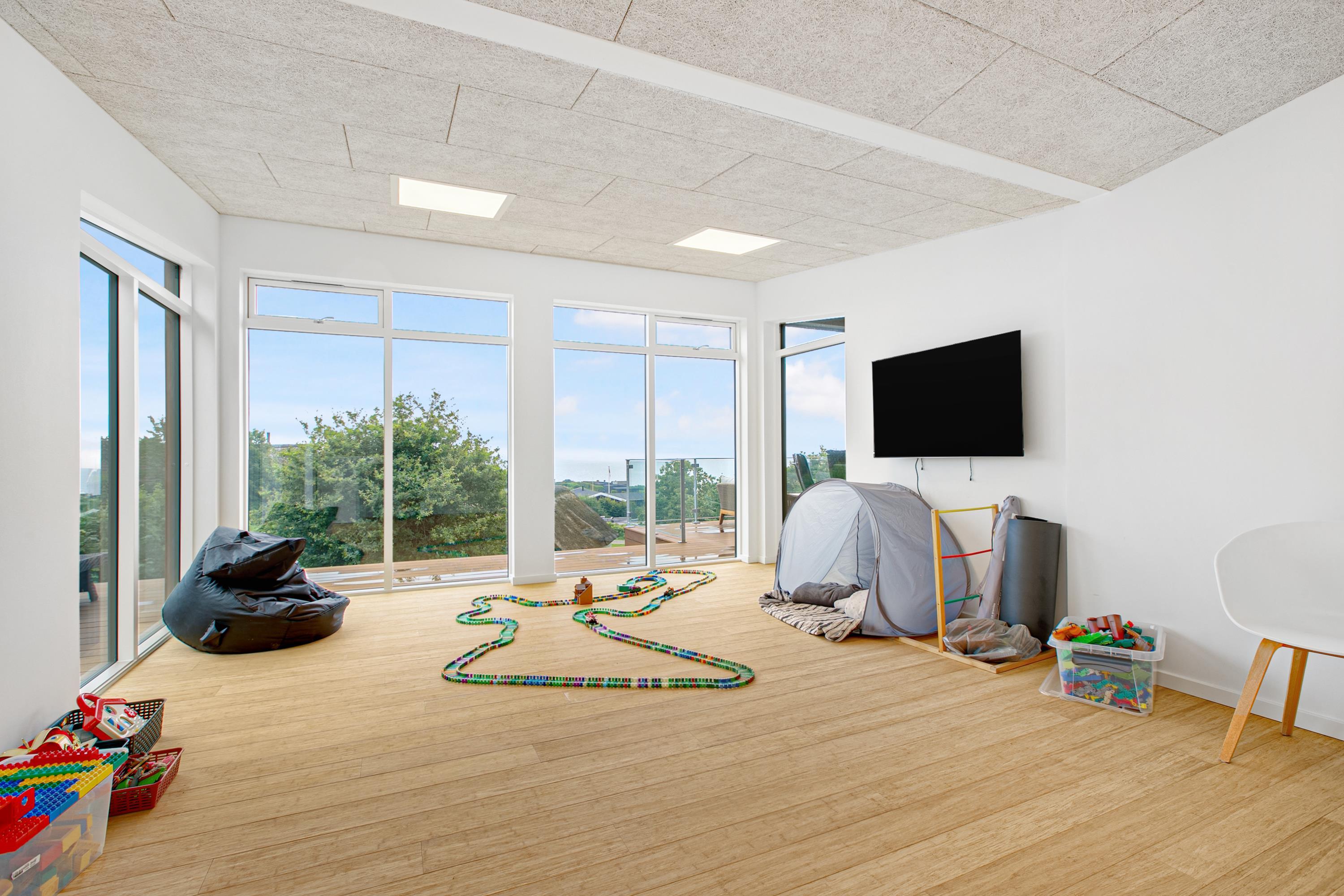 The house has eight sleeping spaces, divided into four large bedrooms with double beds. There is also a large activity room/playroom with table tennis, Duplo, Flexi-trax, and games. The house includes two beautiful bathrooms, one of which has a spa bath. Additionally, there is access to both a washing machine and a dryer. The house has internet access, and TV is available via streaming. It is heated by an air-to-water heat pump, making it energy-efficient.