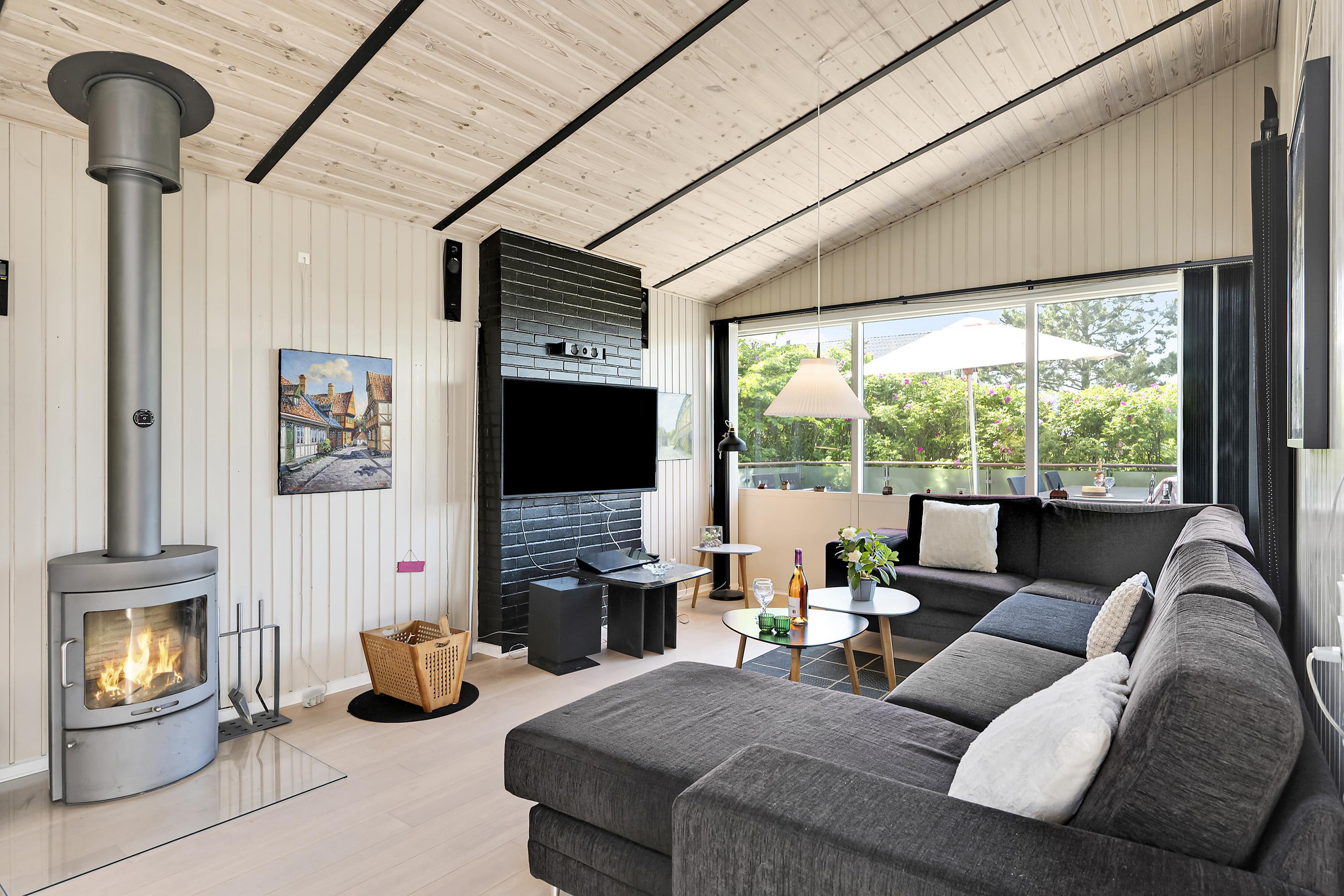 Just a 10-minute drive from Ebeltoft, you will find this beautiful and exceptionally well-maintained house, located close to a lovely beach. The house features a cozy living room, furnished with comfortable furniture, a wood-burning stove, and a heat pump. Adjacent to the living room is a well-equipped kitchen with a pleasant dining area, with access to the terrace.