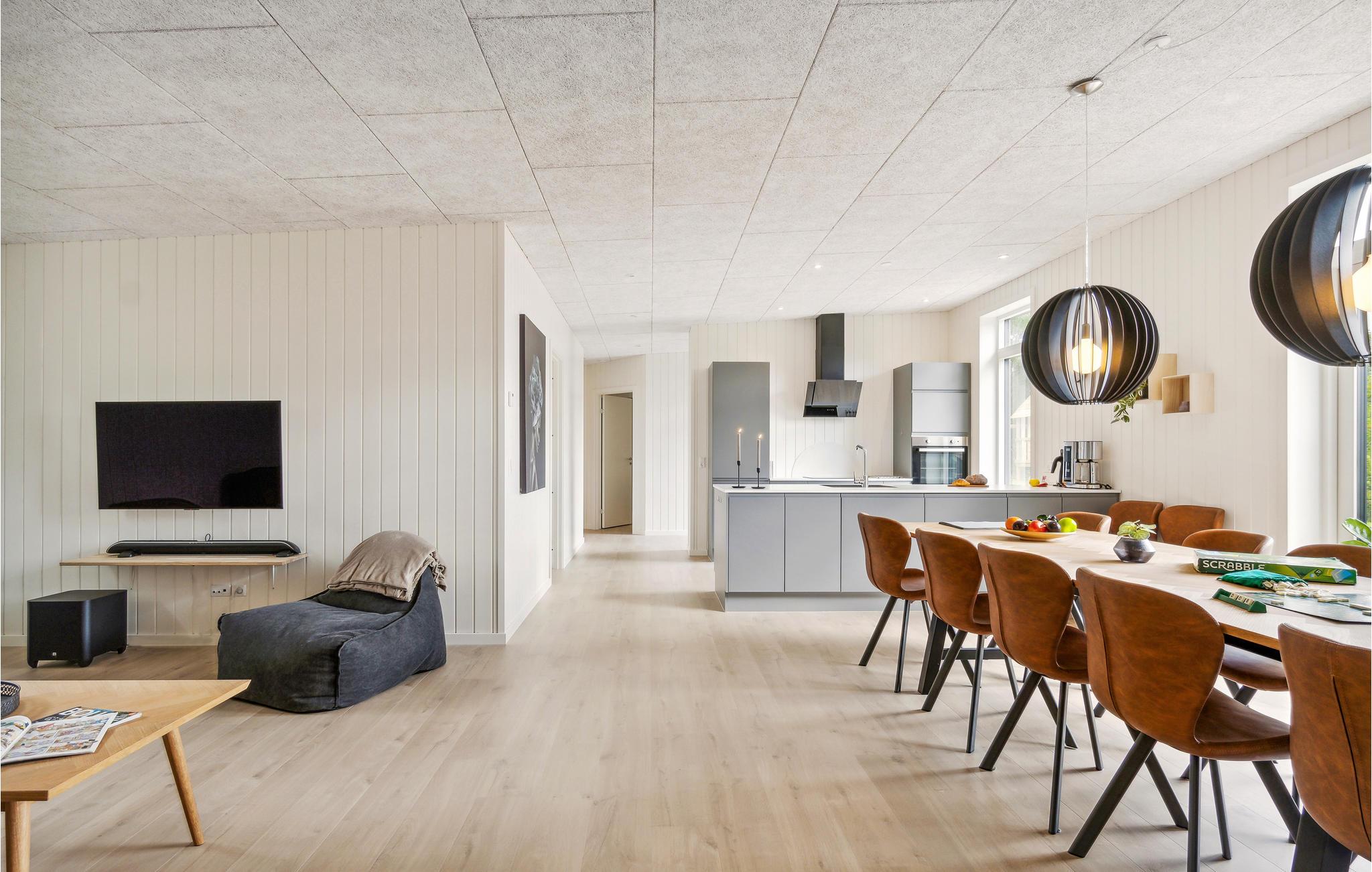 Ikke langt fra vannet finner du dette stilfulle og velutstyrte feriehuset med plass til opptil flere familier. Her kan dere tilbringe morsomme timer i innendørsbassenget eller underholde dere i aktivitetsrommet med et slag bordtennis eller dart. I det moderne kjøkkenet kan du trylle frem favorittrettene dine og tilbringe hyggelige kvelder ved det store spisebordet.