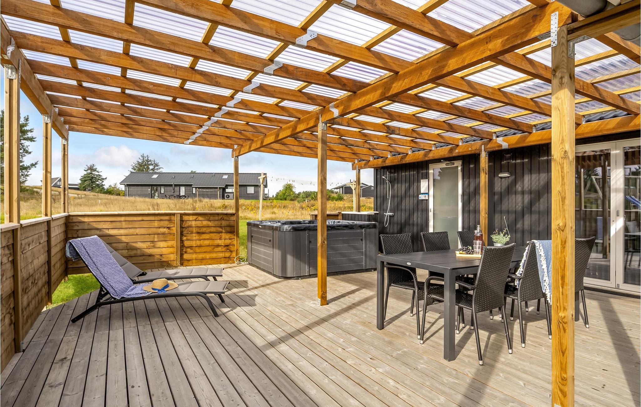 Huset ligger i et nyutpekt område, en 10-minutters spasertur fra stranden og bare fem minutters kjøring fra Ebeltoft by. Opplev naturreservatet med Molsbjerge nasjonalpark, sykkel- og terrengsykkelstier og gode kyster for kitesurfing. Det kan forekomme byggestøy, da huset ligger i et nyutpekt område for fritidsboliger. Det vil ikke være plen på eiendommen før i begynnelsen av september 2020.