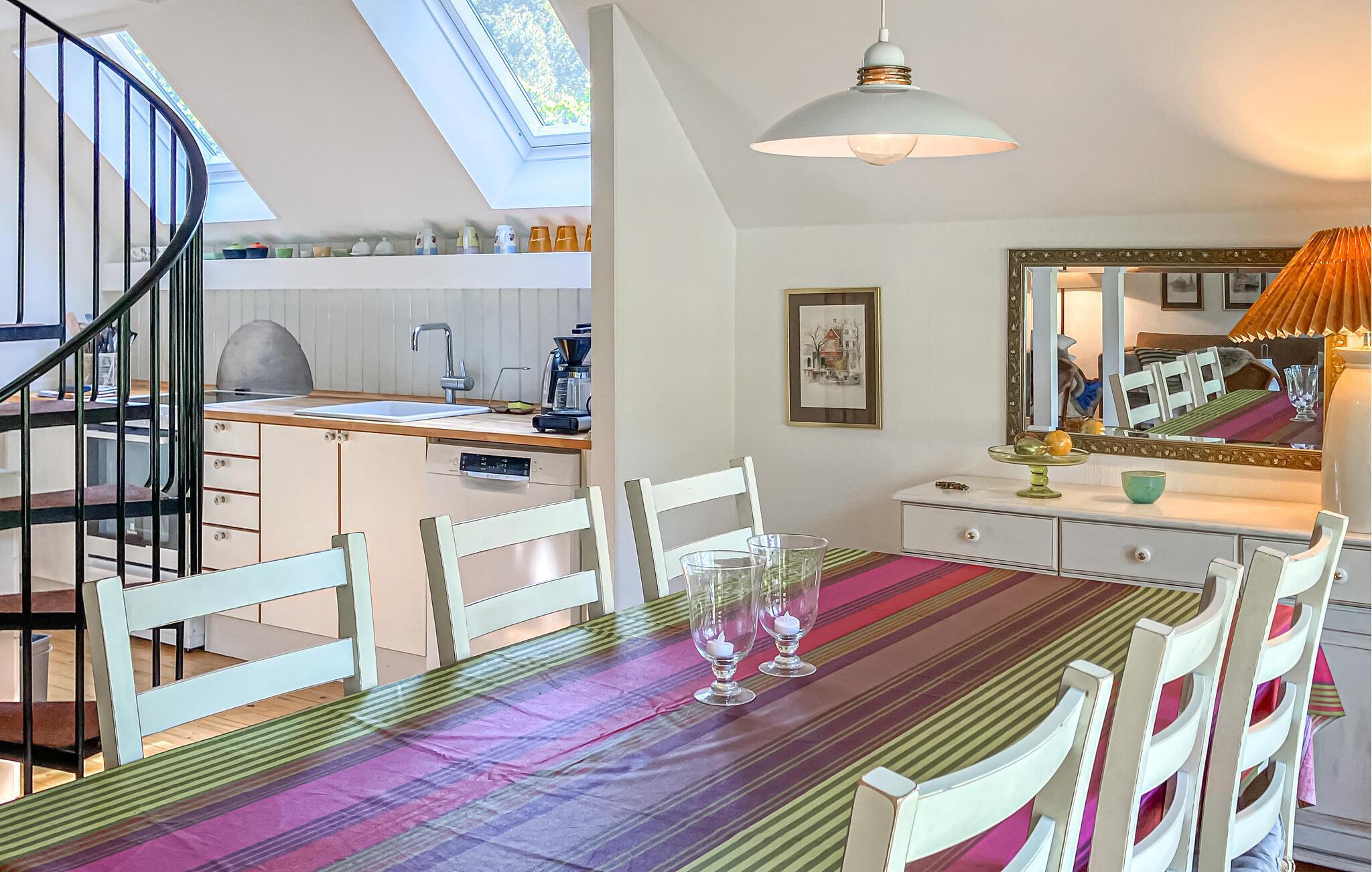 Dette vakre feriehuset er ideelt for en variert familieferie, og den fredelige beliggenheten innbyr til å koble av. Nyt de naturskjønne omgivelsene og dra nytte av nærheten til den svakt skrånende, barnevennlige sandstranden, ideell for avslappende badedager og lange spaserturer langs sanddynene. Inne i huset skaper den åpne planløsningen med stue og spisestue en koselig atmosfære. Lag mat sammen på det praktiske kjøkkenet, spis sammen ved det store bordet med utsikt over hagen, og avrund kvelden i sofaen ved vedovnen. Utenfor venter en trampoline på barna, mens de voksne kan nyte dagen på terrassen.