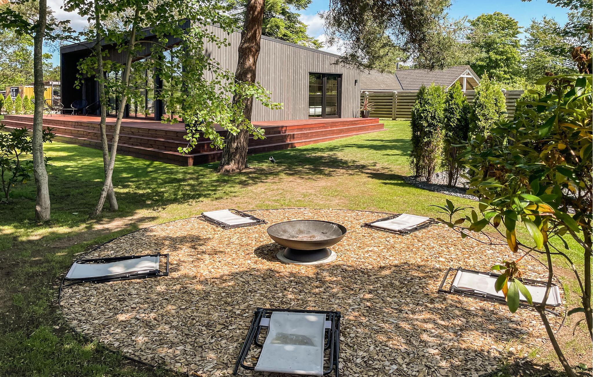 Nyt solen på den romslige treterrassen, med utsikt over de grønne omgivelsene og god plass til å slappe av. Det private boblebadet, som er beskyttet av tette busker, er ideelt for et varmt bad i solnedgangen eller under stjernehimmelen. Om kvelden kan du samle familie eller venner rundt peisen og avslutte dagen med en hyggelig historiefortelling.