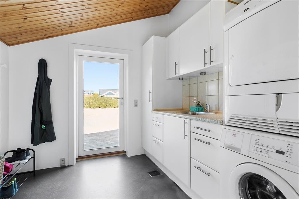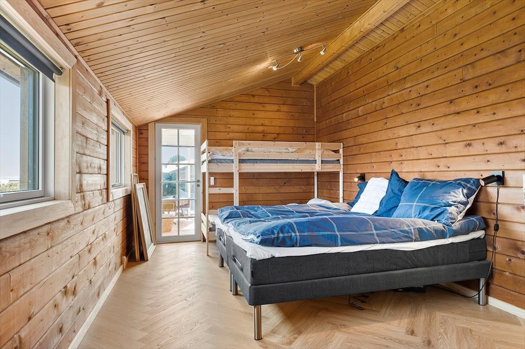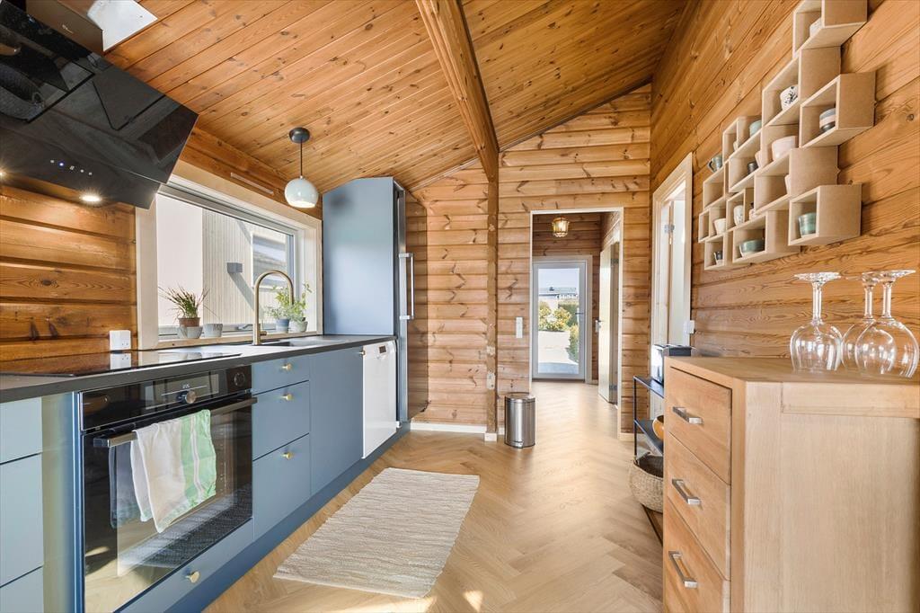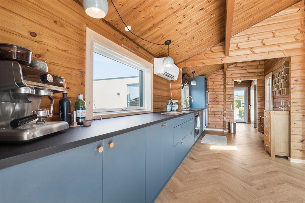 Herzlich willkommen in diesem hübschen Haus am friedvollen Følle Strand! Dein Ferienhaus wurde im Jahr 2023 einer umfassenden Renovierung unterzogen, bei der der Eigentümer den ursprünglichen, klassischen Ferienhauscharme mit neuen, modernen Elementen wunderbar in Szene gesetzt hat. Das elegante Fischgrätparkett und die rustikalen Holzwände und Holzdecken schaffen eine warme, einladende Wohnatmosphäre. Die große blaue Küche und der Essbereich laden zum gemütlichen Beisammensein ein. Rund um den großen Esstisch bietet sich deiner Familie oder dir und deinen Freunden viel Platz. Eine Terrassentür führt dich direkt hinaus auf eine imposante Holzterrasse. Dein Urlaubsdomizil umfasst drei Schlafräume: einen Familienraum mit einem Doppelbett und einem Etagenbett, einen Raum mit einem Doppelbett und einen Raum mit zwei Einzelbetten. Das Badezimmer präsentiert sich ebenfalls angenehm geräumig. Ein praktischer Hauswirtschaftsbereich mit viel Platz und Aufbewahrungsmöglichkeiten ist vorhanden. Nicht zu vergessen ist der reizvolle Wintergarten, in dem ihr es euch auf Polstermöbeln nach Herzenslust gemütlich machen könnt.