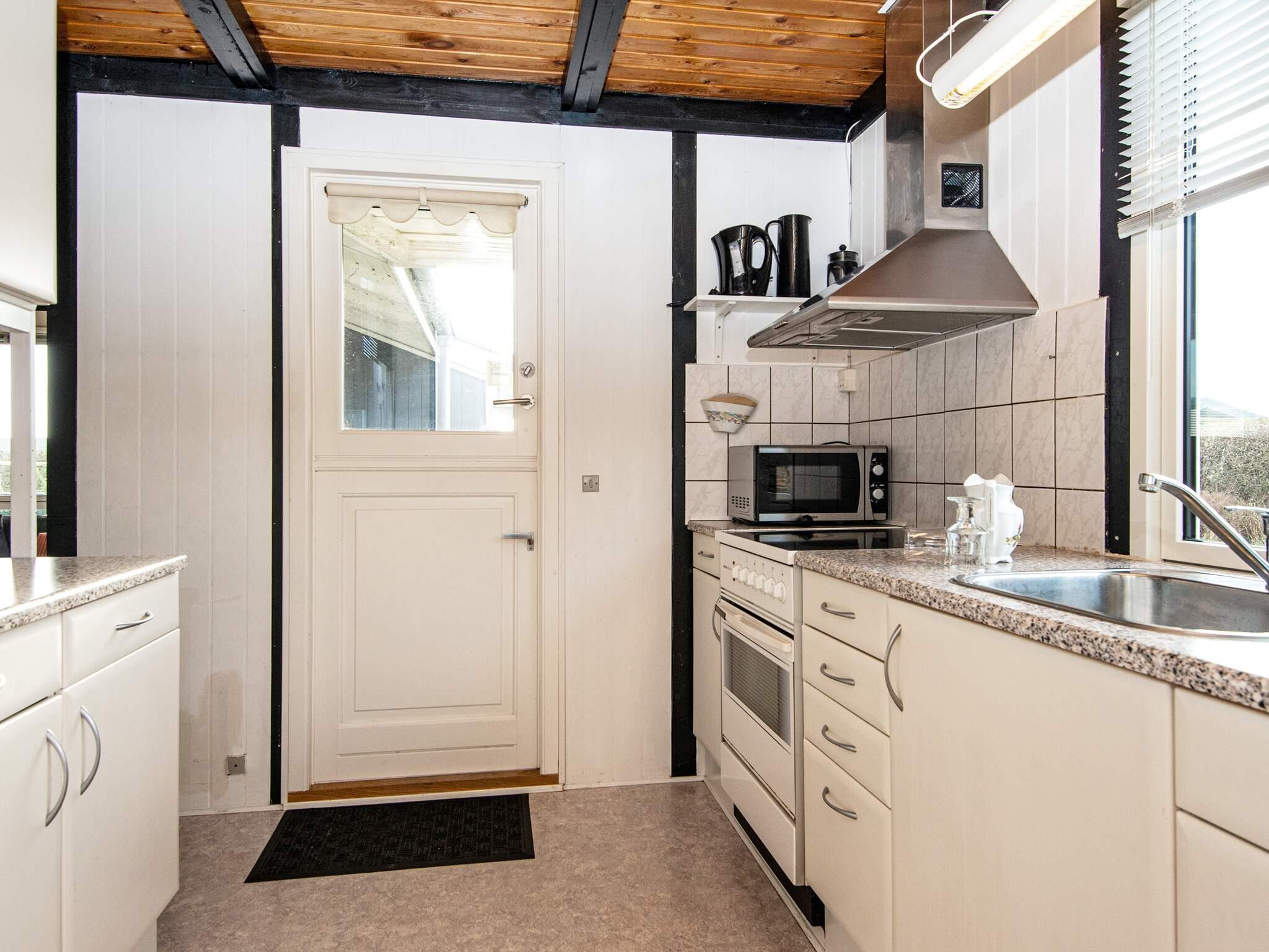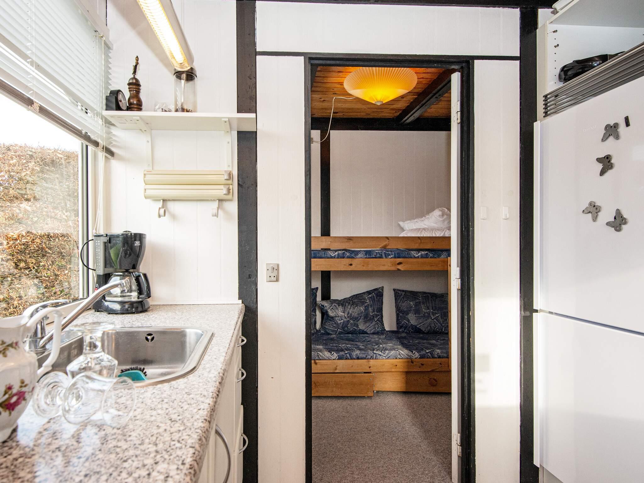 Ejendommen byder på tre soveværelser: to værelser med hver to enkeltsenge, der kan arrangeres som dobbeltværelser, og et tredje værelse med en køjeseng med to køjer, hvilket gør det ideelt for børn. Det åbne køkken er forbundet med spiseplads og stue, hvilket skaber et indbydende rum til fælles måltider og hyggelige aftener sammen. For komforten er huset udstyret med en energieffektiv varmepumpe, mens en traditionel brændeovn tilføjer ekstra varme og atmosfære på køligere dage. Brænde medfølger ikke.