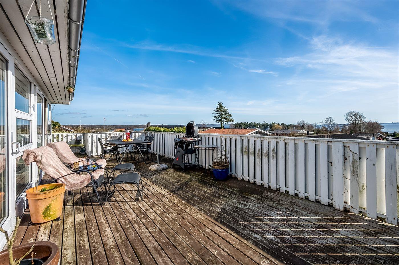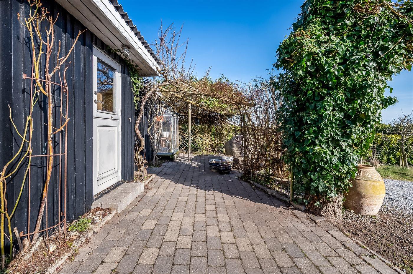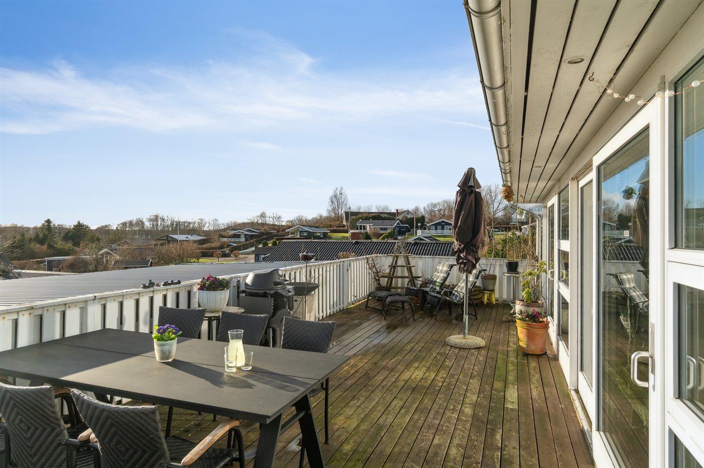 Ferieboligen er beliggende på en 1200 m² stor naturtomt. Avstand til hav er 450 m. Nærmeste butikk ligger i en avstand på 3500 m. Til ferieboligen hører åpent terrasseareal. I tillegg er det overdekket terrasse. Det er grill til rådighet. P-plass ved huset.