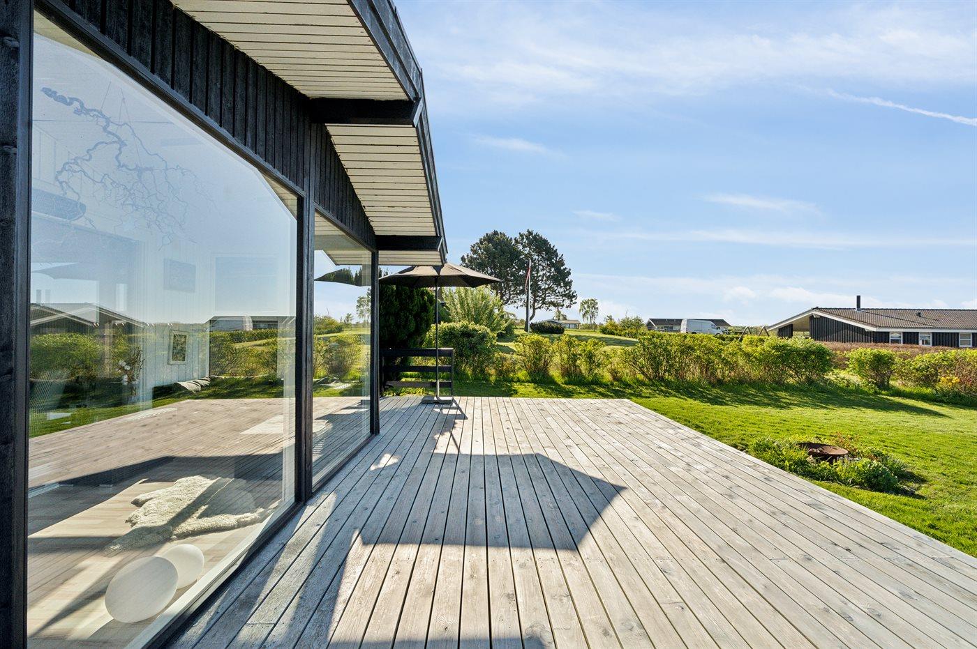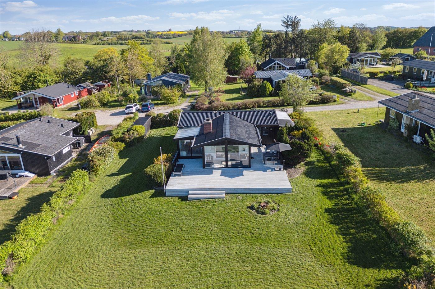 Ferieboligen er beliggende på en 770 m² stor naturtomt. Avstand til hav er 250 m. Nærmeste butikk ligger i en avstand på 2000 m. Til ferieboligen hører åpent terrasseareal. I tillegg er det utgang til utestue. P-plass ved huset.