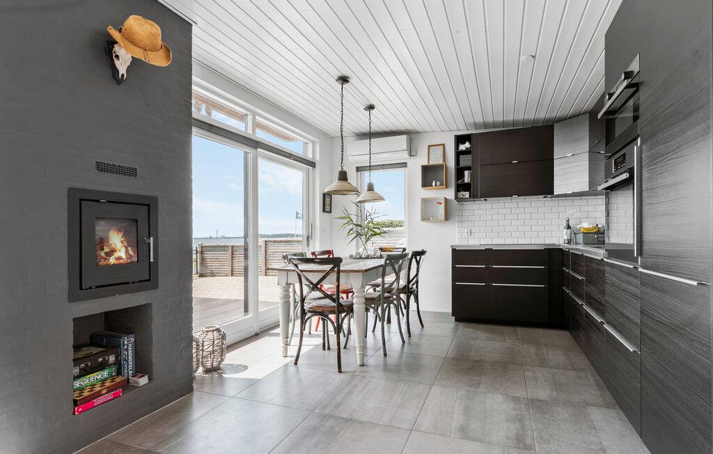 Bare noen få skritt fra den vakre Følle-stranden venter dette innbydende feriehuset på deg for en avslappende ferie. De lyse rommene skaper en vennlig og avslappende atmosfære der du umiddelbart vil føle deg som hjemme. Start dagen med en solid frokost, som du kan tilberede på det moderne kjøkkenet, mens vedovnen knitrer i bakgrunnen på kjøligere dager. I den koselige stuen finner du en komfortabel sofa hvor du kan lene deg tilbake og nyte den fantastiske utsikten over havet.
