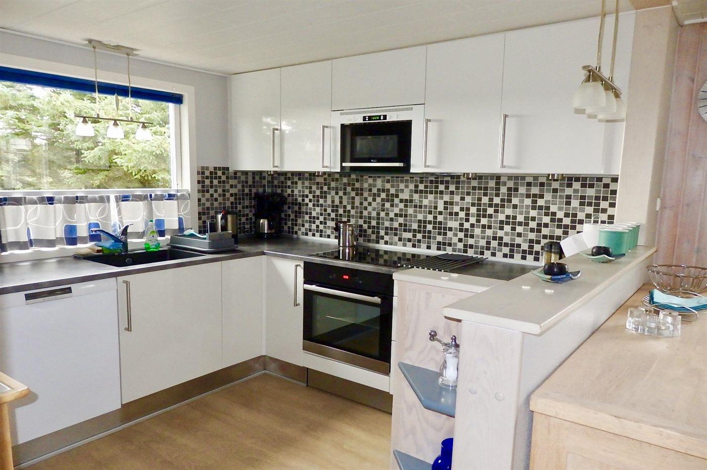 Kjøkkenet er utstyrt med 1 kjøleskap. Det er 4 keramiske kokeplater, varmluftsovn, mikrobølgeovn og oppvaskmaskin.