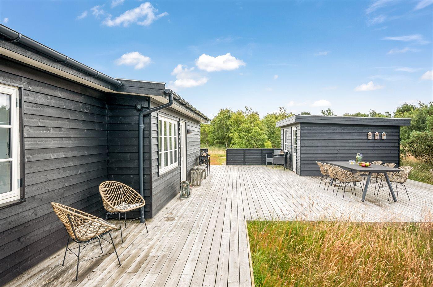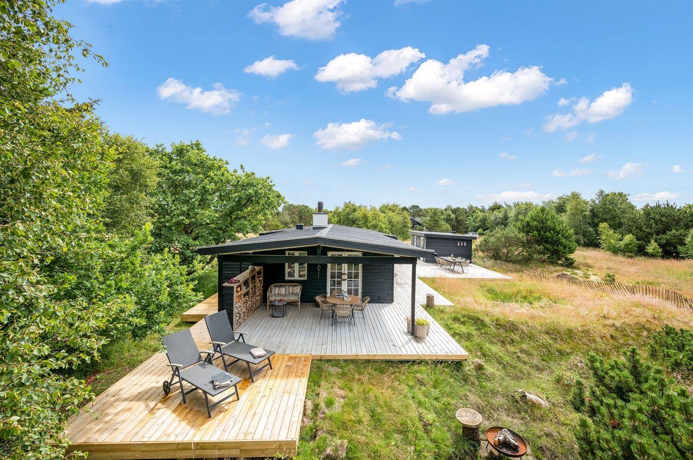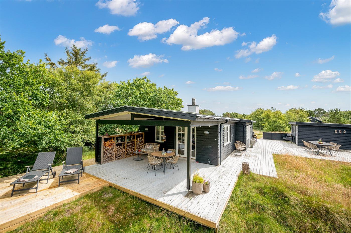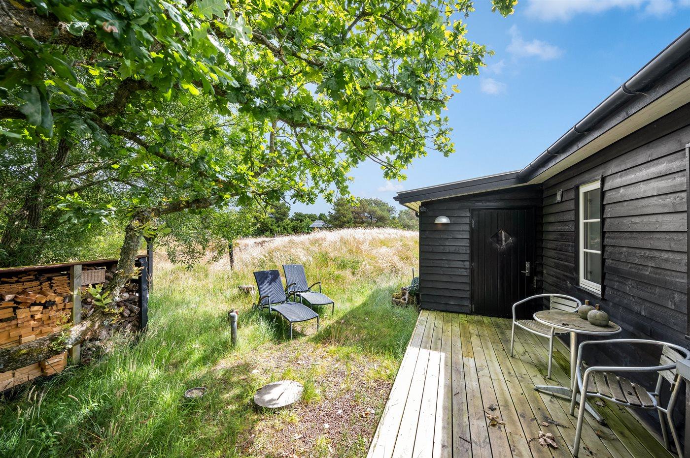 Ferieboligen er beliggende på en 1957 m² stor naturtomt. Avstand til hav er 800 m. Nærmeste butikk ligger i en avstand på 500 m. I tillegg er det overdekket terrasse. Utendørs dusj. P-plass ved huset.