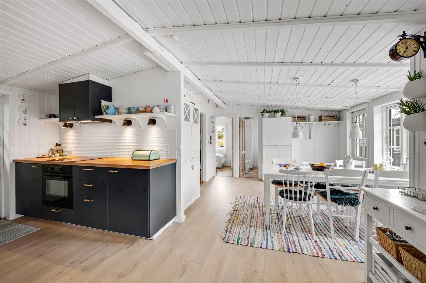 Kjøkkenet er utstyrt med 1 kjøleskap. Det er 4 keramiske kokeplater, varmluftsovn og oppvaskmaskin.