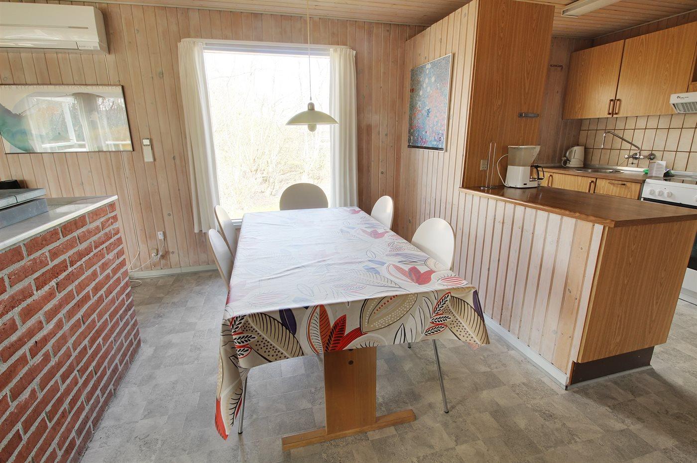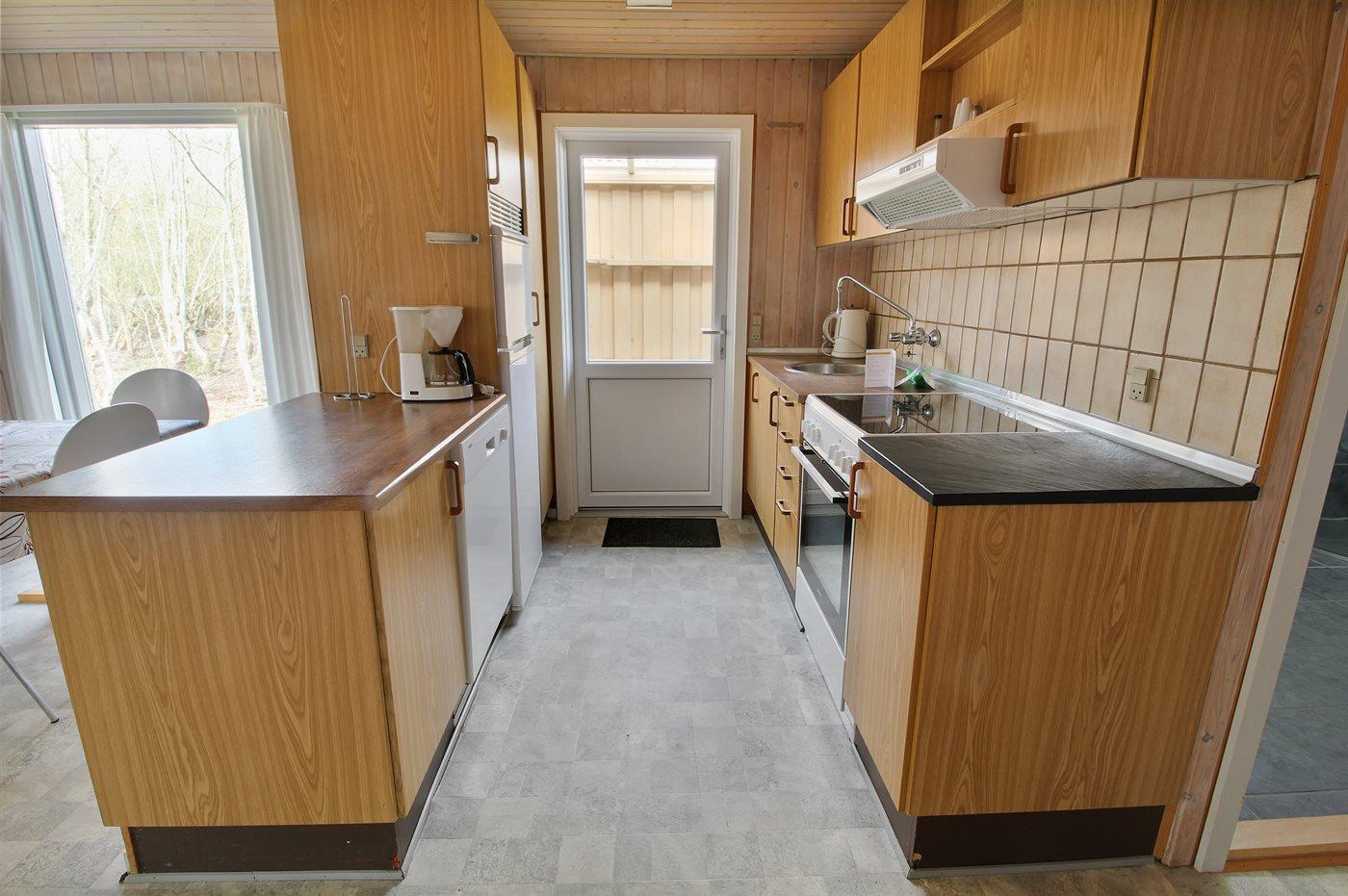 Kjøkkenet er utstyrt med 1 kjøleskap. Det er 4 elektriske kokeplater, stekeovn og oppvaskmaskin.