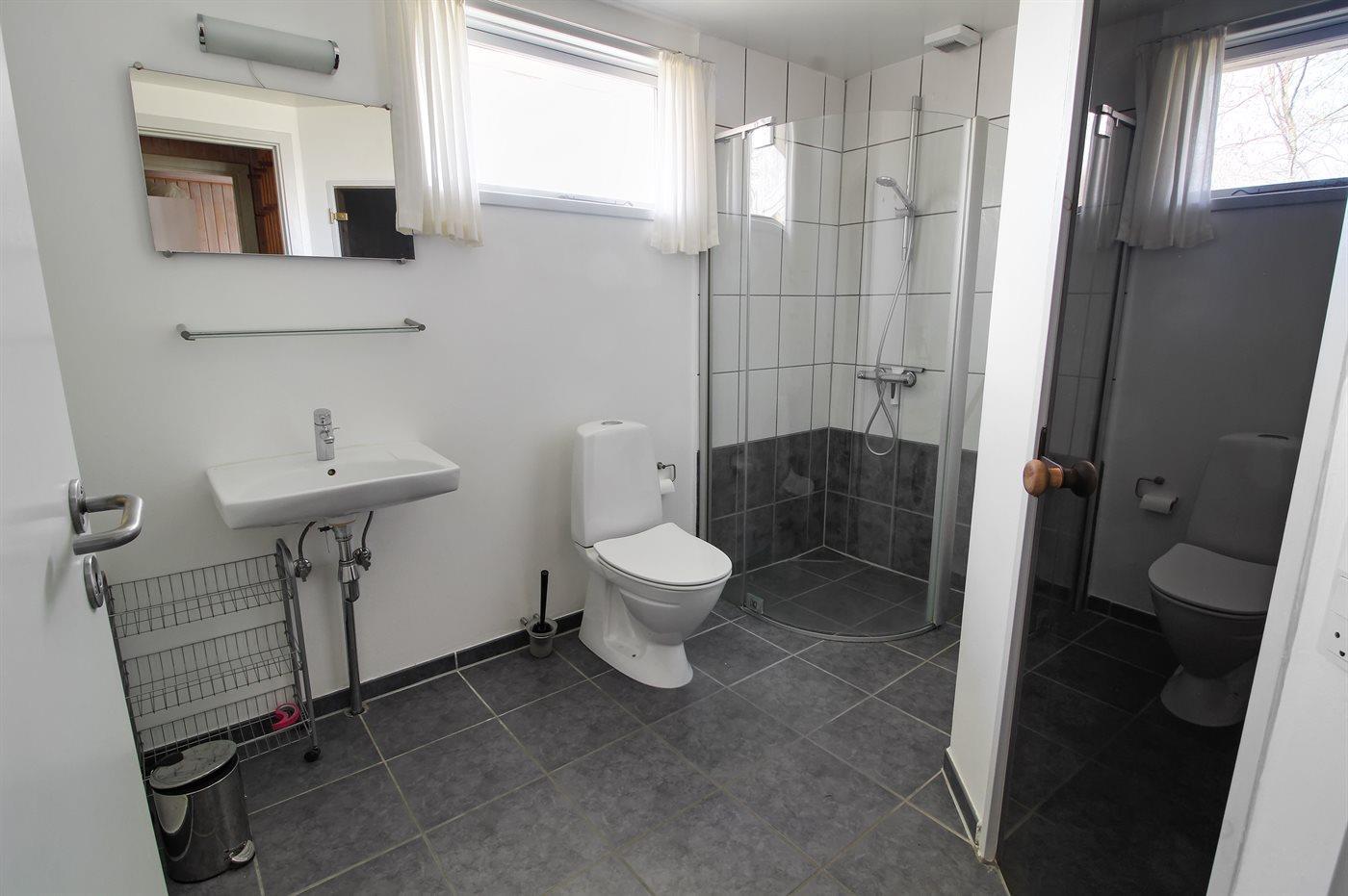 Det er 1 baderom med dusj og 1 toalett.. Det er varme i gulvet i 1 baderom. I badstuen er det mulighet for å slappe av.