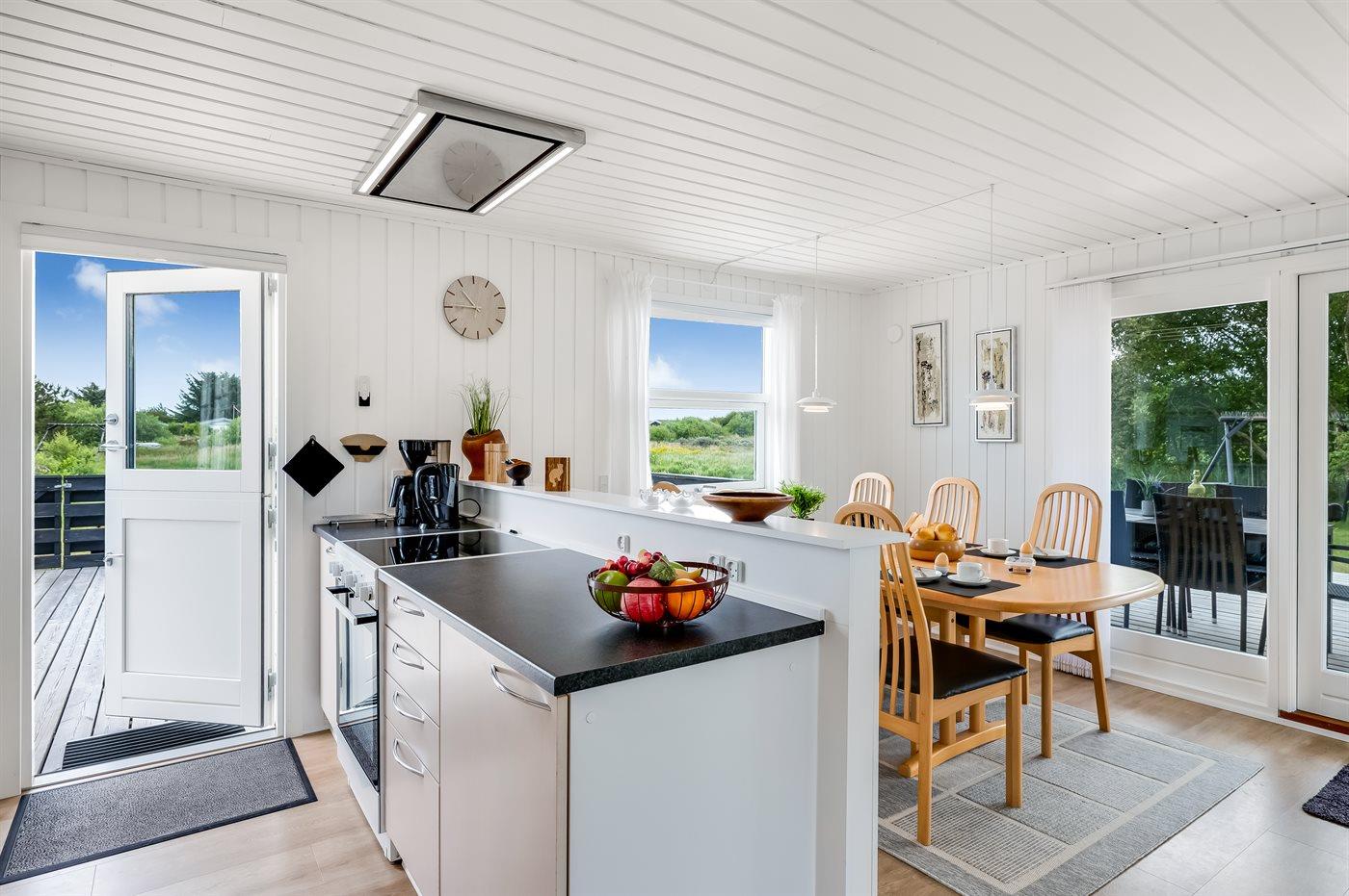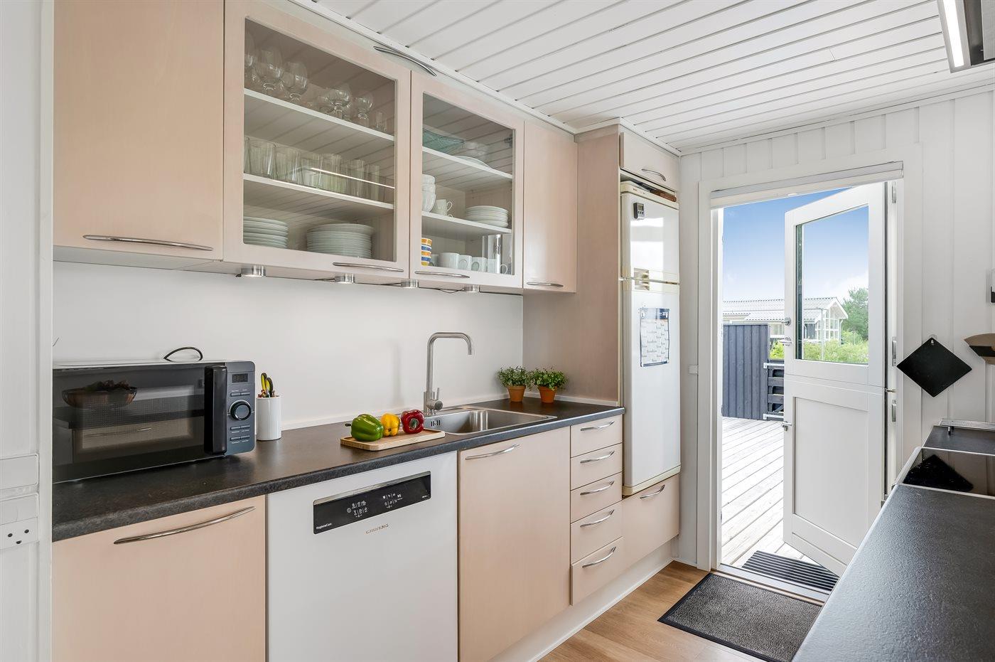 Kjøkkenet er utstyrt med 1 kjøleskap. Det er 4 keramiske kokeplater, varmluftsovn, mikrobølgeovn og oppvaskmaskin.