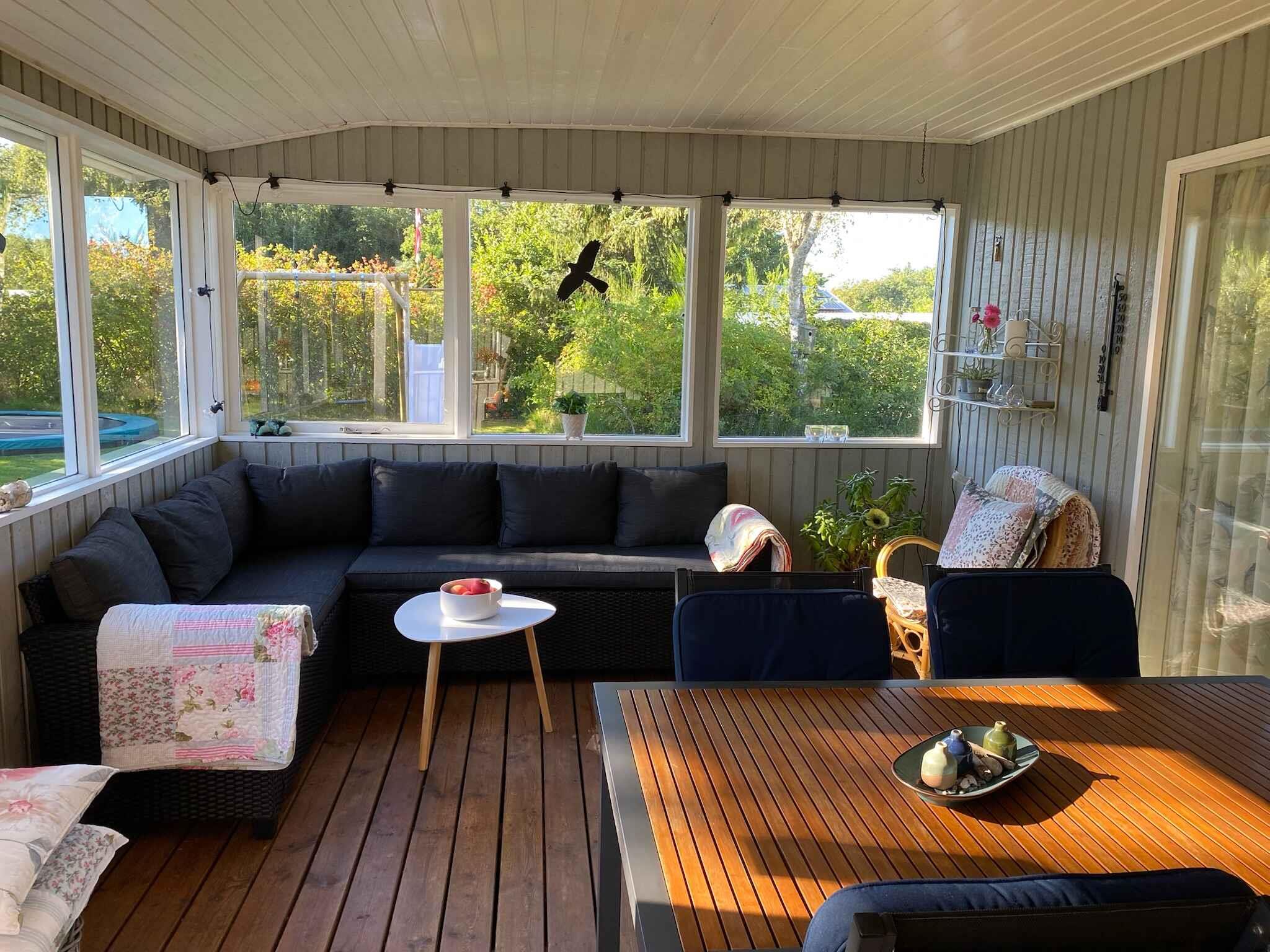 104 m² holiday home with 3 bedrooms for 7. Bright living/kitchen, fully equipped. Child-friendly garden with fire pit, trampoline and sandbox. 150 m to shallow beach with jetty. Close to forest, playground and summer kayak/SUP hire.