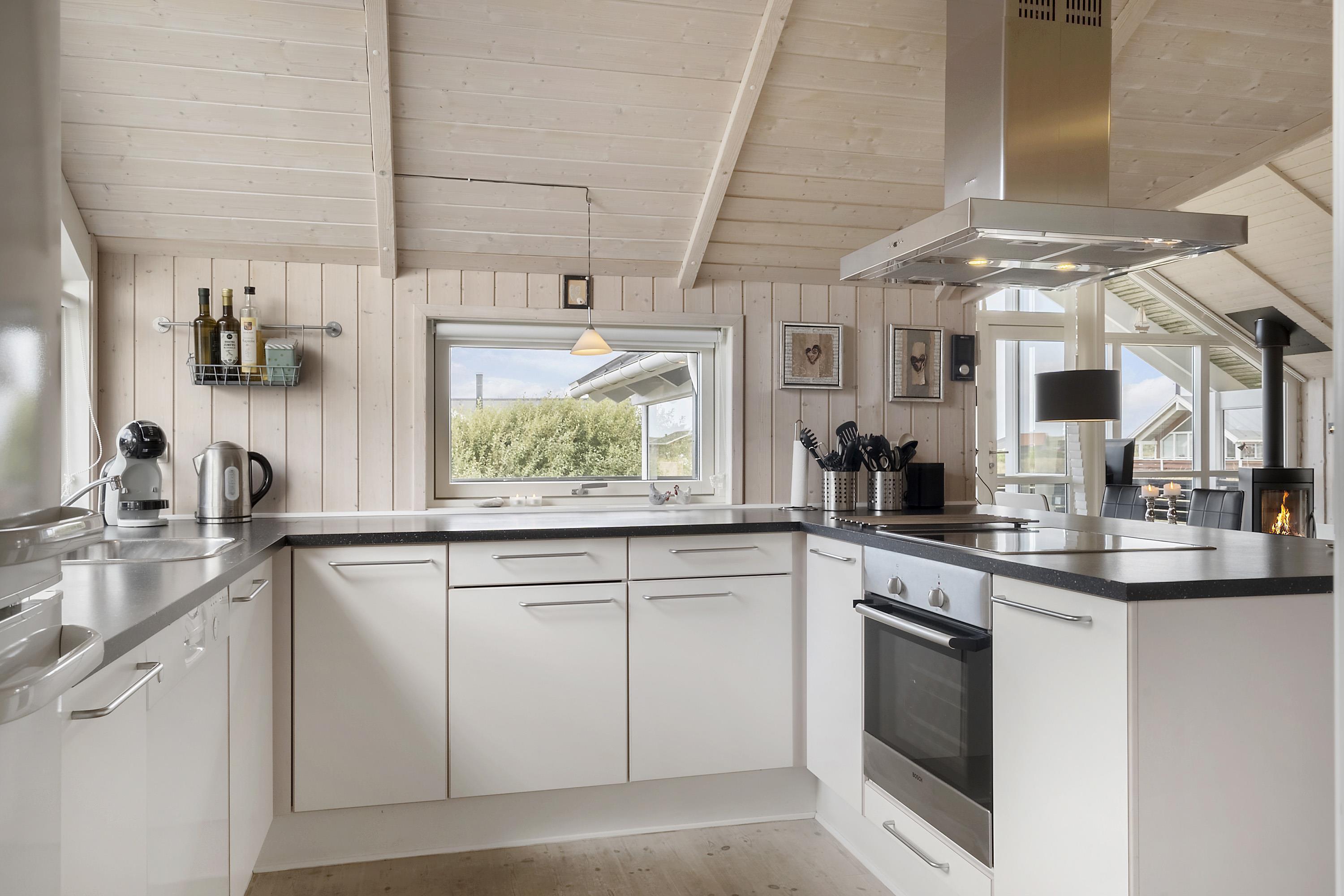 Den lyse og hyggelige stue er indrettet med komfortable møbler, TV med både danske og tyske kanaler, samt brændeovn, der skaber ekstra feriestemning på kølige dage. Huset opvarmes desuden med en energivenlig varmepumpe.