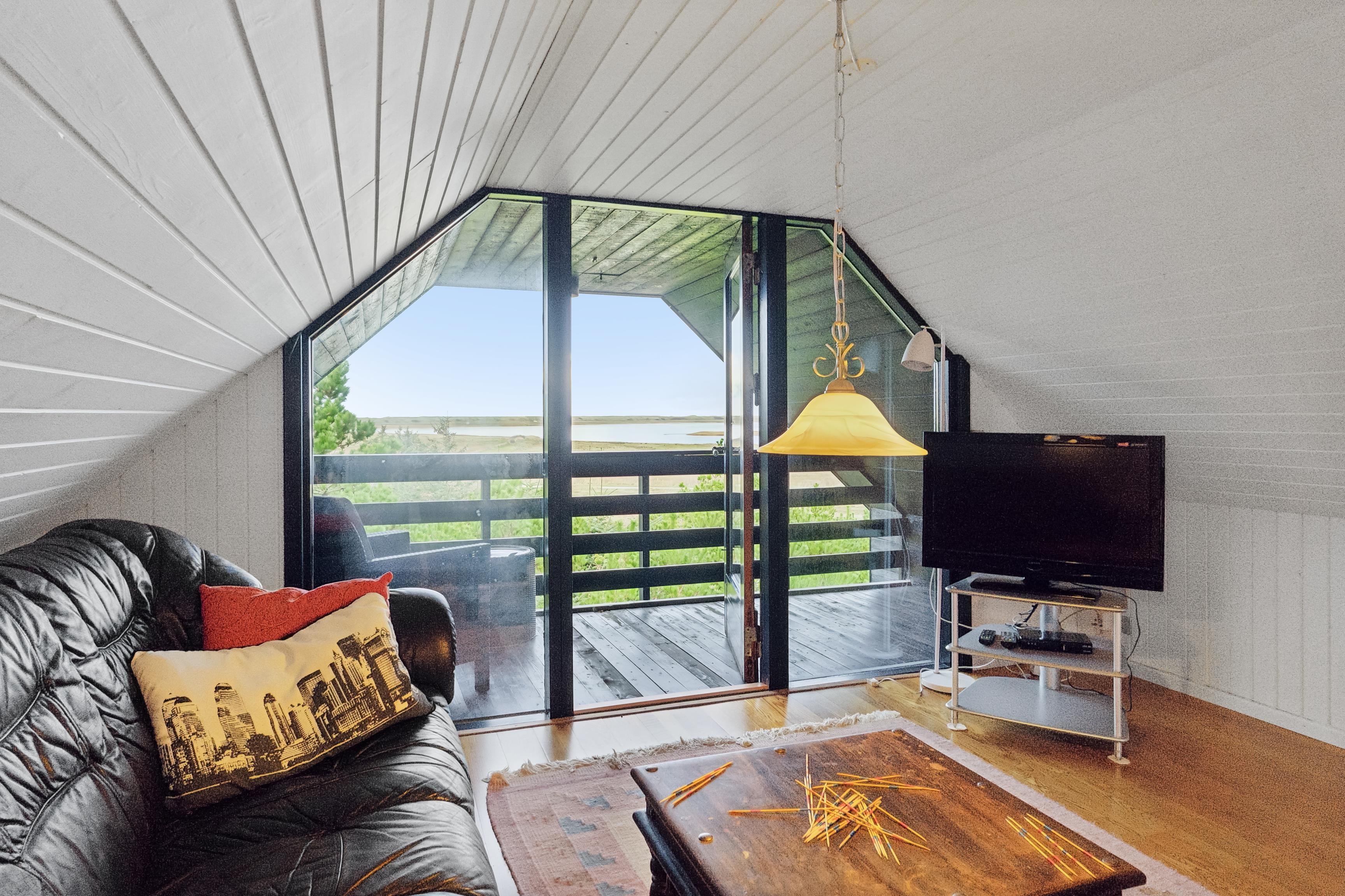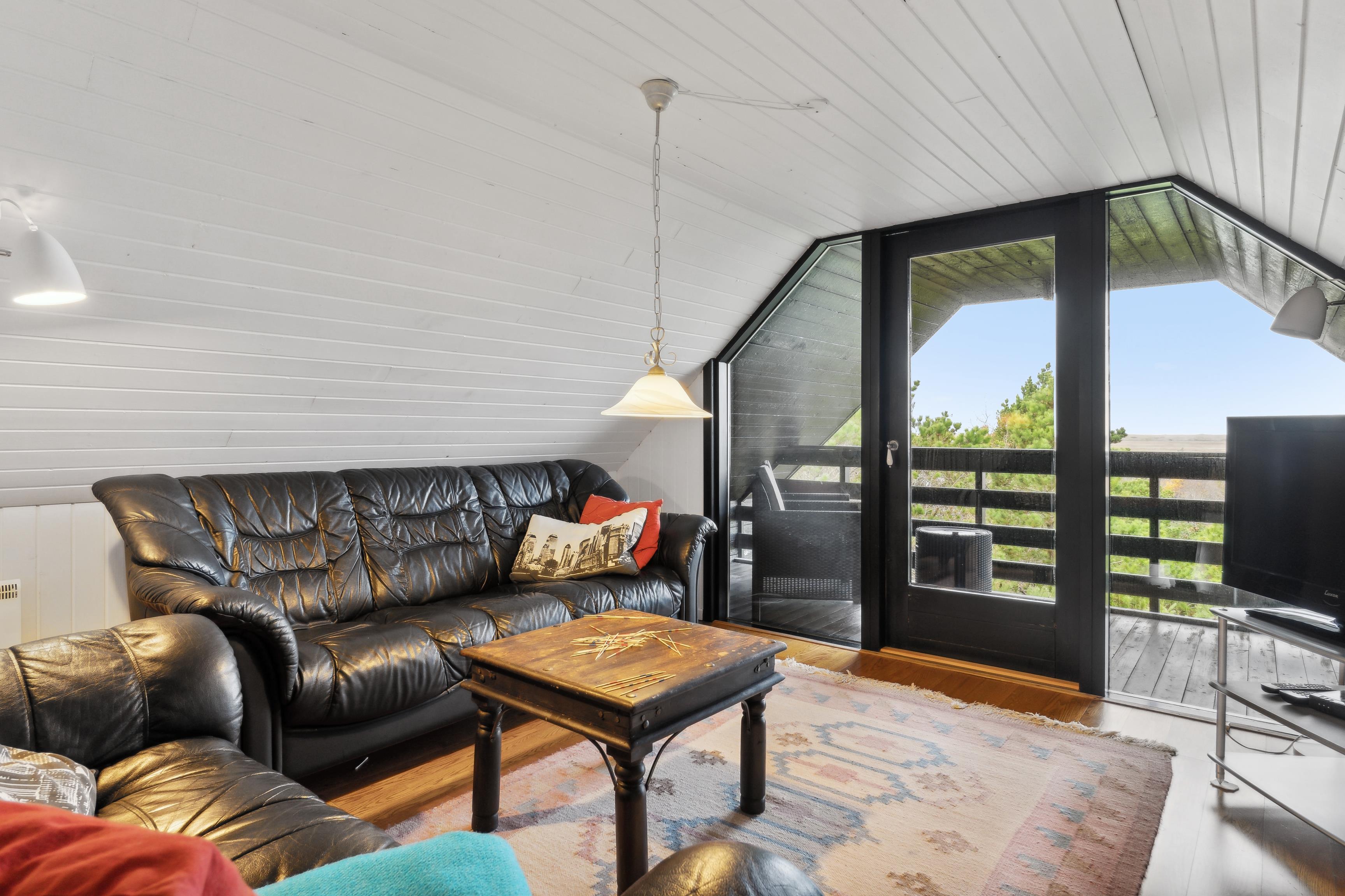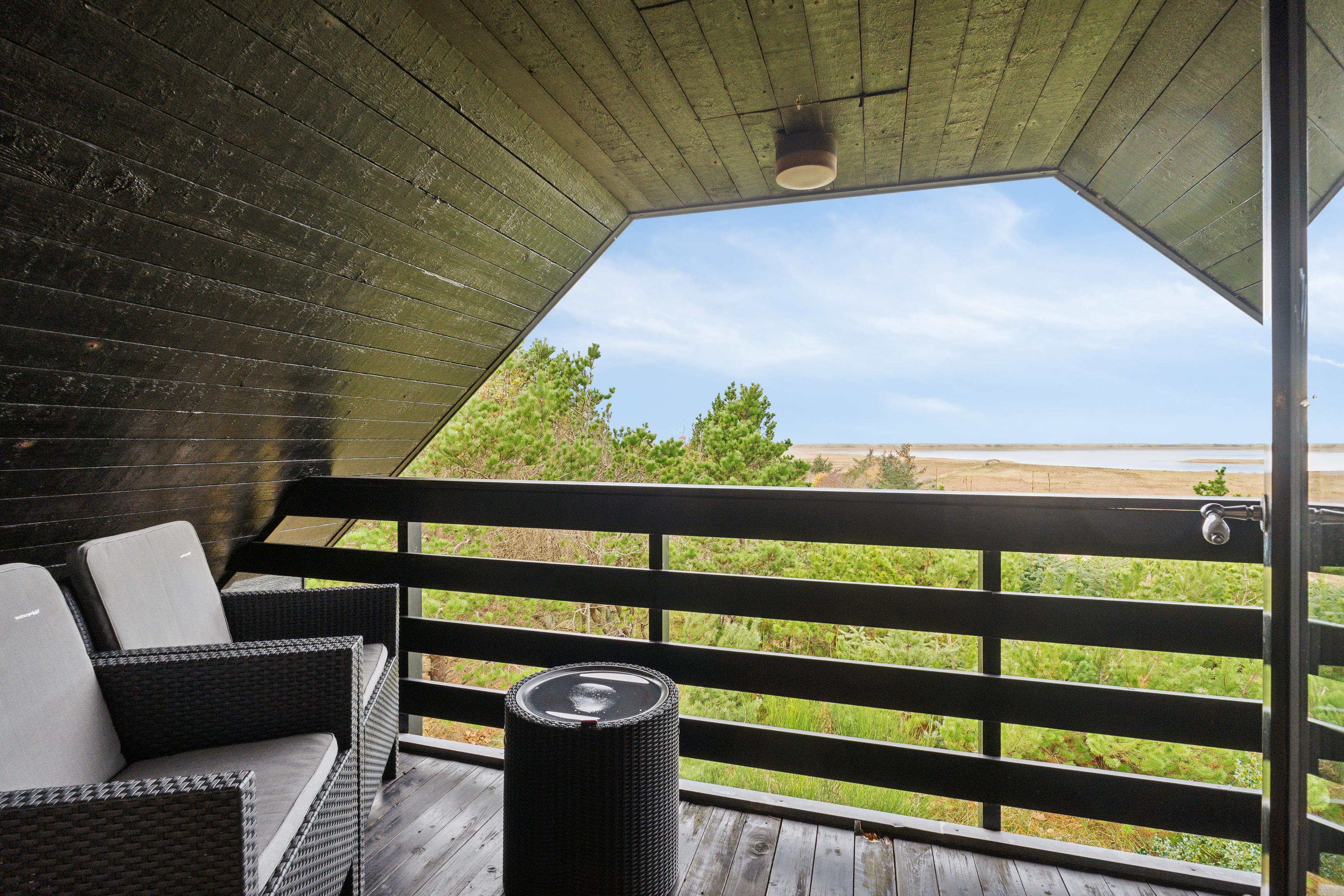 First Floor: Upstairs, you’ll find an additional bedroom and a living room with the same breathtaking views of the fjord and the dunes. There is also a lovely balcony facing the fjord – the perfect spot to enjoy the sunset over the North Sea.