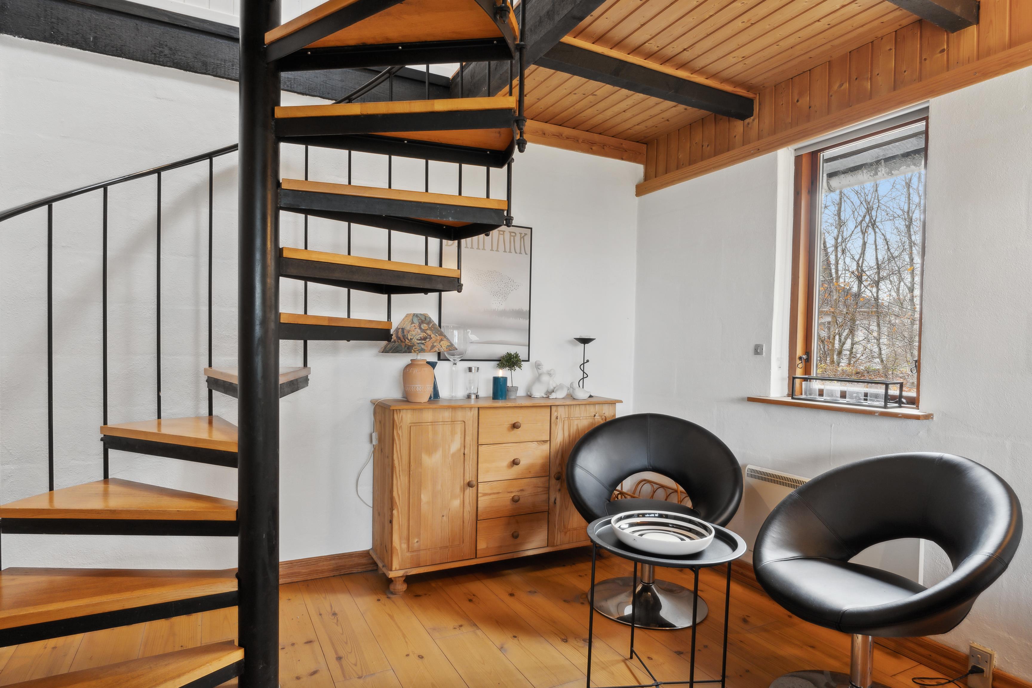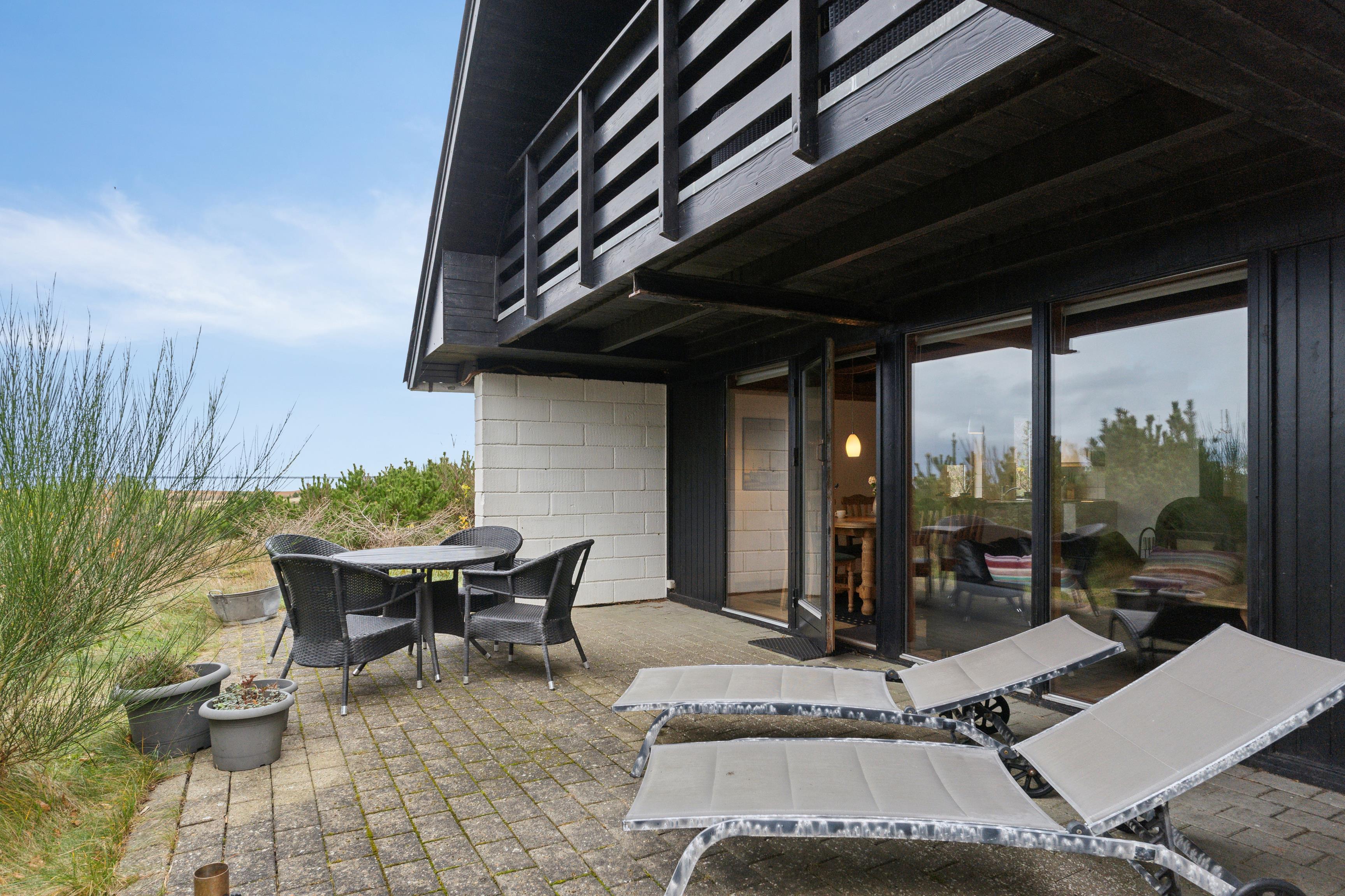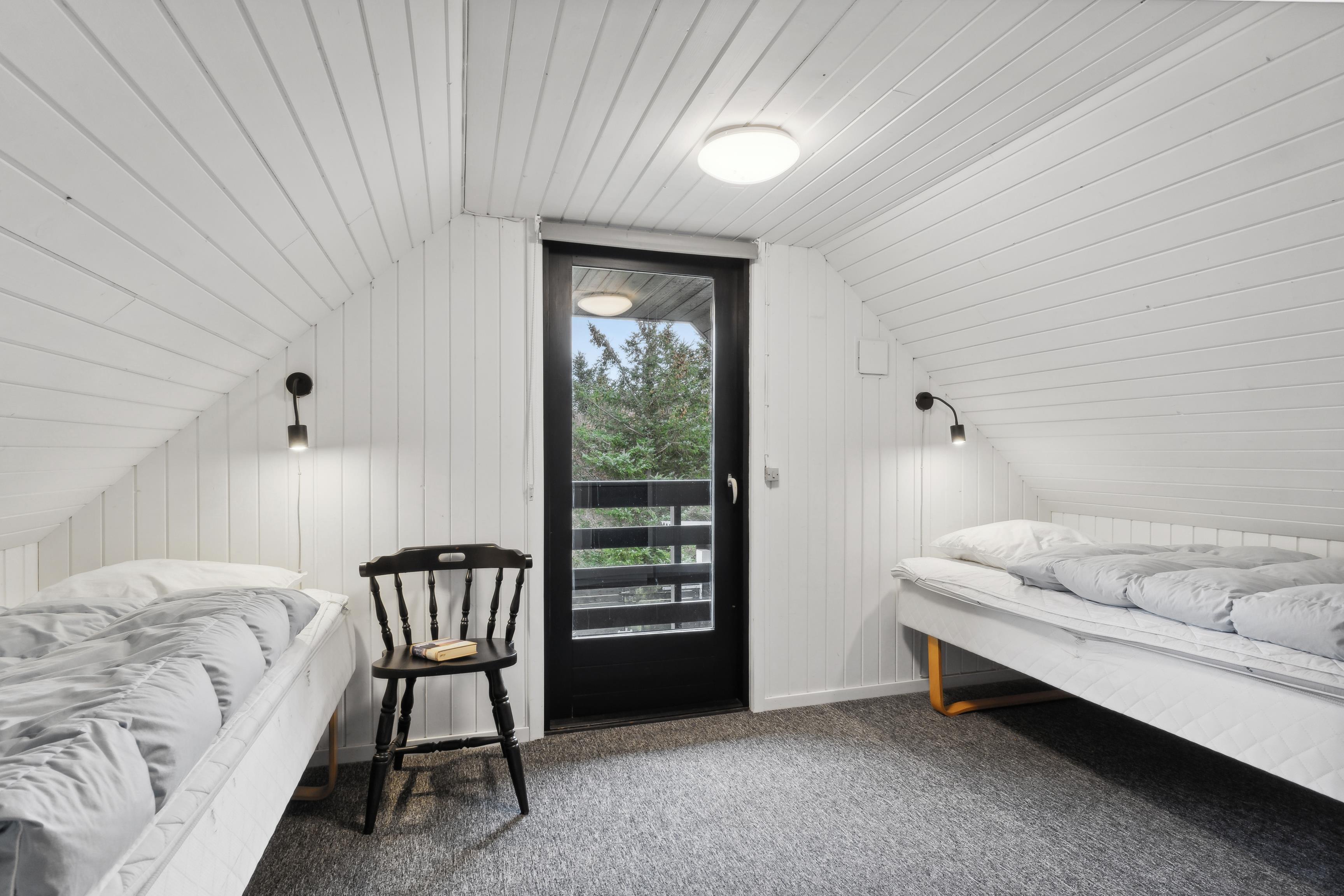 First Floor: Upstairs, you’ll find an additional bedroom and a living room with the same breathtaking views of the fjord and the dunes. There is also a lovely balcony facing the fjord – the perfect spot to enjoy the sunset over the North Sea.
