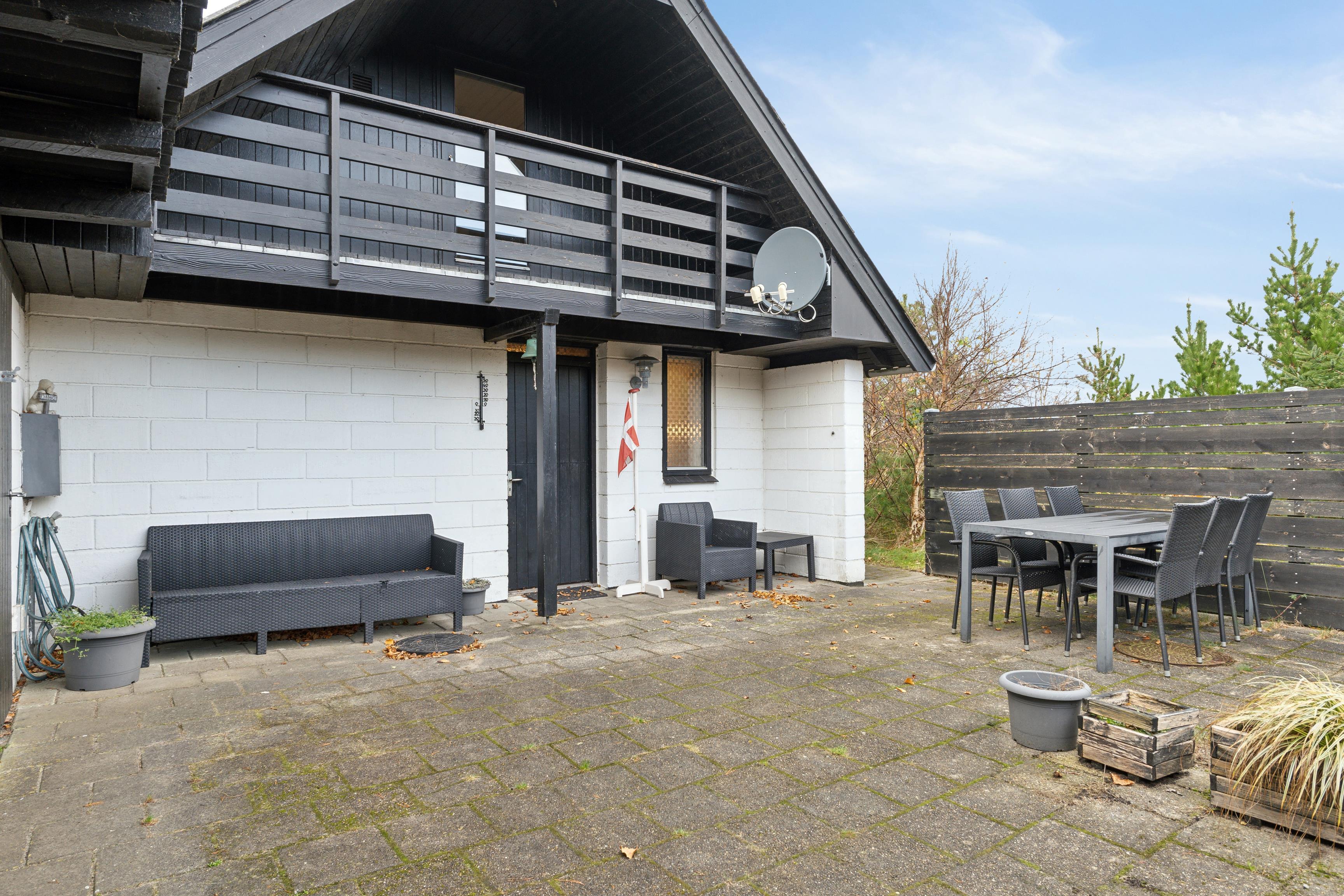 The house is surrounded by several terraces and cozy sheltered corners where you can relax and enjoy the surroundings. To the east, there is a large sun courtyard furnished with comfortable outdoor furniture, flower pots, and loungers – ideal for soaking up the sun and a safe space where children and dogs can play freely.