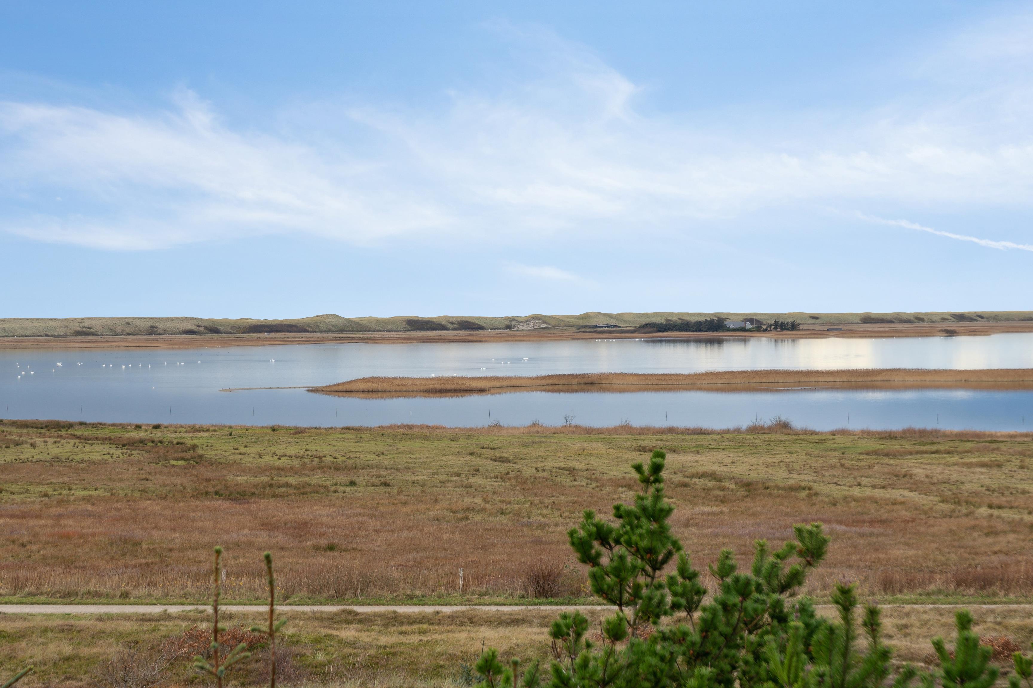 It’s rare to find a holiday home that offers both great shelter and an impressive view – but this house has both. Perched high on the hills by Nissum Fjord, it provides a breathtaking panoramic view of the fjord, the surrounding meadows, and the dunes in the background.