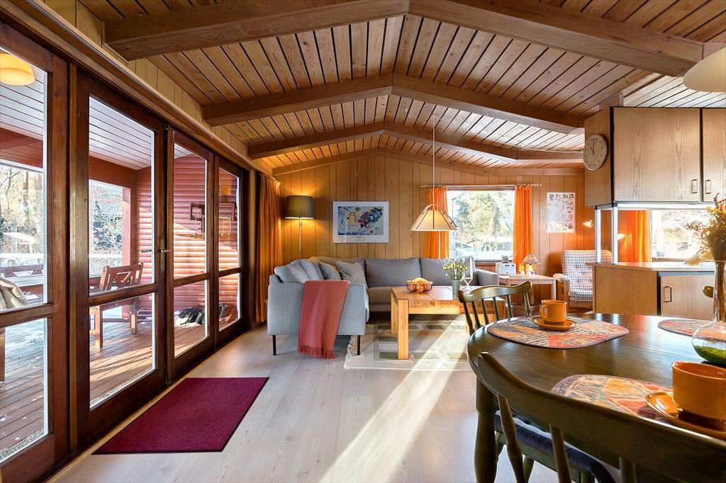 Urlaub wie damals - dieses ursprüngliche und gepflegte Ferienhaus strahlt pure Nostalgie aus und wirkt mit seiner authentischen Atmosphäre ebenso gemütlich wie einladend. Ein Großteil der Möbel, des Geschirrs und der Vorhänge stammt noch aus dem Jahr 1972. Die Betten sind jedoch neueren Datums. Im Haus befinden sich zwei Schlafzimmer - eines mit einem Doppelbett und das andere mit einem Etagenbett mit zwei Schlafplätzen. Hier finden Sie auch Spielzeug und Gesellschaftsspiele. Im geräumigen Im geräumigen Nebengebäude von 1996 finden Sie ein weiteres Doppelbett und nochmals ein Etagenbett für zwei Personen.
