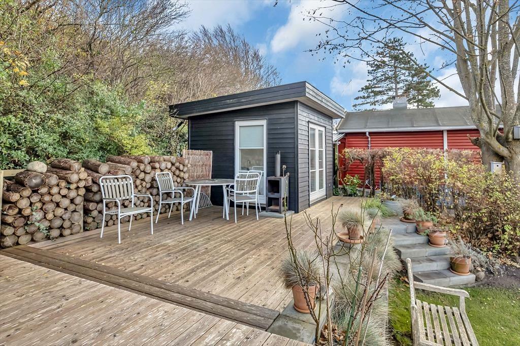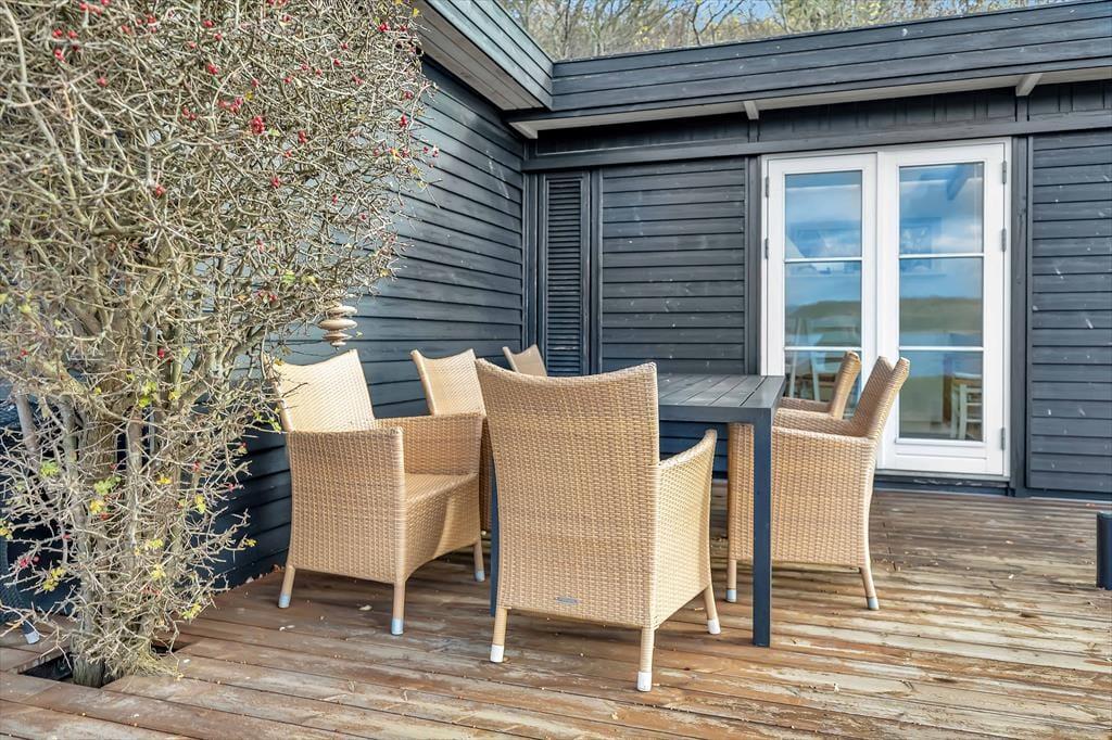 Das Esszimmer verwöhnt mit gleich mehreren Ausgängen auf die große, tolle Holzterrasse, auf der mehrere Gartenmöbelgarnituren bereitstehen. Auf der Terrasse kannst du wunderbar die Sonne genießen. An mehreren Stellen genießt du eine unübertreffliche Aussicht. Ein Teil der Terrasse ist zudem überdacht. Gemütlichen Grillabenden im Kreise deiner Lieben, die von der herrlichen Natur und der frischen Fjordluft untermalt werden, steht absolut nichts im Wege. Vom Haupthaus aus gelangst du über die Terrasse zu einem Nebengebäude, das zwei zusätzliche Schlafplätze beinhaltet und ebenfalls mit direktem Fjordblick verzaubert. Kühlen Schatten genießt du auf einer Terrasse an der Seite deines Ferienhauses, auf der zudem eine Außenküche bereit steht. Eine Treppe führt dich in den Garten, in dem du auf eine weitere, erhöhte Terrasse triffst, von der du auf Frederiksværk blickst. Dank der Lage am Fjordufer kannst du wunderbar per Kajak in See stechen oder kühle Erfrischungen im blauen Nass genießen. Im Anschluss erwartet dich im Untergeschoss deines Hauses das direkt zugängliche Duschbadezimmer.