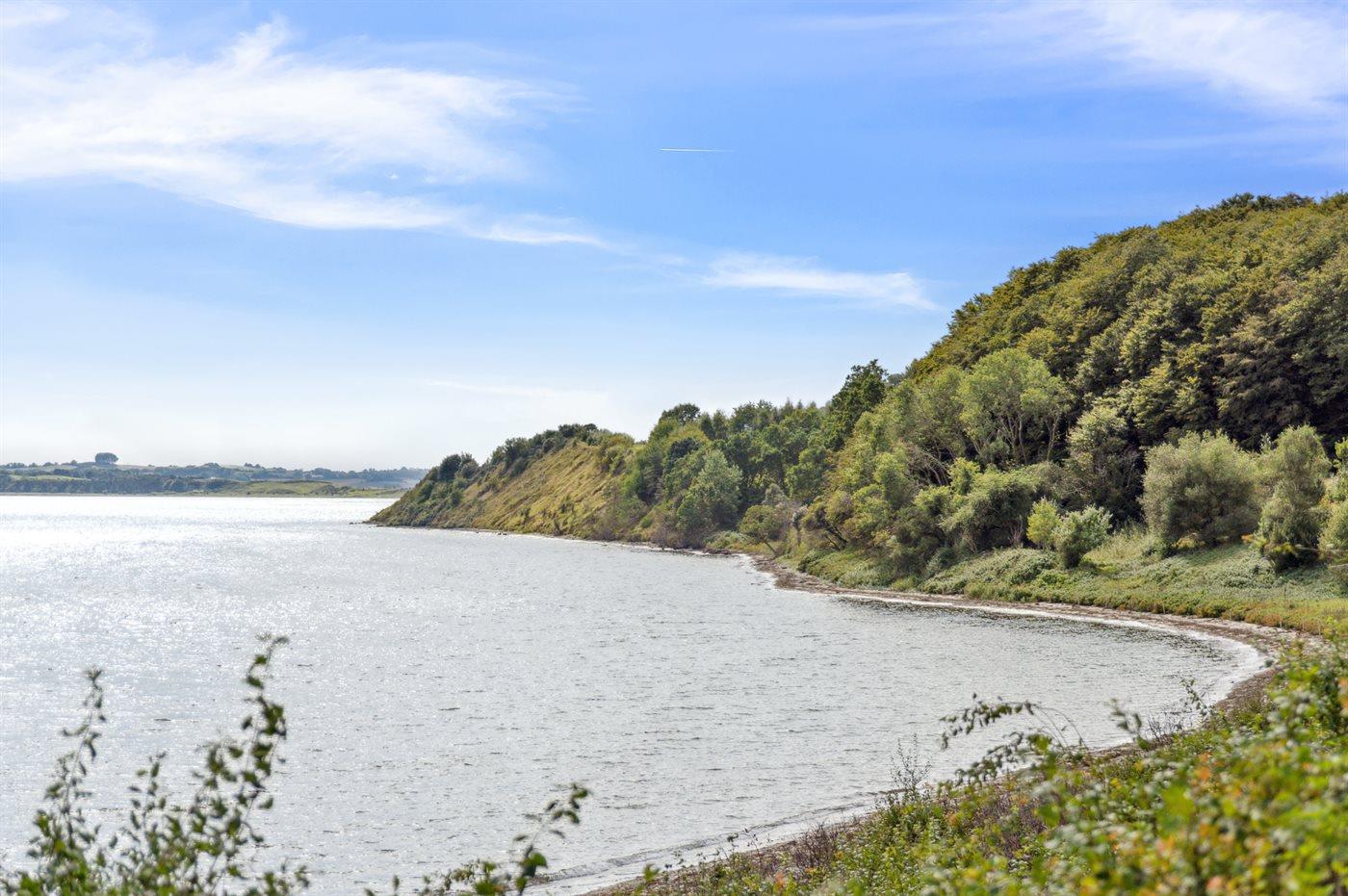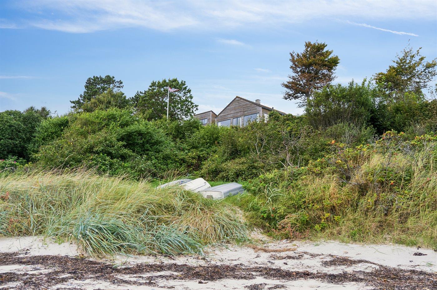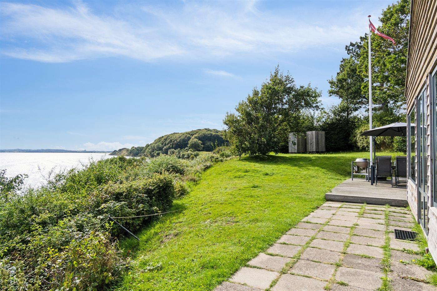 Ferieboligen er beliggende på en 2500 m² stor naturtomt. Avstand til hav er 30 m. Nærmeste butikk ligger i en avstand på 4000 m. Til ferieboligen hører åpent terrasseareal. Avstand til lekeplass er 4000 m. Det er grill til rådighet. Det er montert kontakt til lading av elbil ved huset. Ladekontakt type 2. Med 11 kW ladeeffekt. P-plass ved huset.