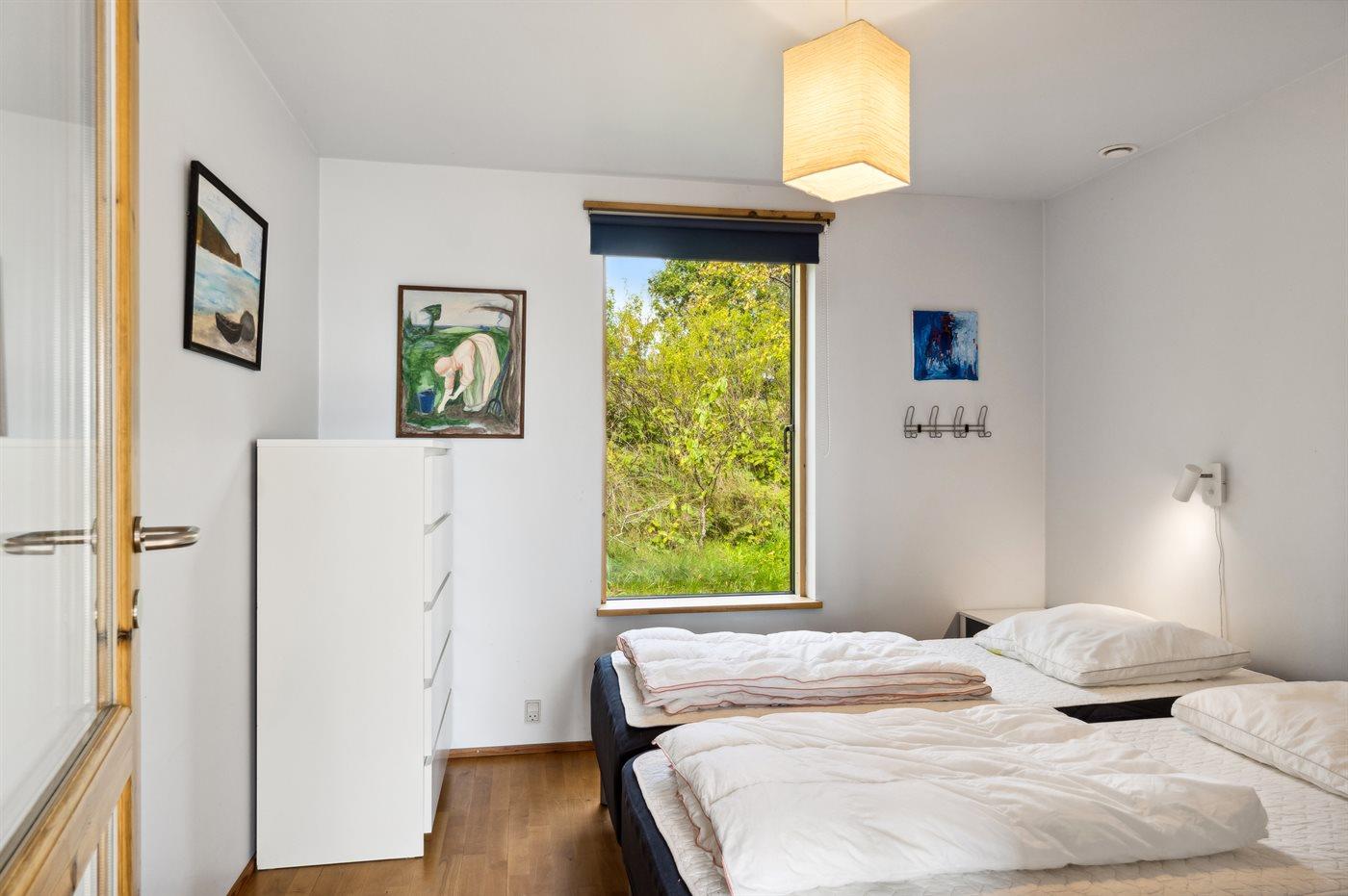 Det er i alt 3 soverom. Soveplassene fordeler seg på: 4 soveplasser i dobbeltsenger.1 soveplass i enkeltseng. 2 soveplasser på madrasser. 2 av disse soveplasser finnes på hemsen i huset. I tillegg er det 1 stk. barneseng.