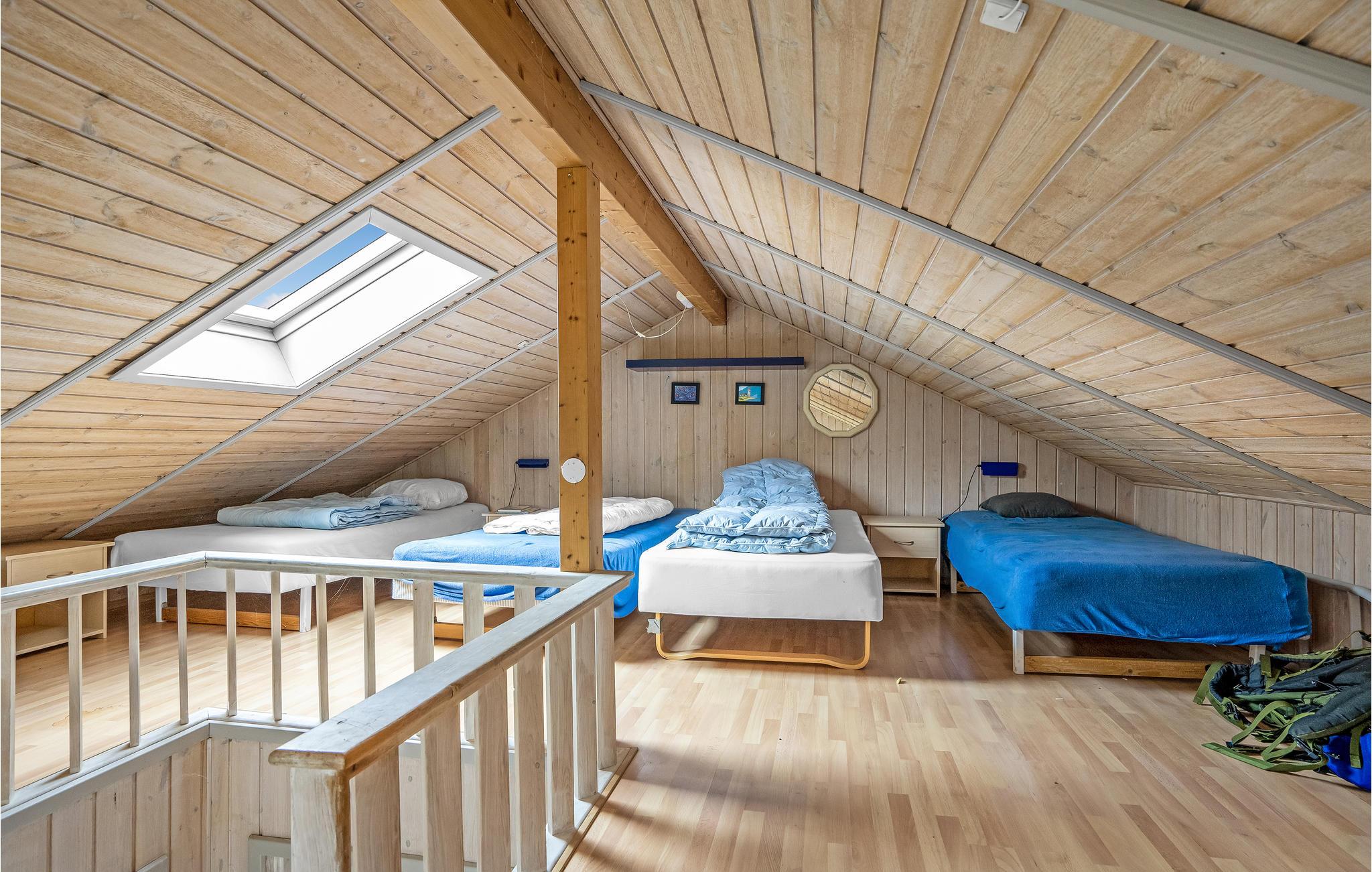 En hjemmekoselig og koselig atmosfære venter deg inne i dette feriehuset med en romslig stue og en vakker utsikt over havet. Lag frokost sammen og nyt den på den åpne terrassen, mens du lar solen skinne på deg og nyter uteluften. Atmosfæren i huset er varm og lys, noe som får deg til å føle deg komfortabel. Det er også et boblebad og en badstue til din disposisjon, hvor du kan slappe helt av.