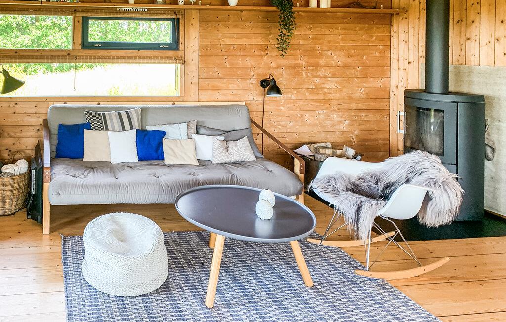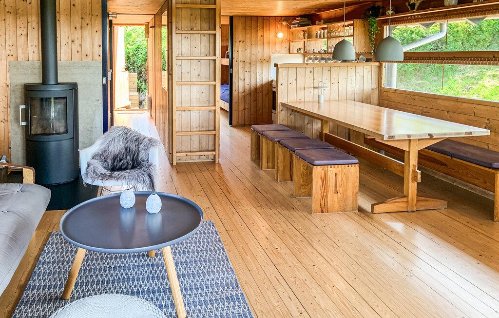 Dette koselige feriehuset inviterer deg til å ta en pause nær naturen. Se frem til ro, plass og et gjennomtenkt romkonsept med en fantastisk utsikt. Stig inn i den åpne stue- og spisestuen med varmt treinteriør, store vinduer og en koselig vedovn. Len deg tilbake i den komfortable sofaen eller nyt hyggelige måltider ved det store spisebordet med plass til alle. Det integrerte kjøkkenet er funksjonelt utstyrt og gjør felles matlagingskvelder til en fornøyelse.