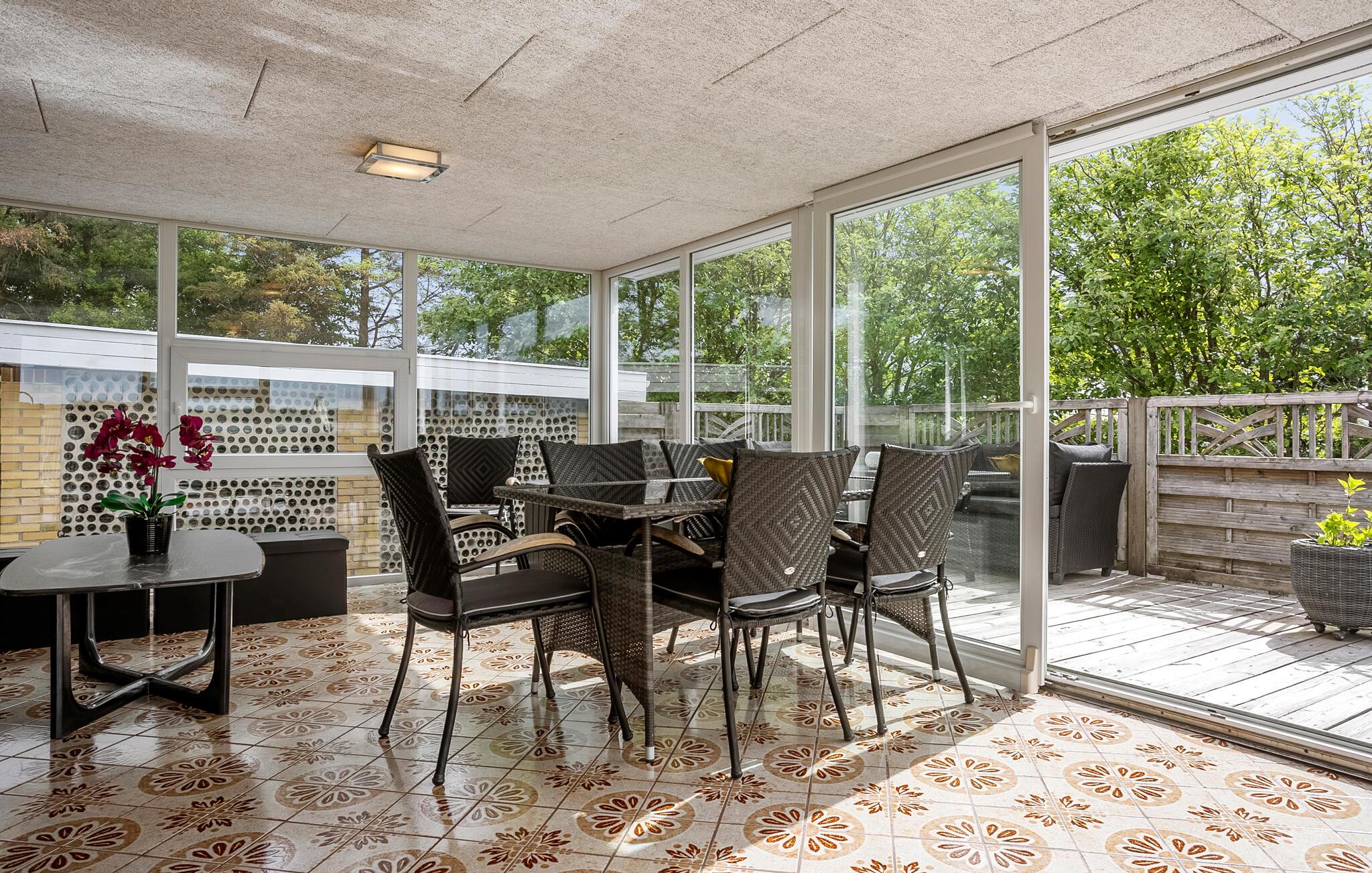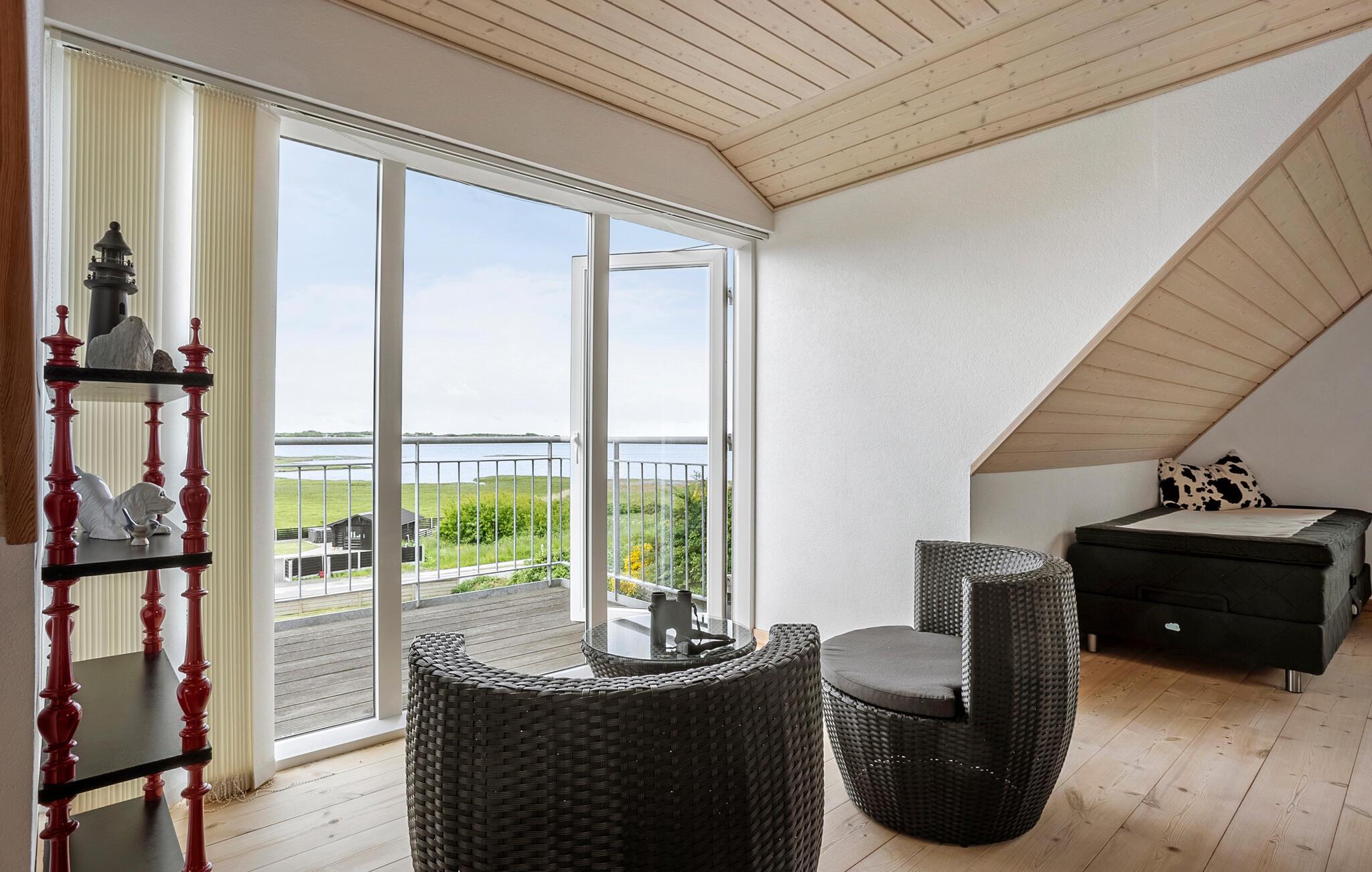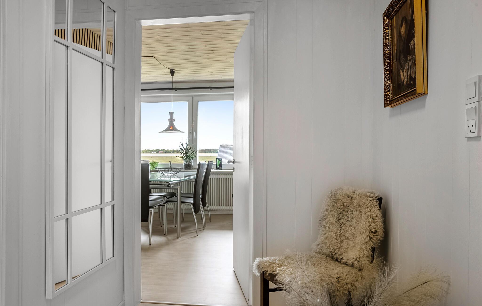 Dette innbydende feriehuset gir deg de beste forutsetninger for en avslappende ferie rett ved vannet. Den høye beliggenheten sikrer en vidstrakt utsikt, mens huset og hagen byr på god plass til avslapning. Stig inn i den lyse stuen med store vinduer og direkte utgang til hagen. Slå deg ned ved spisebordet og nyt utsikten over frokosten. Slapp av i sofaen, la deg inspirere av møblementet eller tilbring rolige timer med en god bok i den innglassede vinterhagen. Det moderne kjøkkenet med rikelig med benkeplass inviterer deg til å tilberede dine egne feriespesialiteter.