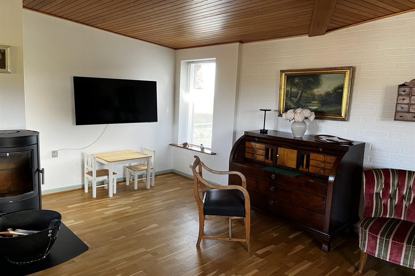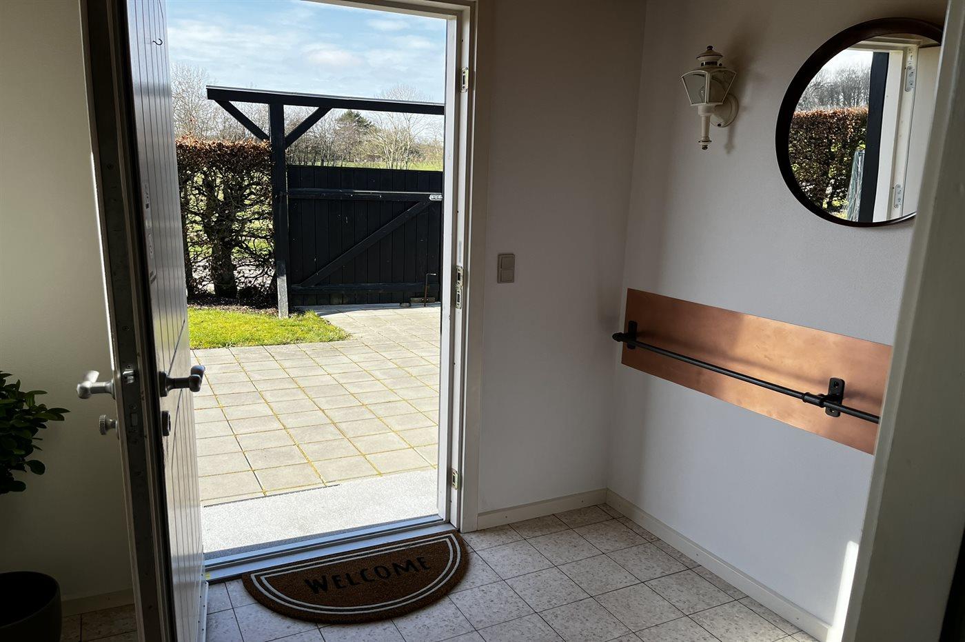 Ferieboligen er beliggende på en 800 m² stor anlagt have. Avstand til hav er 250 m. Nærmeste butikk ligger i en avstand på 2000 m. Til ferieboligen hører 25 m² terrasseareal. Det er Redskapsrom. Det er garasje til rådighet. Det er montert kontakt til lading av elbil ved huset. Ladekontakt type 2. Med 11 kW ladeeffekt. P-plass ved huset.