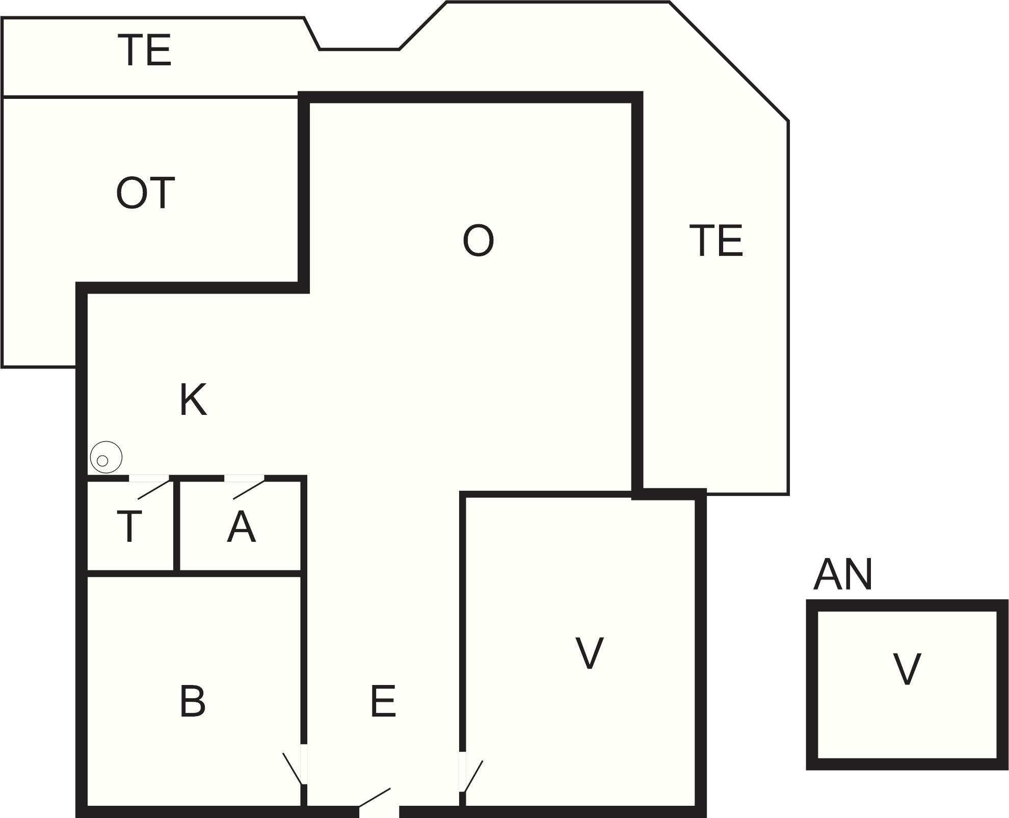Derudover er der et anneks med to værelser, et med dobbeltseng (140 x 200) og et med køjeseng.