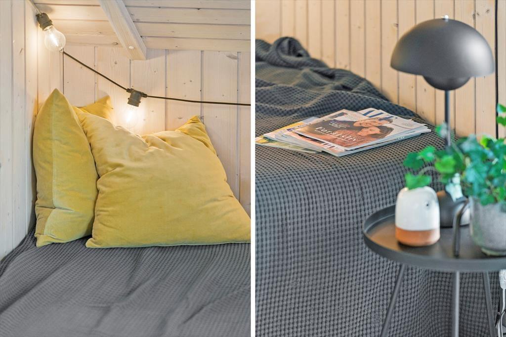 Rund ums Ferienhaus findest du zahlreiche Möglichkeiten, es dir in der Sonne oder im Schatten gemütlich zu machen – je nachdem, was das Wetter gerade verlangt. Die teilweise überdachte Terrasse wird schnell zum Mittelpunkt des Ferienlebens, wo die Mahlzeiten unter freiem Himmel eingenommen werden und die Kinder spielen, während die Erwachsenen mit einer Tasse Kaffee oder einem kühlen Getränk entspannen. Die grüne Umgebung strahlt Ruhe aus und lässt dich leicht zur Ruhe kommen und ganz im Moment ankommen. Vielleicht zieht es dich auch an den nur 250 Meter entfernten Strand, wo du baden, Sandburgen bauen oder einfach entspannt am Wasser entlangspazieren kannst, während die Sonne auf dem Fjord glitzert. Genau diese Freiheit macht das Feriengefühl in Gjellerodde so besonders – du kannst einfach das tun, worauf du gerade Lust hast.