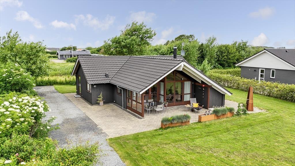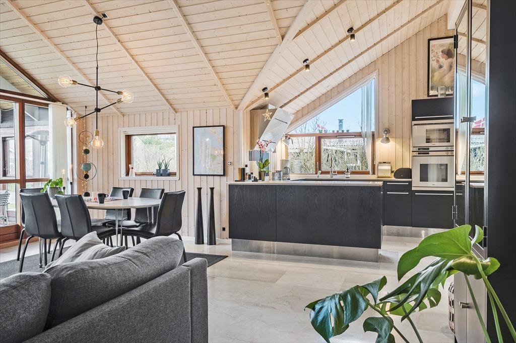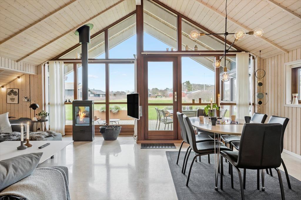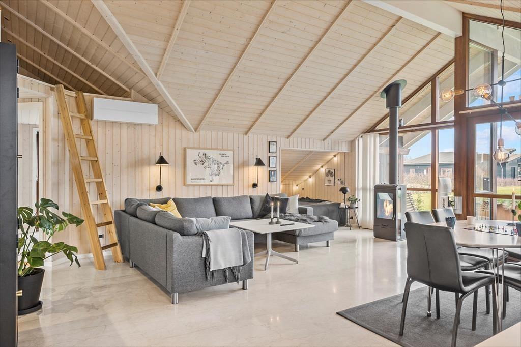 Schon beim Betreten des Ferienhauses in der Porsevej 81 spürst du die durchdachte Einrichtung und die liebevollen Details, die dem Haus seinen besonderen Charakter verleihen. Wohnbereich und Küche sind offen gestaltet, sodass du stets in Gesellschaft von Familie und Freunden sein kannst – egal, ob beim Kochen, Spielen oder Entspannen mit einem Film. Der gemütliche Alkoven eignet sich ideal für eine stille Lesezeit oder ein kleines Nickerchen in aller Ruhe, während der Hems für Kinder oder Ruhesuchende ein perfekter Rückzugsort ist. Der Kaminofen sorgt für wohlige Wärme und eine behagliche Stimmung, und durch die großen Fenster fällt viel Licht ins Haus und bringt ein Stück Natur nach drinnen – ideal für Urlaubsmomente zu jeder Jahreszeit, auch wenn der Regen ans Fenster klopft und du einfach die Gemütlichkeit mit deinen Liebsten genießen möchtest.