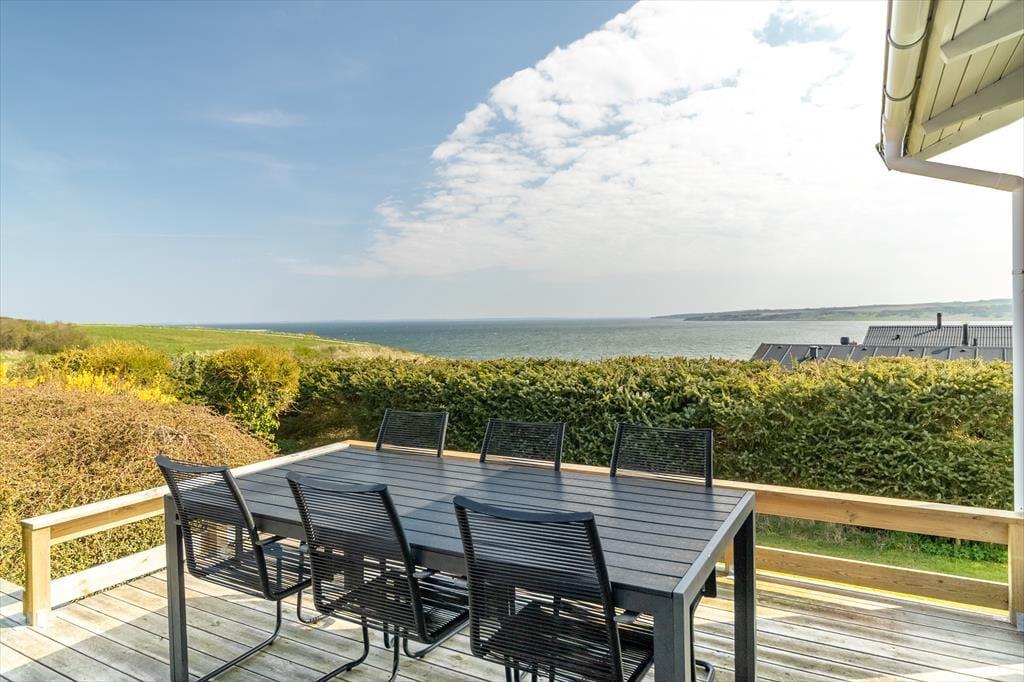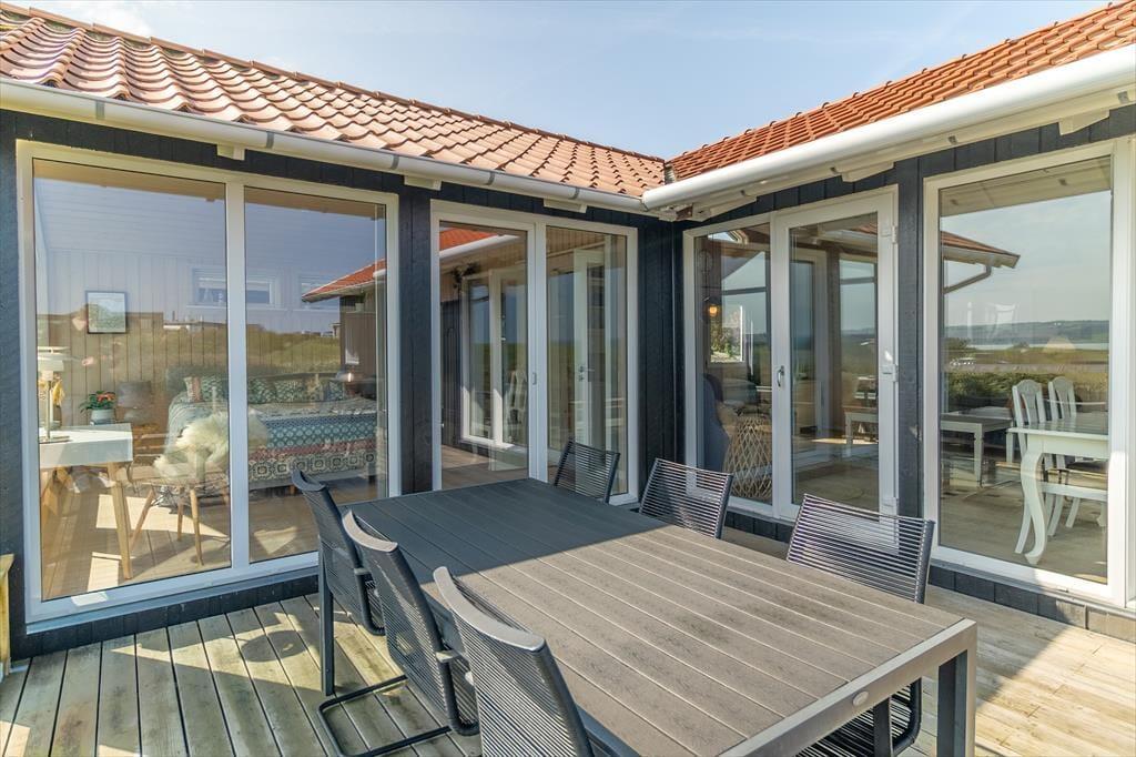 Auf der Terrasse entfaltet das Ferienhaus seine ganze Seele. Hier sitzt du in der ersten Reihe zum wechselnden Spiel des Fjords und kannst die Zeit mit einer Tasse Morgenkaffee, einem guten Buch oder einfach nur der Stille vergehen lassen. Der ungestörte Ausblick auf das Wasser und die Landschaft verändert sich im Tageslicht – und wird niemals langweilig. Beobachte kleine Boote und Segler, die ruhig über den Fjord gleiten, während ihr eure Mahlzeiten unter freiem Himmel genießt. Die Terrasse ist so gelegen, dass du sowohl Sonne als auch Windschutz findest – und so friedlich, dass sich alles um dich herum ganz weit weg anfühlt. Auf der Westseite des Hauses kannst du Sonne und Wärme tanken, und rundherum laden gemütliche Ecken zum Entspannen, Spielen und Beisammensein ein. Das hügelige Naturgrundstück und das grüne Areal rund ums Haus verstärken das Gefühl von Freiheit und Privatsphäre.