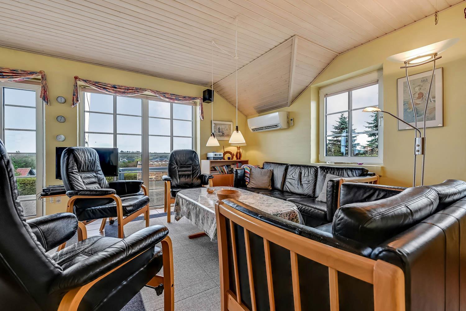 Willkommen in diesem schönen Ferienhaus, das auf einem erhöhten Grundstück liegt und einen atemberaubenden Panoramablick über den Limfjord bietet.