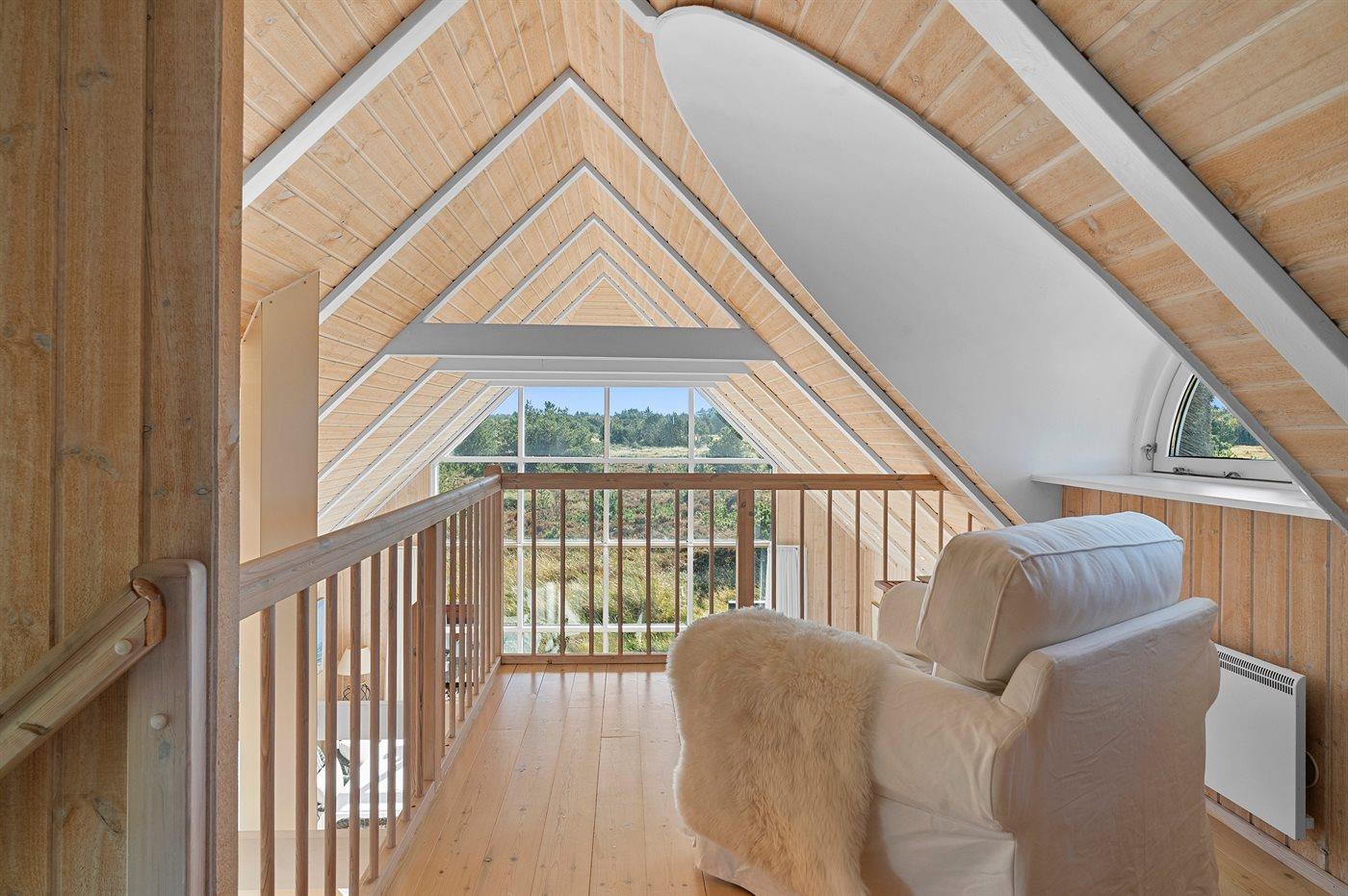 Ferieboligen er beliggende på en 17000 m² stor naturtomt. Avstand til hav er 550 m. Nærmeste butikk ligger i en avstand på 700 m. Til ferieboligen hører åpent terrasseareal. Det er Redskapsrom. Det er grill til rådighet. P-plass ved huset.